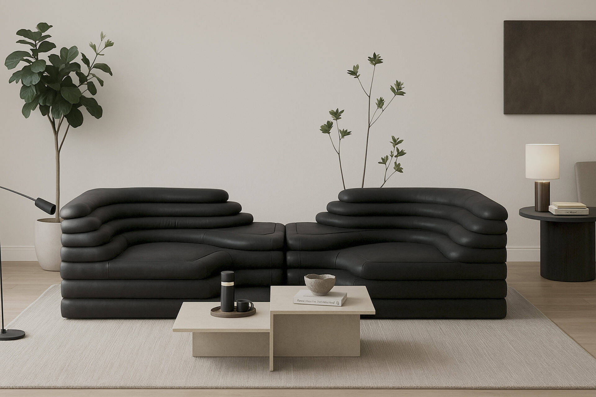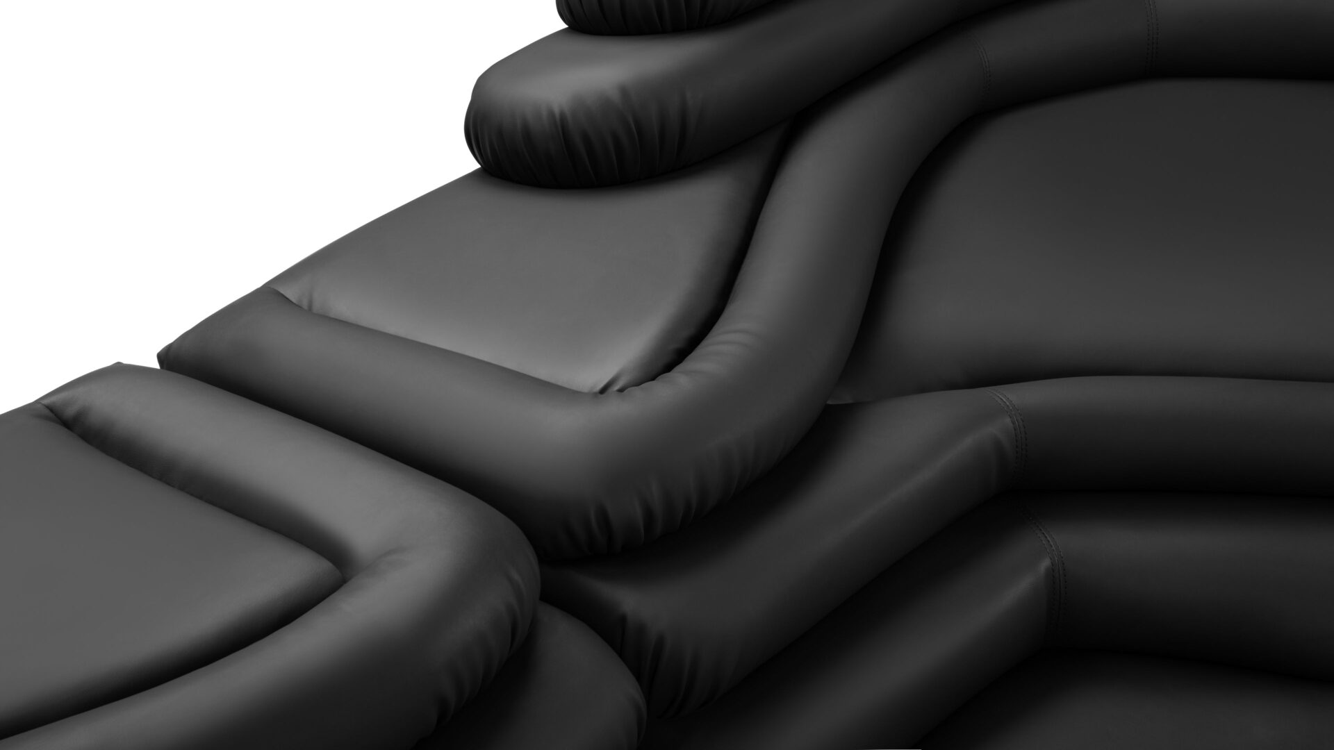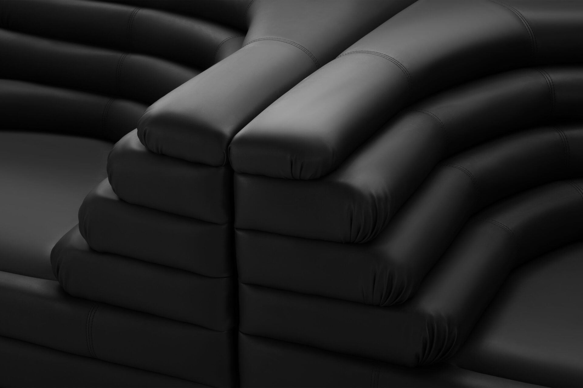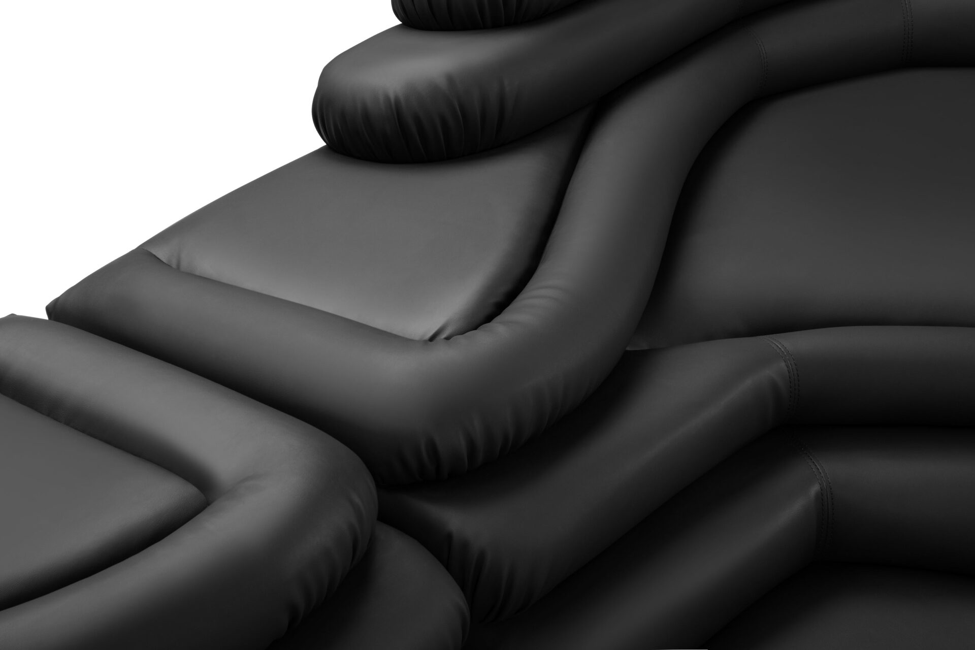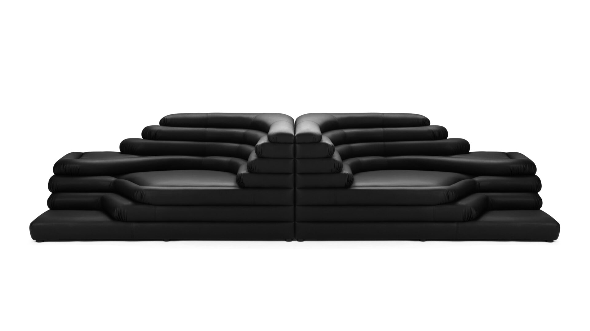 Introducing the Terrazza Sofa, a luxurious masterpiece that blends opulent comfort with exceptional craftsmanship. The sofa's geometric shapes and textural contrasts are accentuated by sleek contours and daring angles, all wrapped in sumptuous black vegan leather upholstery. Crafted with meticulous precision, this sofa exudes an air of lavishness and refinement, making it an artistic statement of sophistication and luxury for discerning connoisseurs.