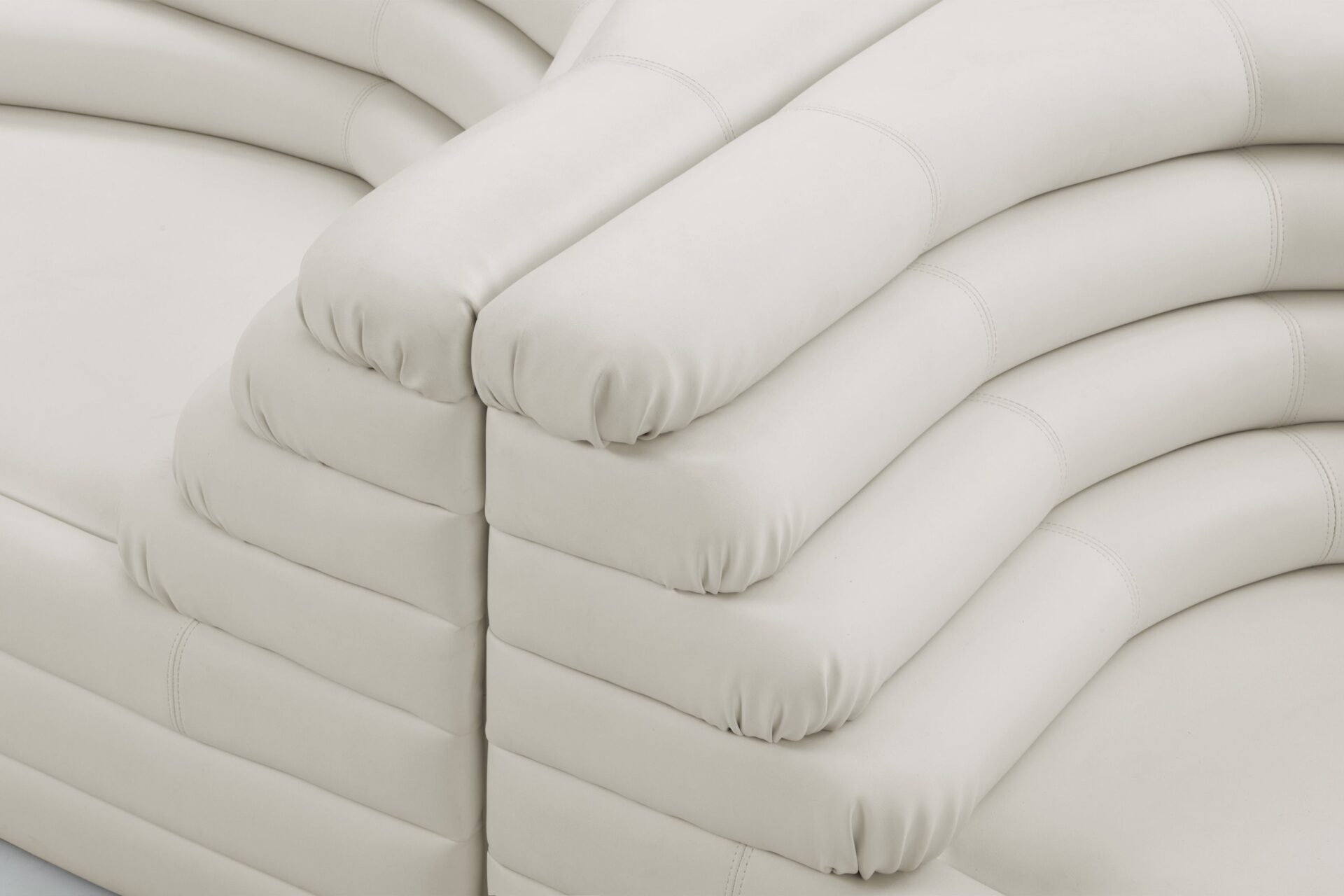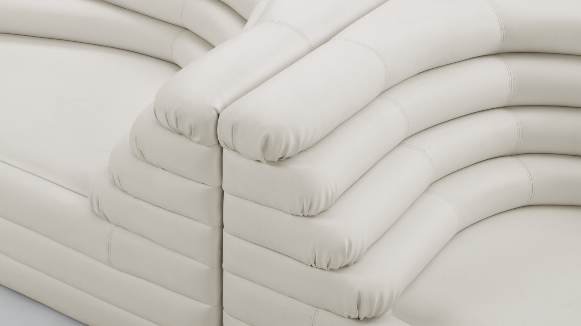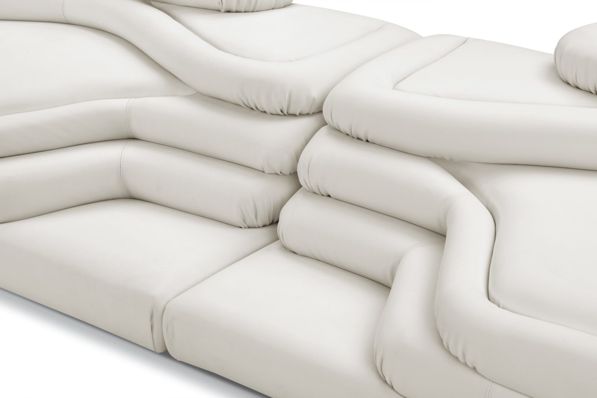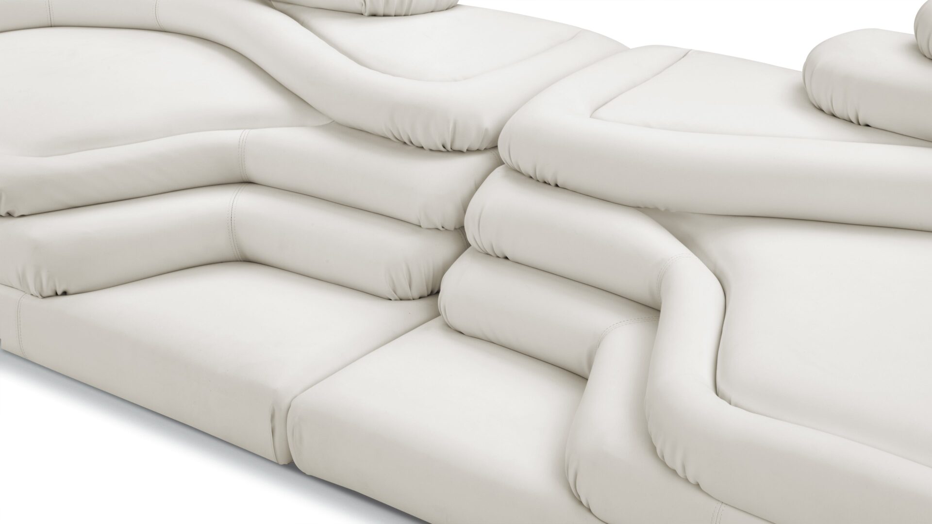Unveil the Terrazza Sofa, a masterpiece melding opulent comfort and exquisite artistry. This chic piece harmonizes geometric shapes and sumptuous Cream Vegan Leather for a luxurious touch. Crafted with meticulous precision by expert artisans, it exudes lavishness and refinement while promising unmatched relaxation. Elevate your space with this artistic statement, a pinnacle of sophisticated luxury.