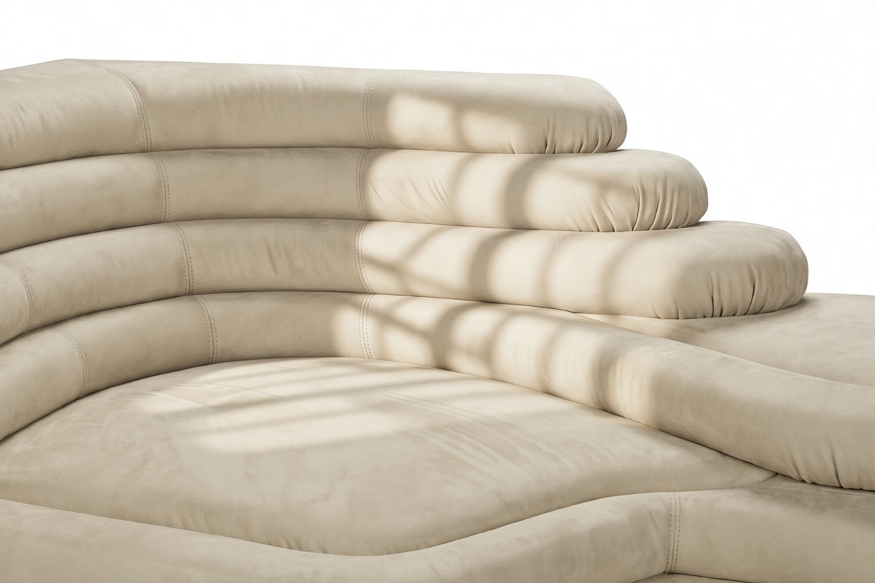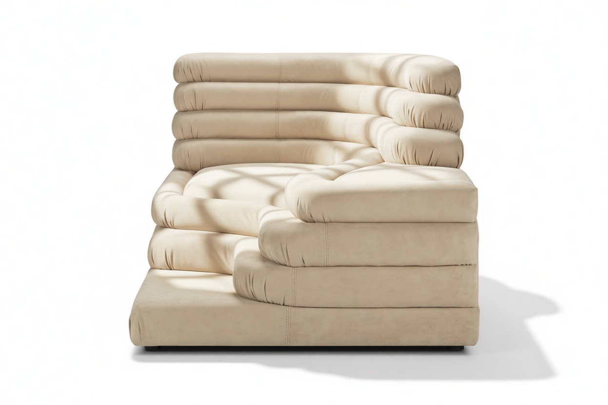 Unveiling the Terrazza Sofa, a true masterpiece of opulent comfort and artistry that defies design norms, offering a unique touch for discerning connoisseurs. Crafted with precision, this sofa boasts geometric shapes and textural contrasts, exuding lavishness with sumptuous Eggshell Vegan Suede fabric. Transform your space with the Terrazza Sofa, a blend of chic style and unrivaled comfort for an exceptional seating experience.