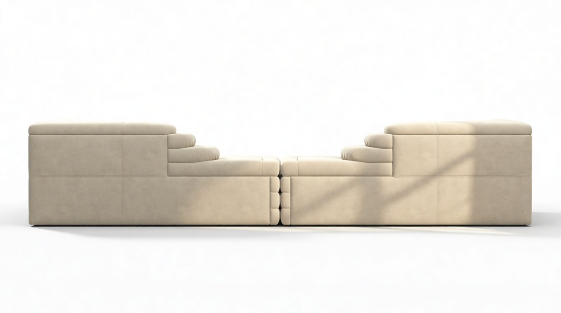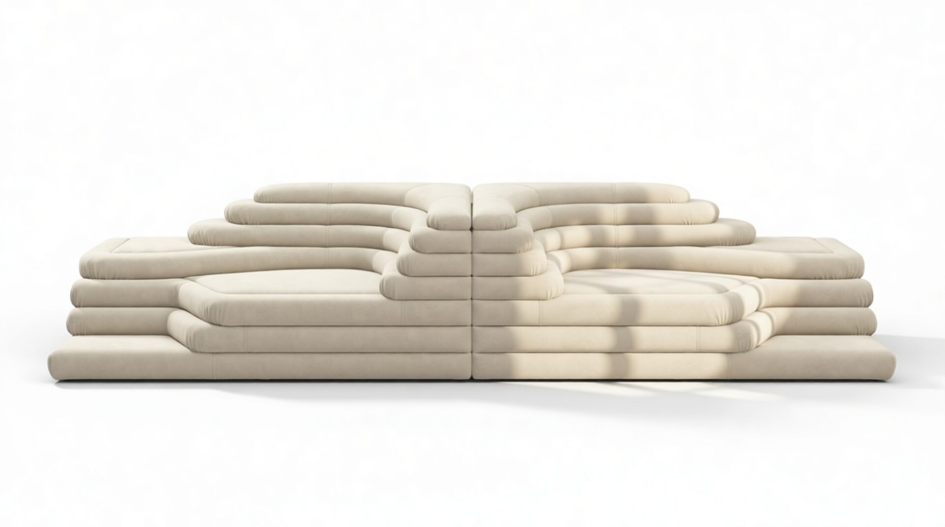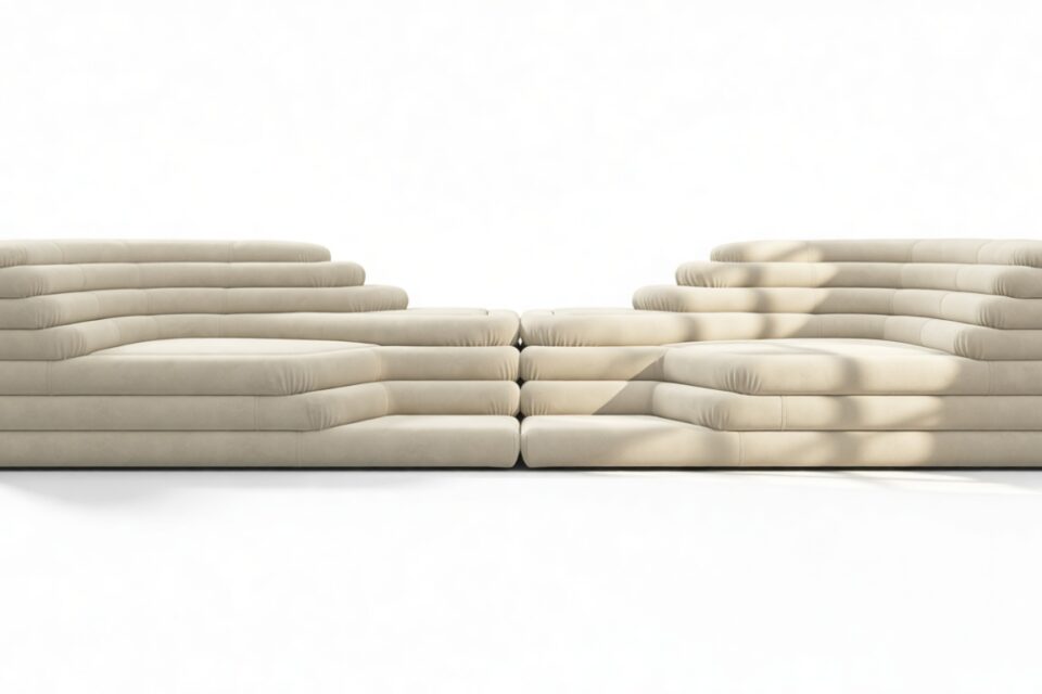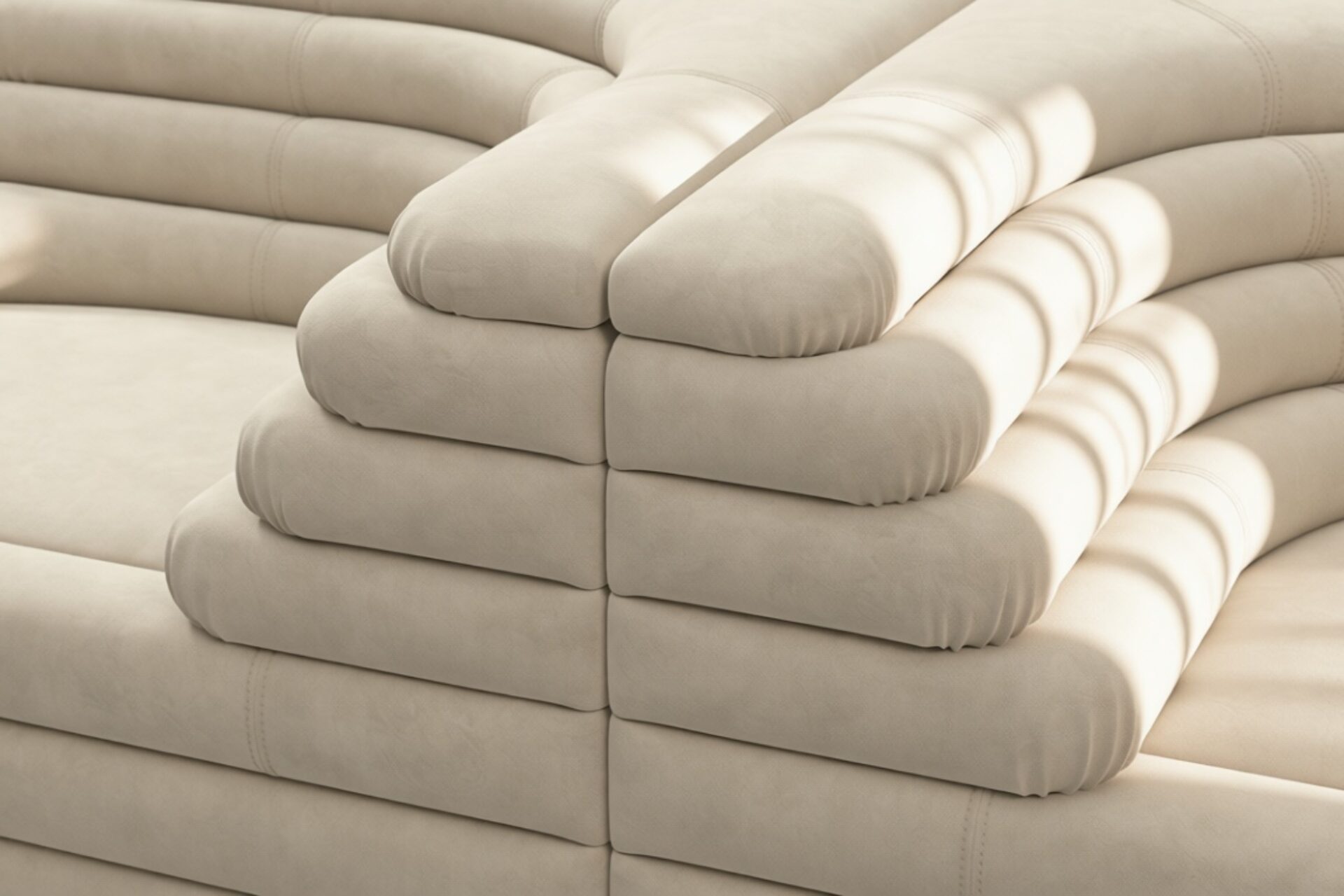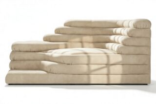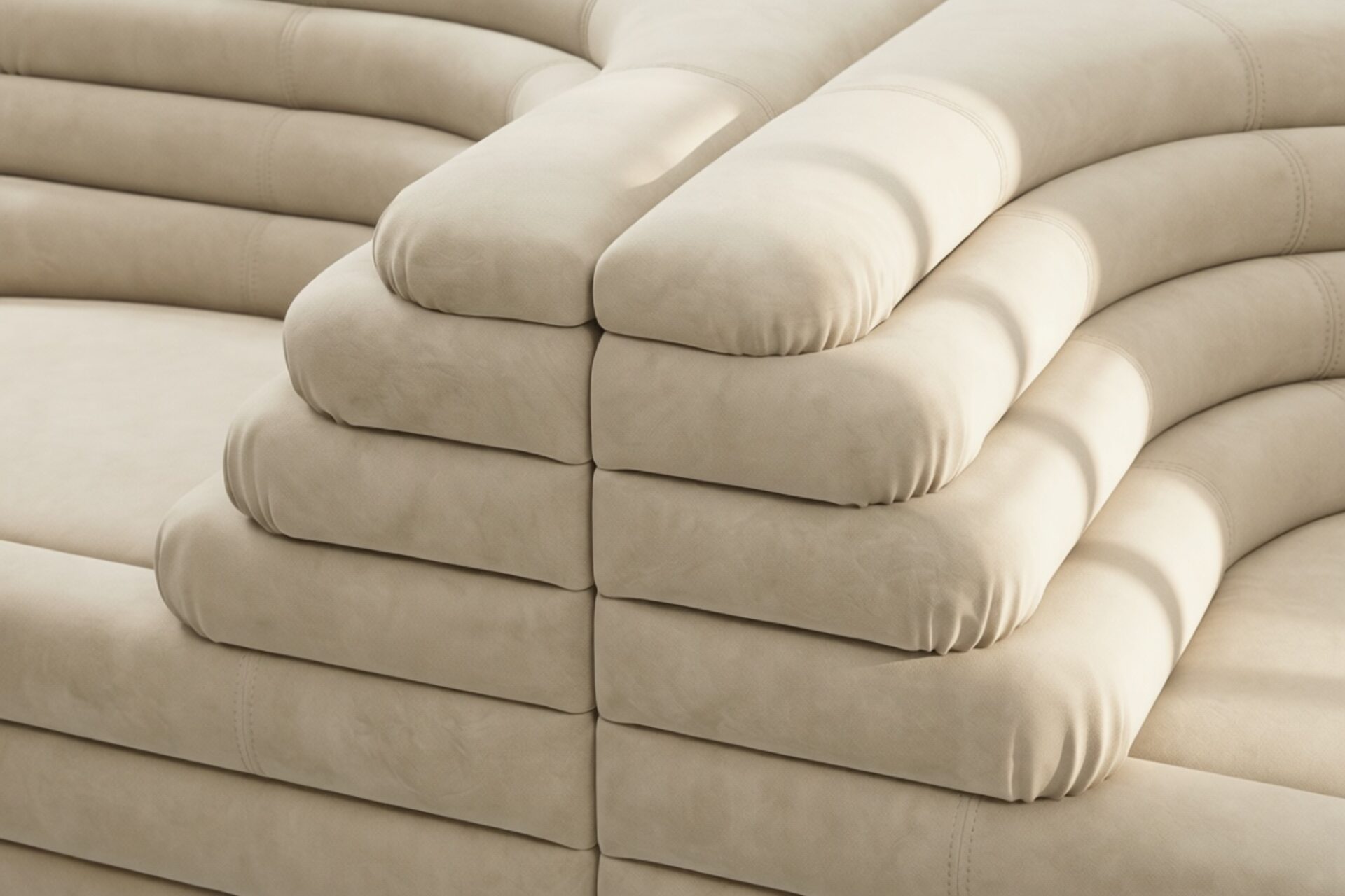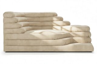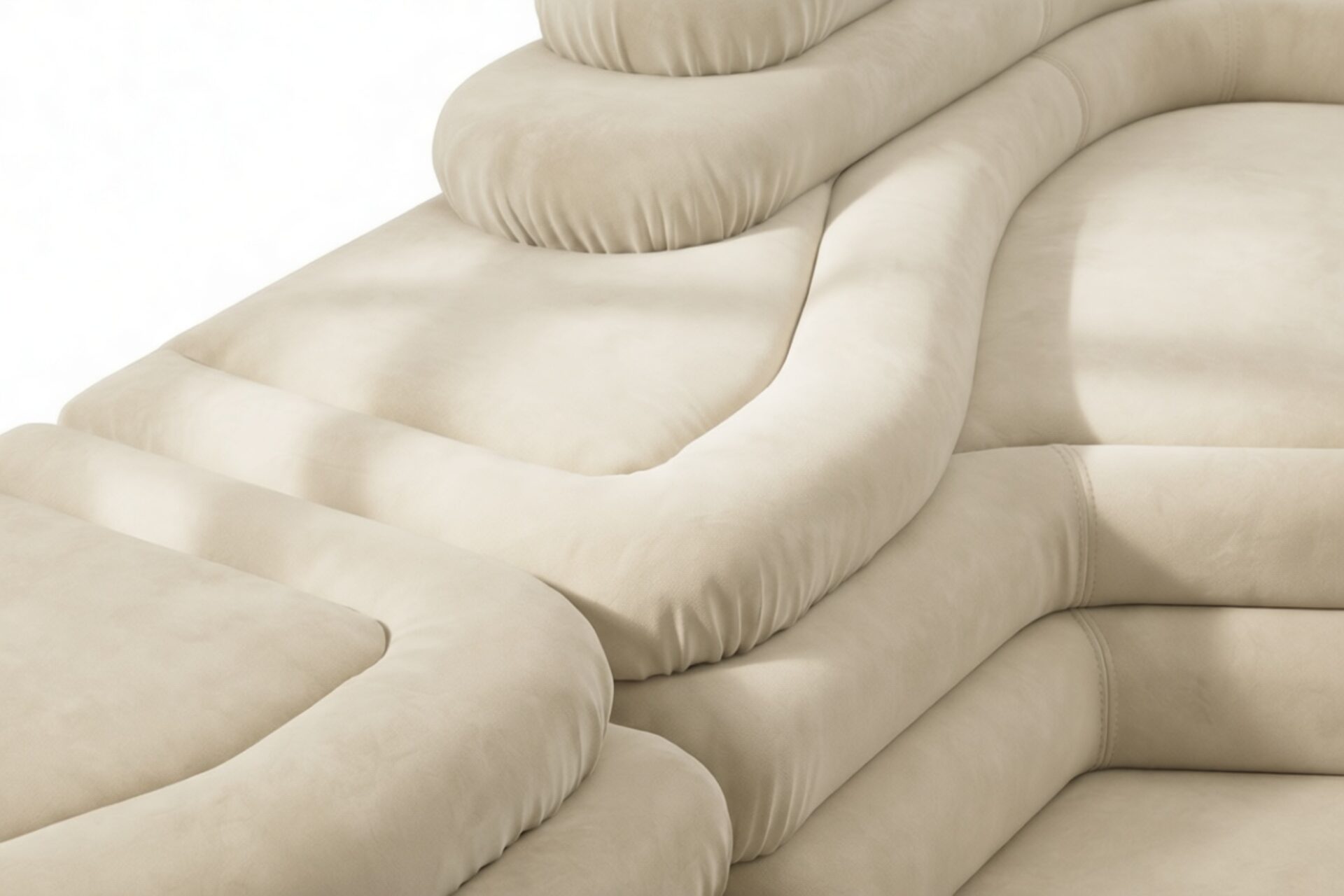 Introducing the Terrazza Sofa, a masterpiece of opulent comfort and superb artistry that surpasses design norms. Crafted with precision, it features geometric shapes and daring angles in Eggshell Vegan Suede, exuding lavishness. Meticulous handcrafted details ensure quality, creating a visually stunning piece that offers unmatched seating experience and adds sophisticated luxury to any space.