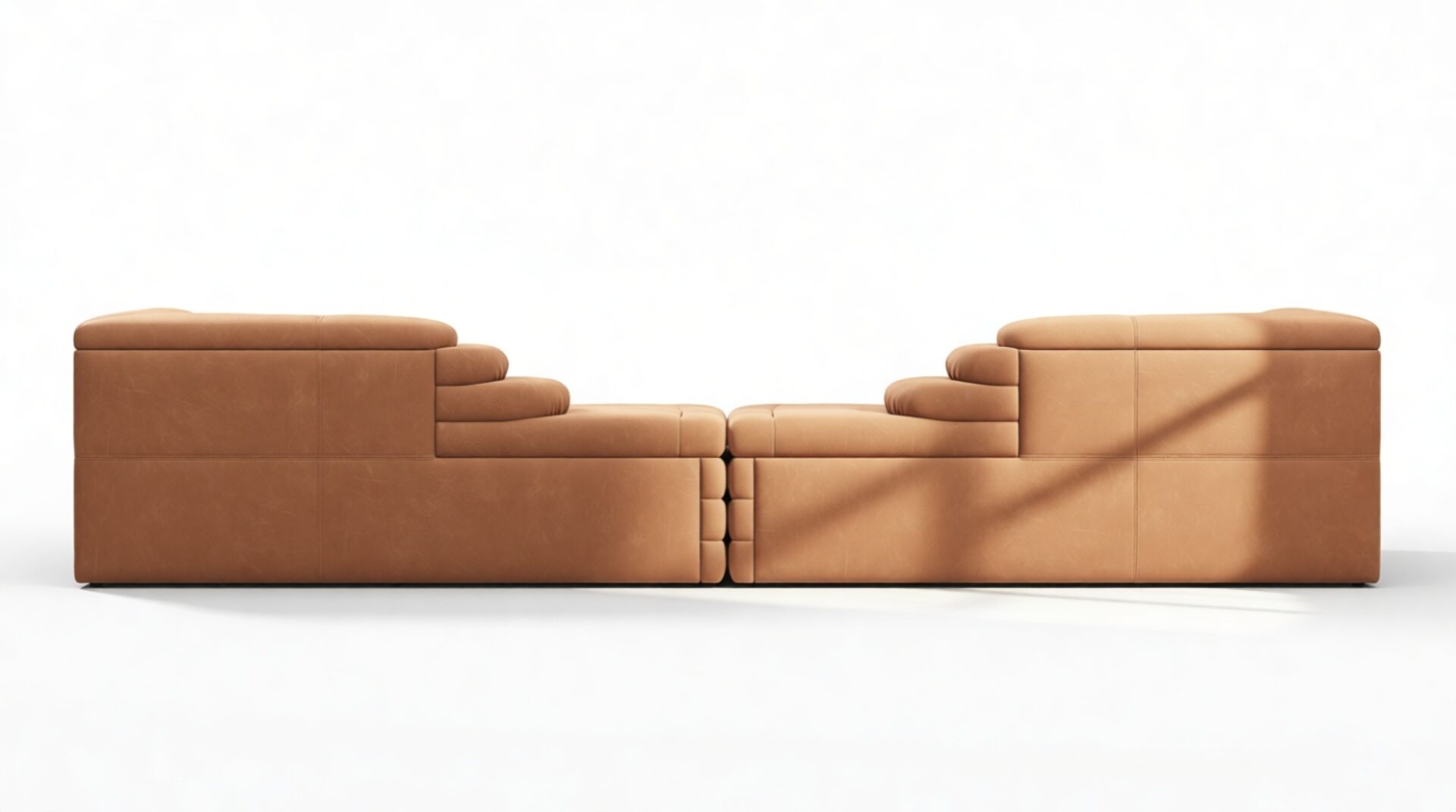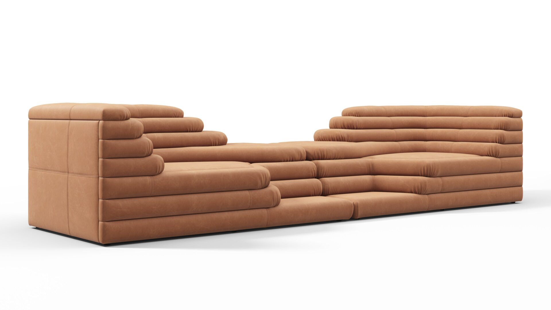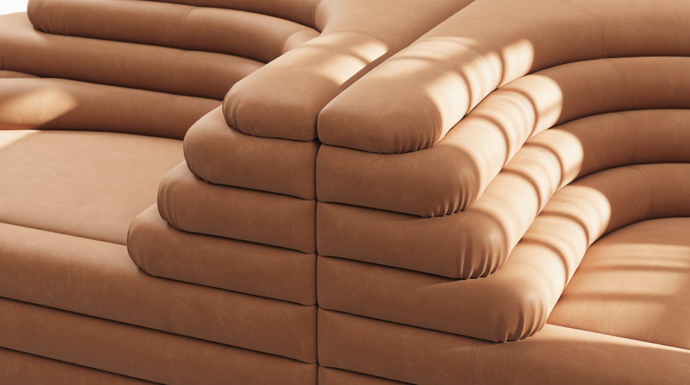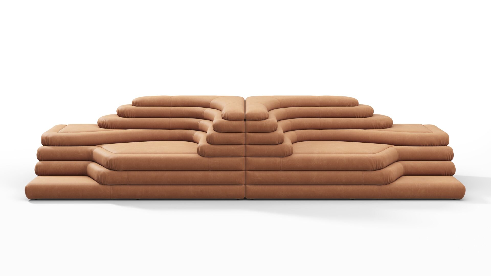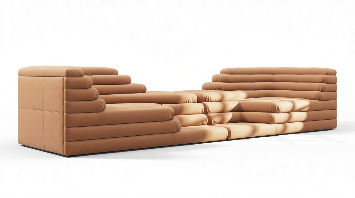 Unveiling the Terrazza Sofa, an exquisite masterpiece blending opulent comfort with superb artistry. This exceptional sofa transcends conventional design norms, offering a singular addition for discerning connoisseurs. Crafted with precision, featuring geometric shapes and textural contrasts, the sofa boasts sleek contours and daring angles. Upholstered in sumptuous Tan Vegan Leather, it exudes lavishness and refinement, promising a visual delight and unmatched seating experience. Truly an artistic statement and a pinnacle of sophisticated luxury for your living space.