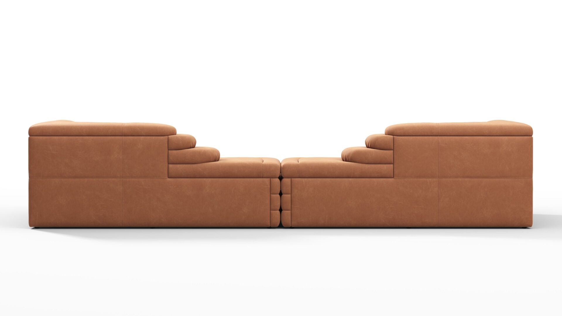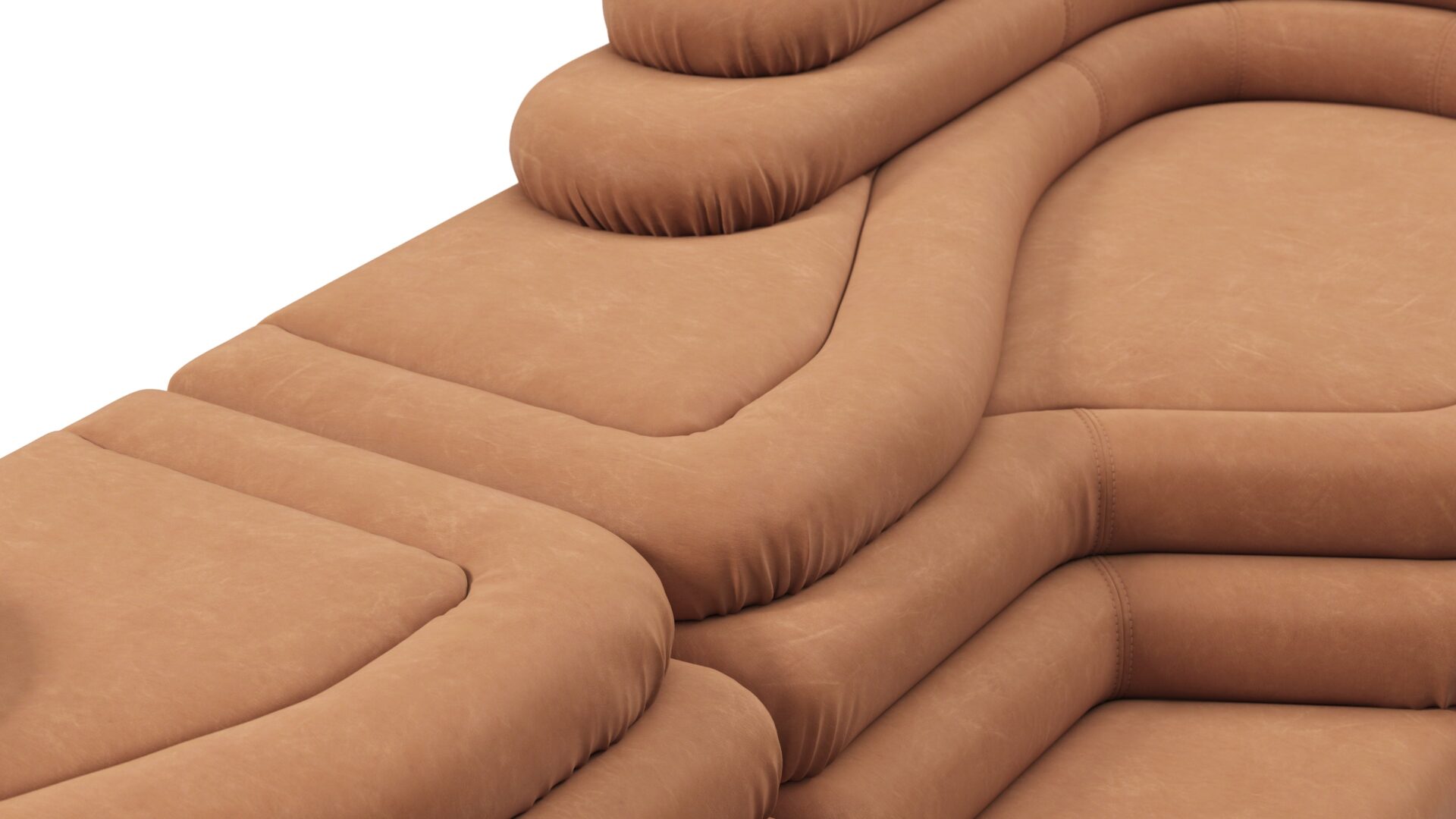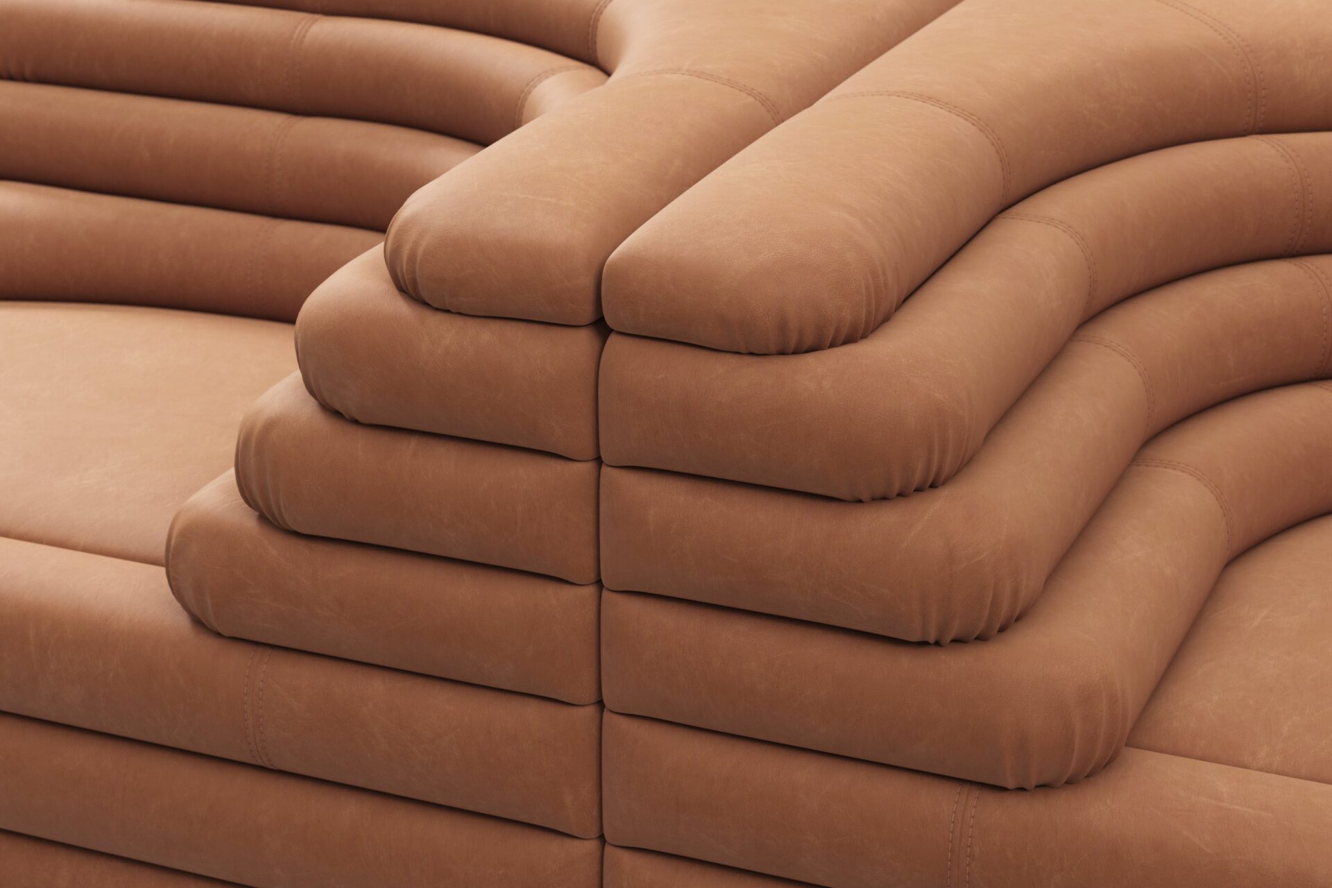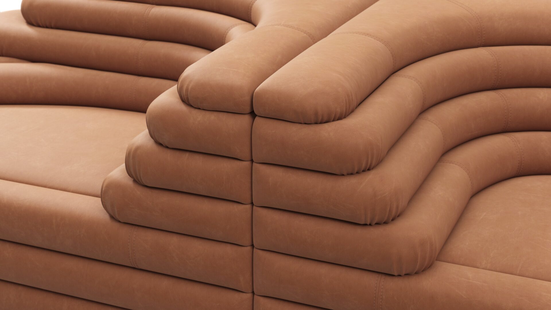 Unveiling the Terrazza Sofa, an exquisite masterpiece blending opulent comfort with superb artistry. This exceptional sofa transcends conventional design norms, offering a singular addition for discerning connoisseurs. Crafted with precision, featuring geometric shapes and textural contrasts, the sofa boasts sleek contours and daring angles. Upholstered in sumptuous Tan Vegan Leather, it exudes lavishness and refinement, promising a visual delight and unmatched seating experience. Truly an artistic statement and a pinnacle of sophisticated luxury for your living space.