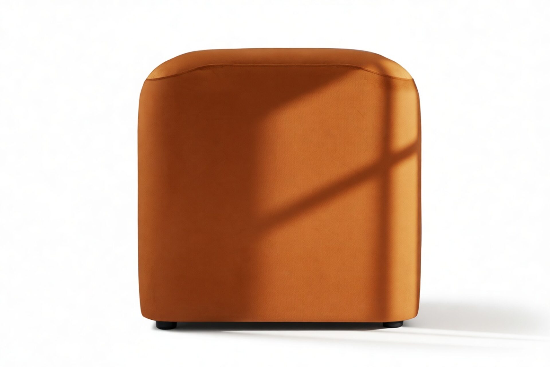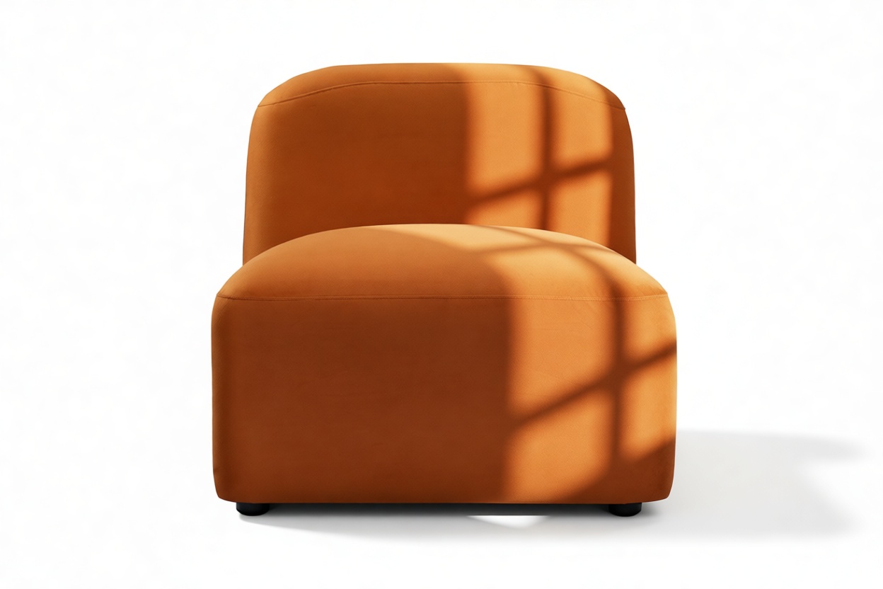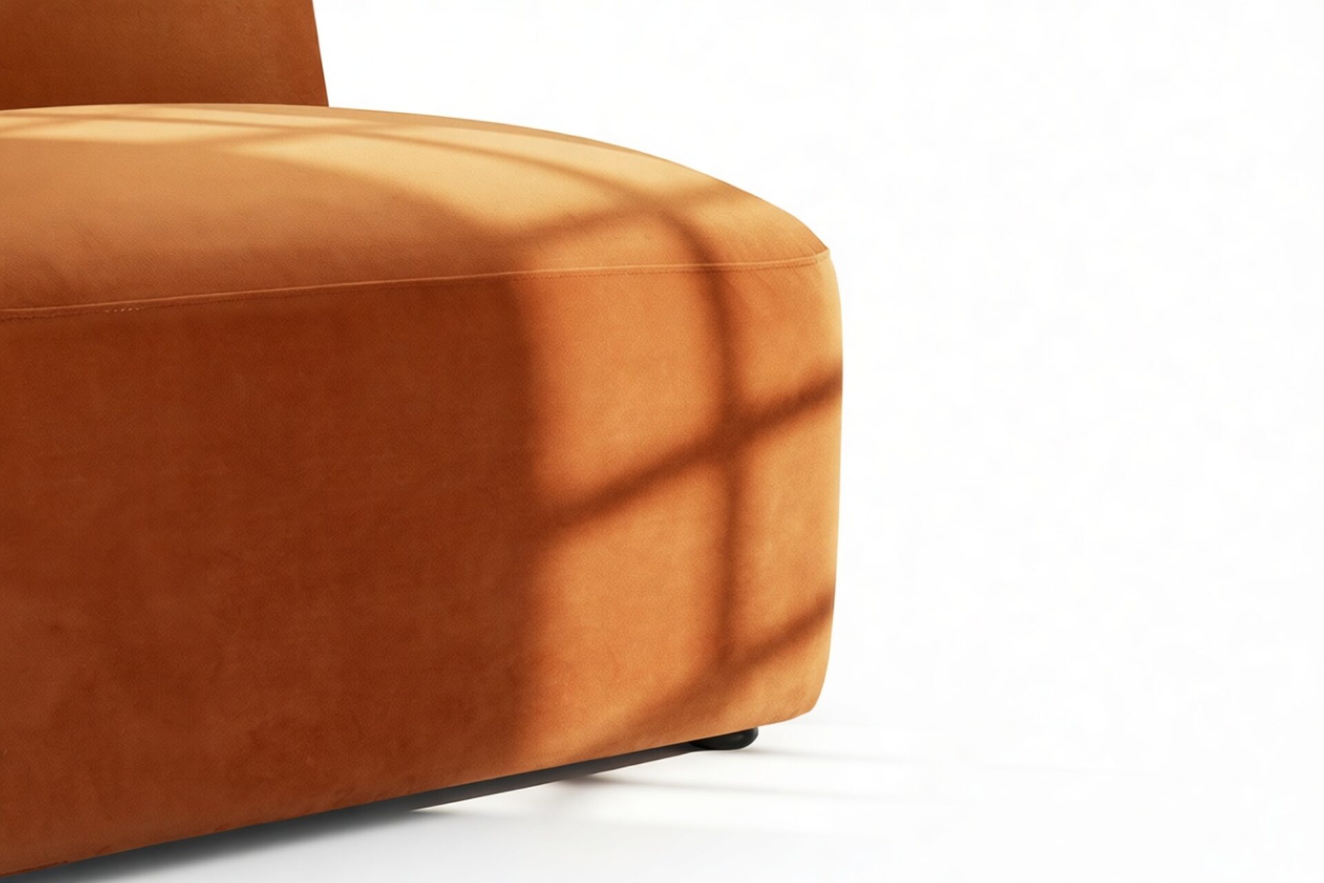 Sleek and eye-catching, the modules showcase plush velvet upholstery, sturdy arms, curved edges, and intricate stitching for both a tactile and visual allure. The burnt orange color infuses a hint of coziness and enduring elegance.