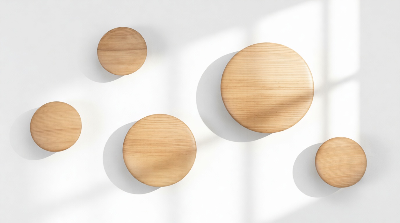 Discover the perfect blend of functionality and artistic flair with this stylish take on a coat rack. The round pegs offer a fashionable solution for hanging up jackets, tote bags, and various essentials. Embrace a cozy and inviting ambiance for yourself and your visitors with this eye-catching piece.