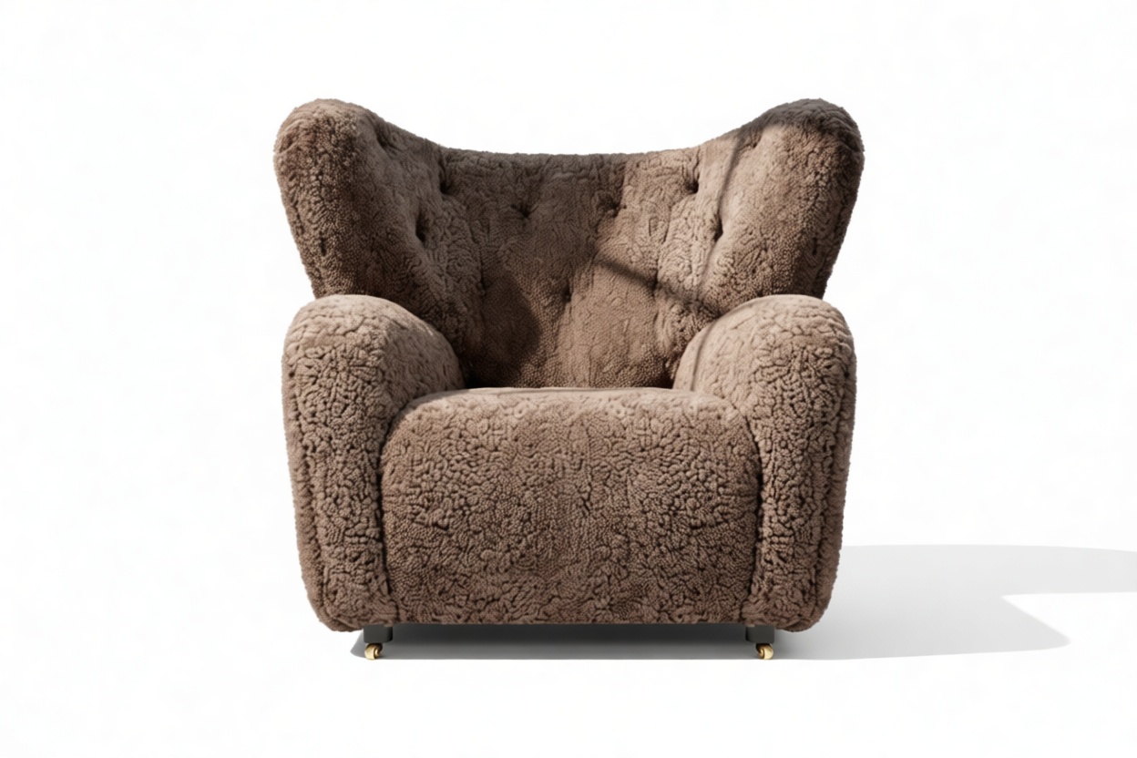 Experience unparalleled comfort with the Tired Man Chair, an iconic piece that embodies Danish design principles of simplicity and warmth. With luxuriously padded arms and a gracefully curved backrest, this chair offers a cozy retreat for relaxation. Sink into its plush Frosted Coco Luxe Sheepskin cushions to escape daily pressures and embrace tranquility in style.