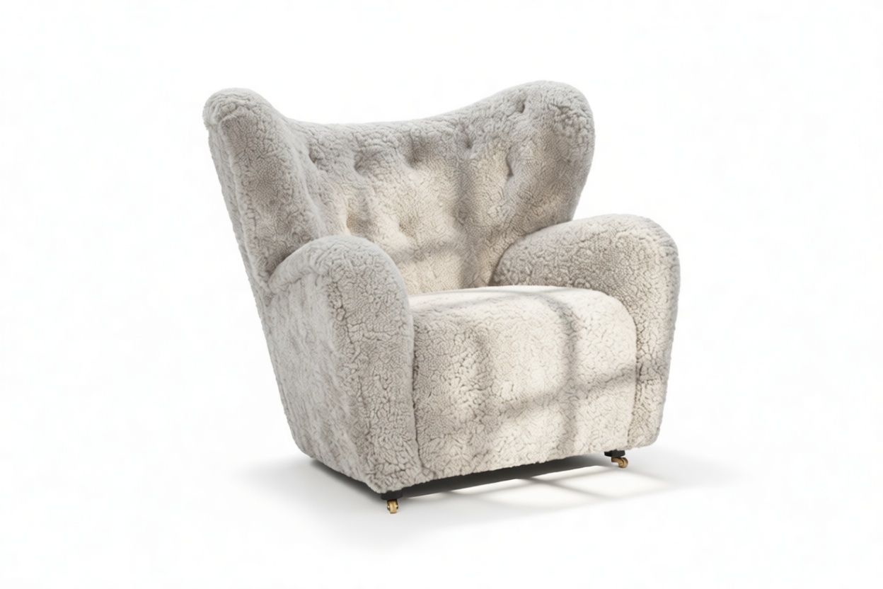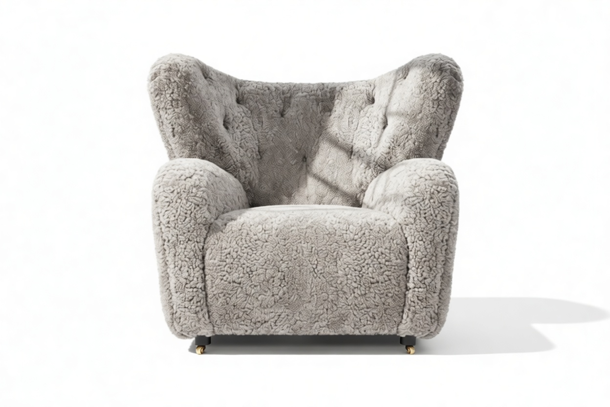 Indulge in timeless relaxation with the Eternal Comfort of the Tired Man Chair in Soft Gray Luxe Sheepskin. This iconic chair encapsulates Danish design principles, offering a warm and inviting retreat. With a gracefully curved backrest, luxuriously padded arms, and plush cushions, it beckons you to unwind and escape life's pressures.