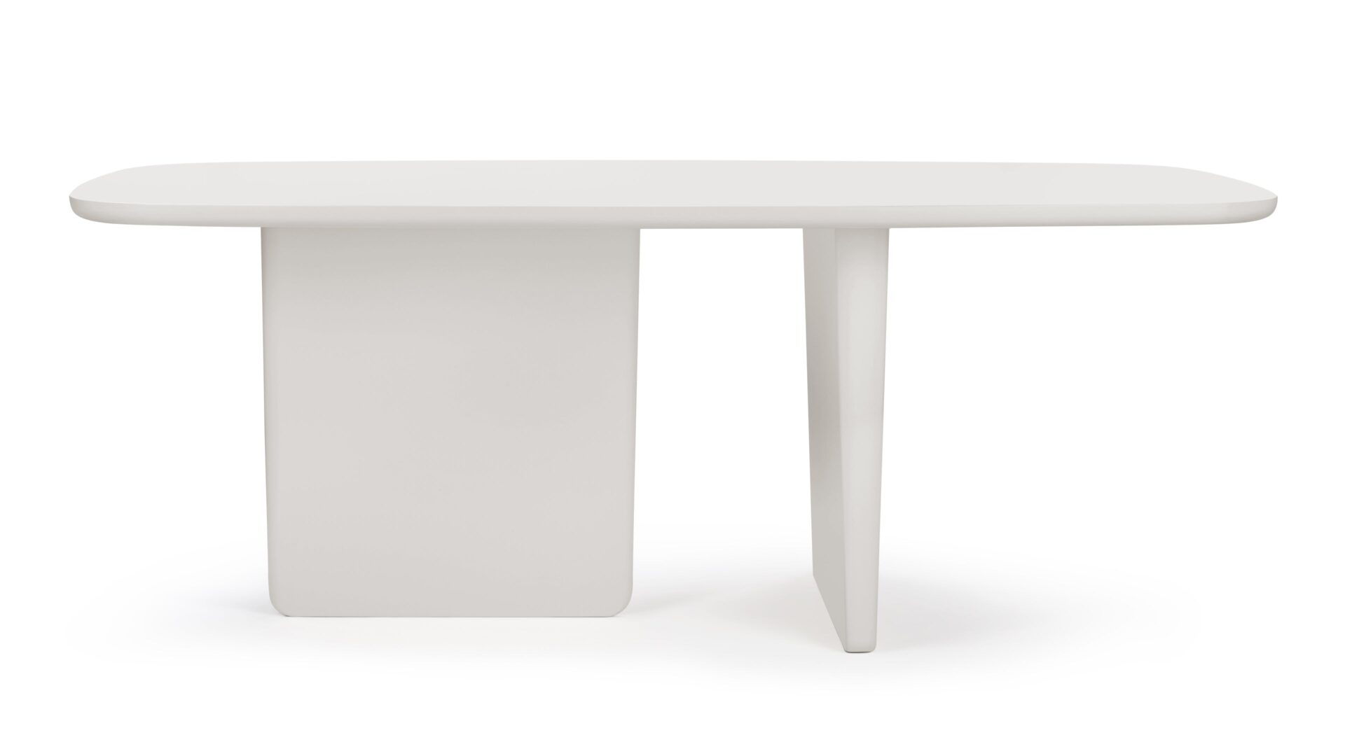 Discover unparalleled comfort and style with the Tobi Ishi Dining Table, effortlessly accommodating up to six individuals. Featuring a pristine white-painted finish and a sleek minimalist design, this table is an excellent choice for contemporary spaces, balancing sophistication with practicality. The gentle rounded edges not only contribute to its chic aesthetic but also enhance safety for day-to-day use. Stand out with this table's distinctive asymmetrical plank legs, infusing a modern touch that sets it apart. Create a focal point that harmonizes simplicity and ingenuity in your dining area with this exceptional piece.