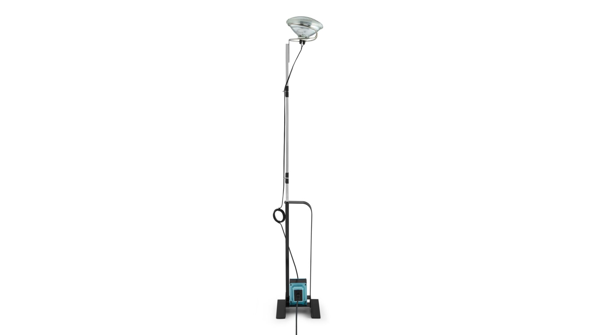 The Toio Floor Lamp boasts a striking industrial design featuring exposed wiring, a chrome bulb holder, and a bold angular base. It expertly blends functional elements with mechanical sophistication.