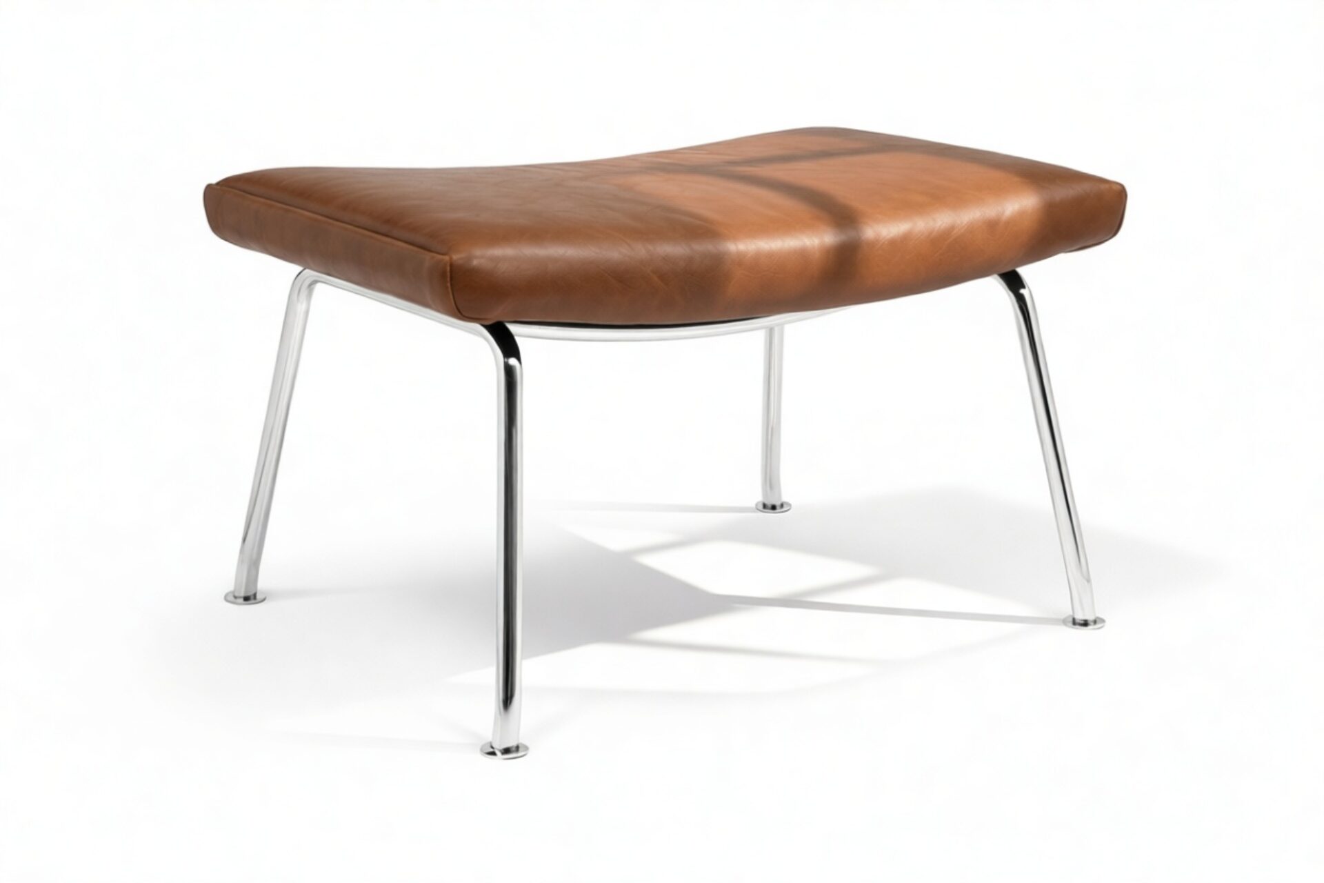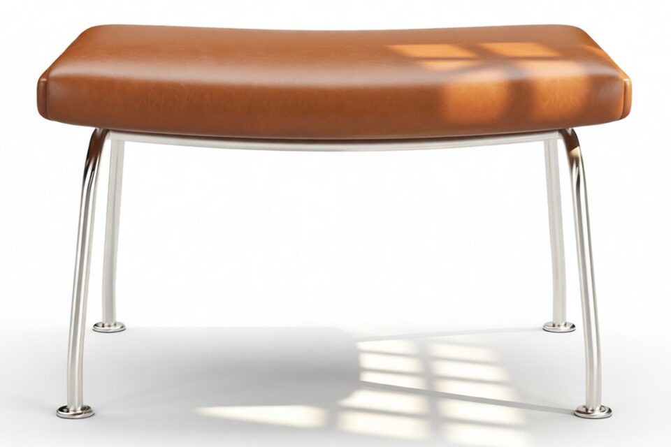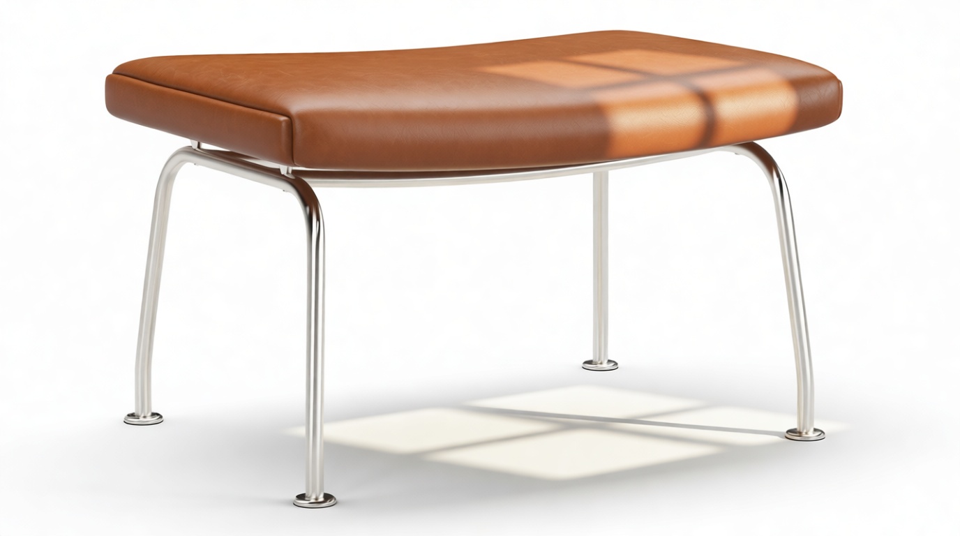 Sleek Tan Leather Ottoman