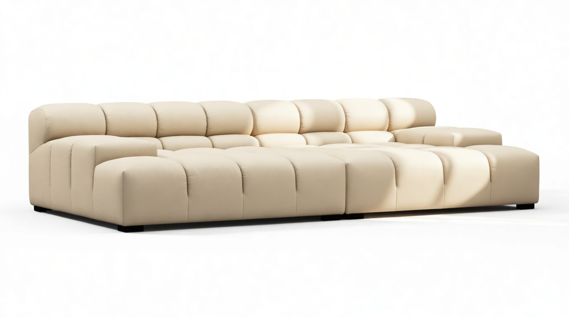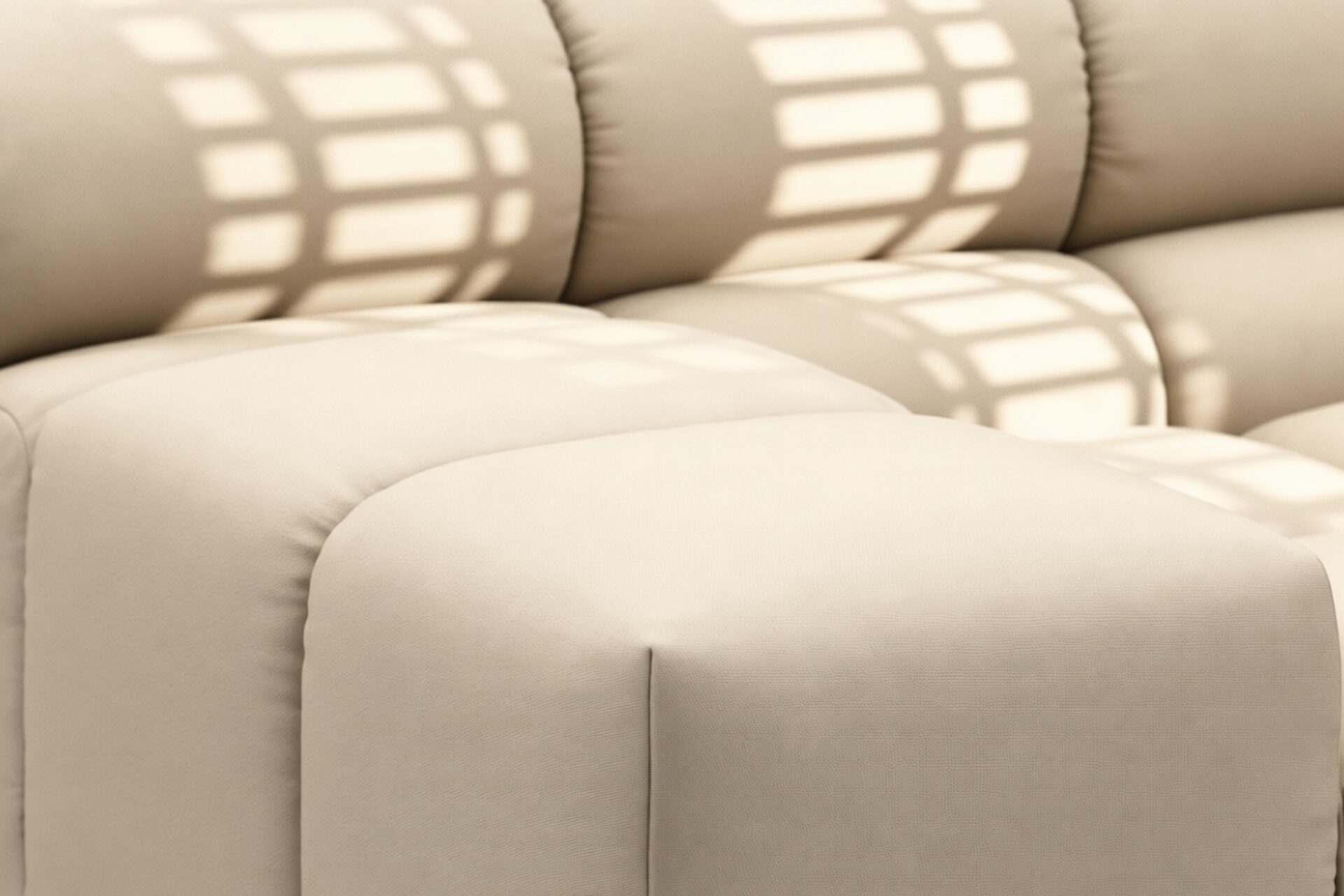 Introducing a modern take on the timeless Chesterfield capitonné with a relaxed 70s-inspired flair, the Tufty Outdoor Sectional offers refined comfort for outdoor living spaces. Combining a captivating and whimsical aesthetic with exceptional durability, this versatile piece is a perfect fit for patios, terraces, and gardens.