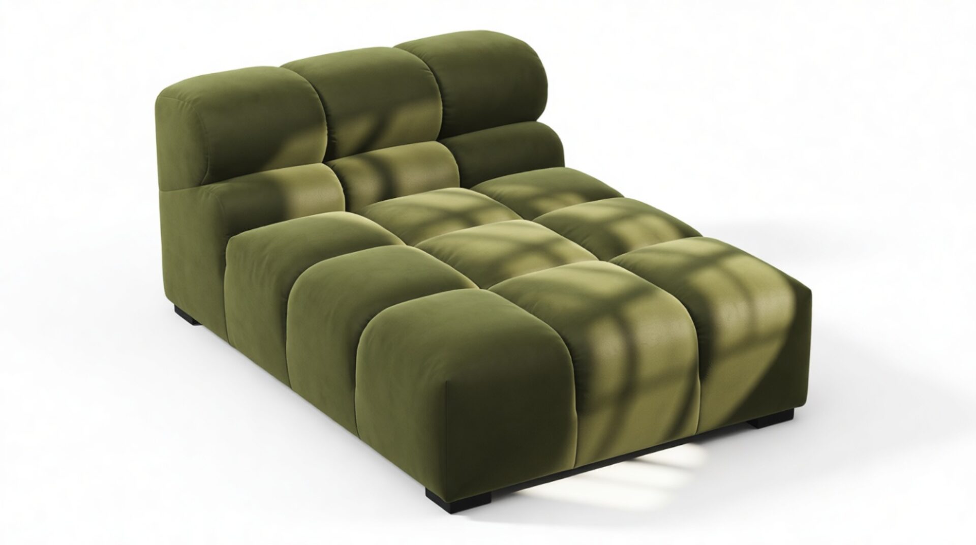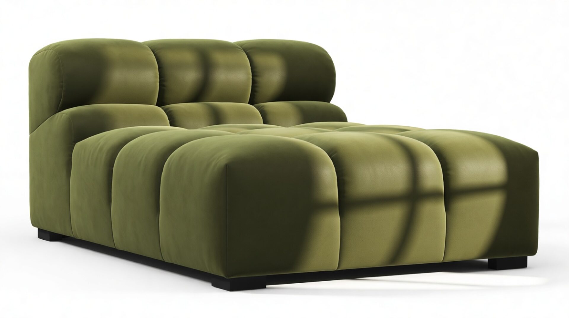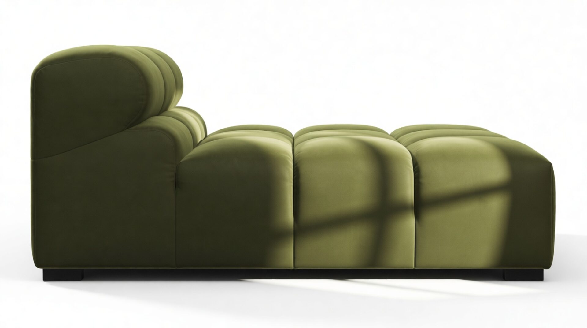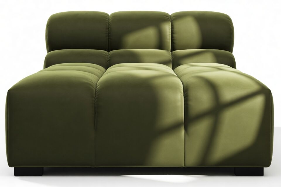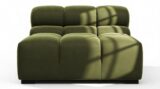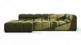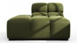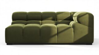 Introducing the Tufty sectional, a contemporary twist on the classic Chesterfield design infused with 70s vibes. This chic piece features a versatile modular layout, blending casual elegance with a playful aesthetic. Upholstered in Thyme Luxe Velvet, the Tufty's subtle curves and ample dimensions ensure a cozy and welcoming atmosphere in any setting, from modern lofts to spacious living spaces.
