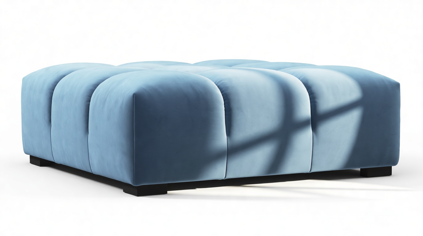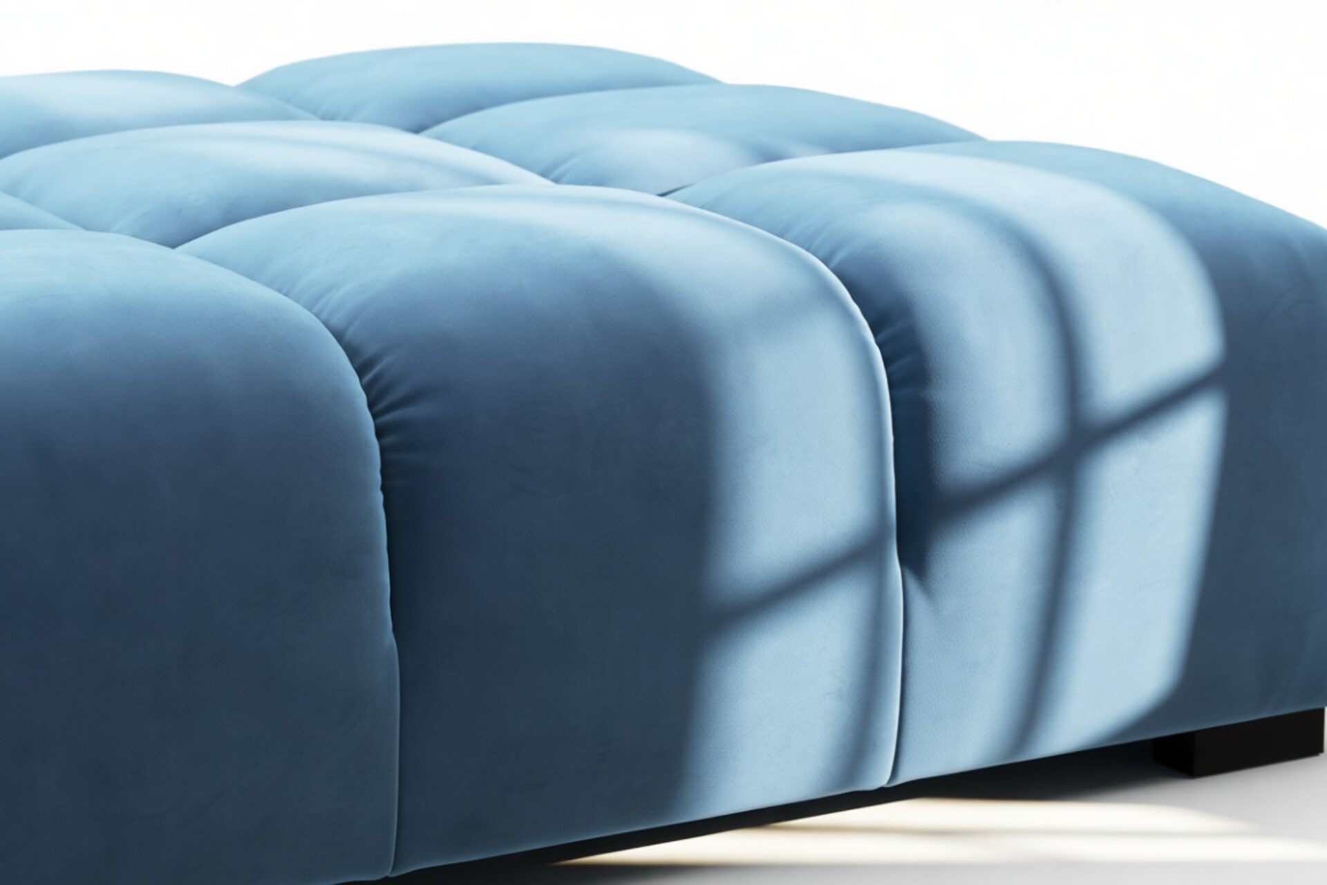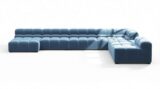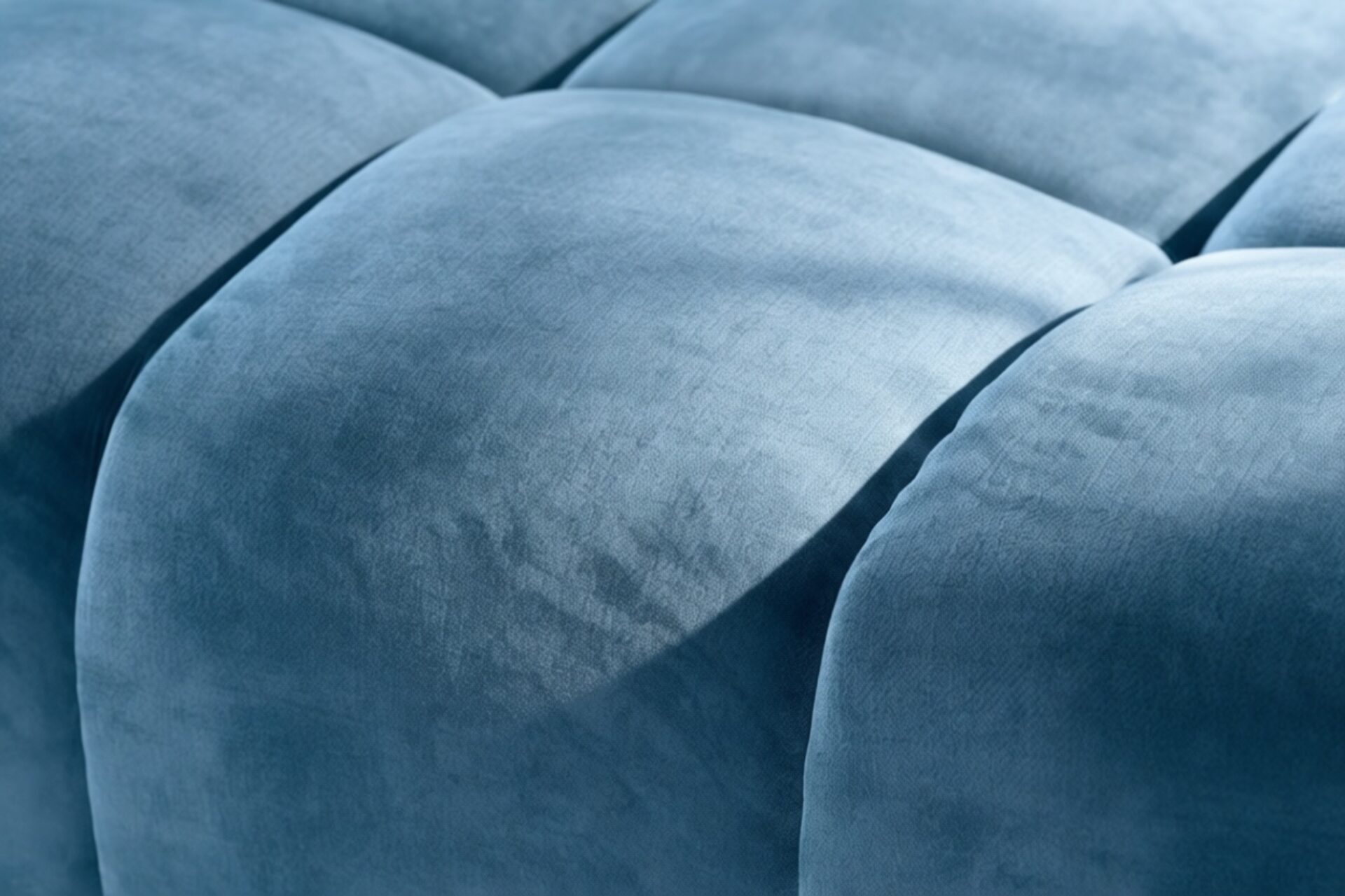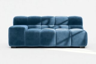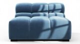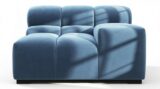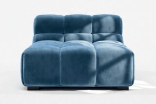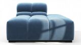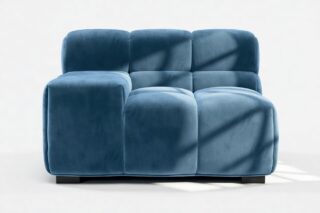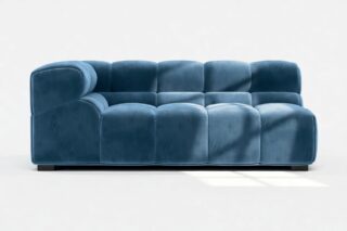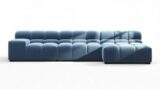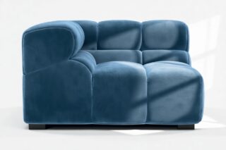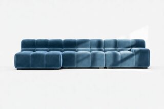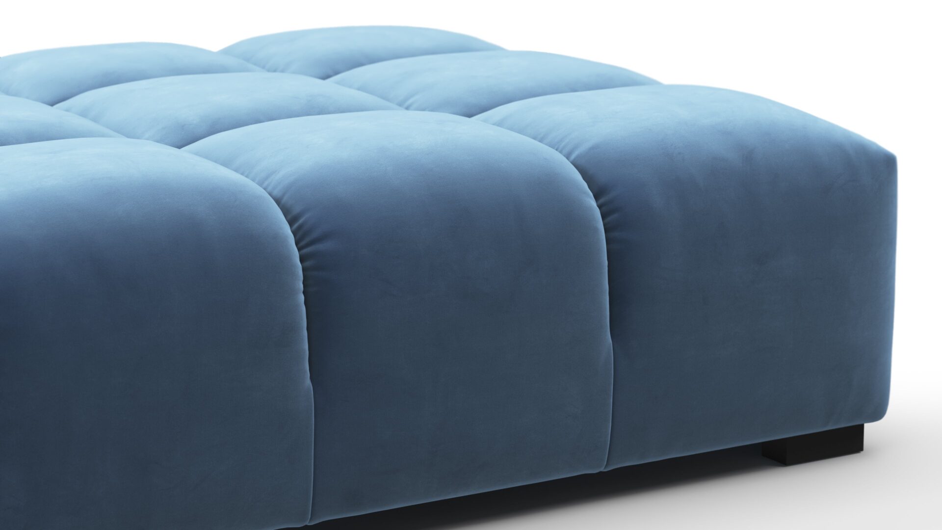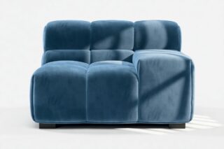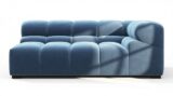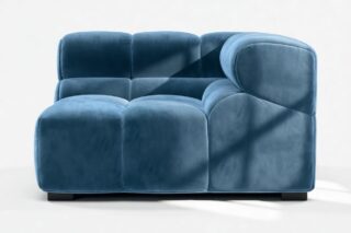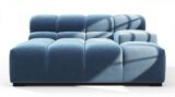Revamp the classic Chesterfield style with the Tufty sectional, embodying the laid-back 70s vibe in a chic Aegean Blue Velvet finish. The versatile design and modular structure allow seamless integration into any setting, exuding a modern allure with subtle curves. Its spacious layout and bench-style foundation offer ultimate comfort for lounging and relaxation, making it a captivating centerpiece in both modern and vintage interiors.