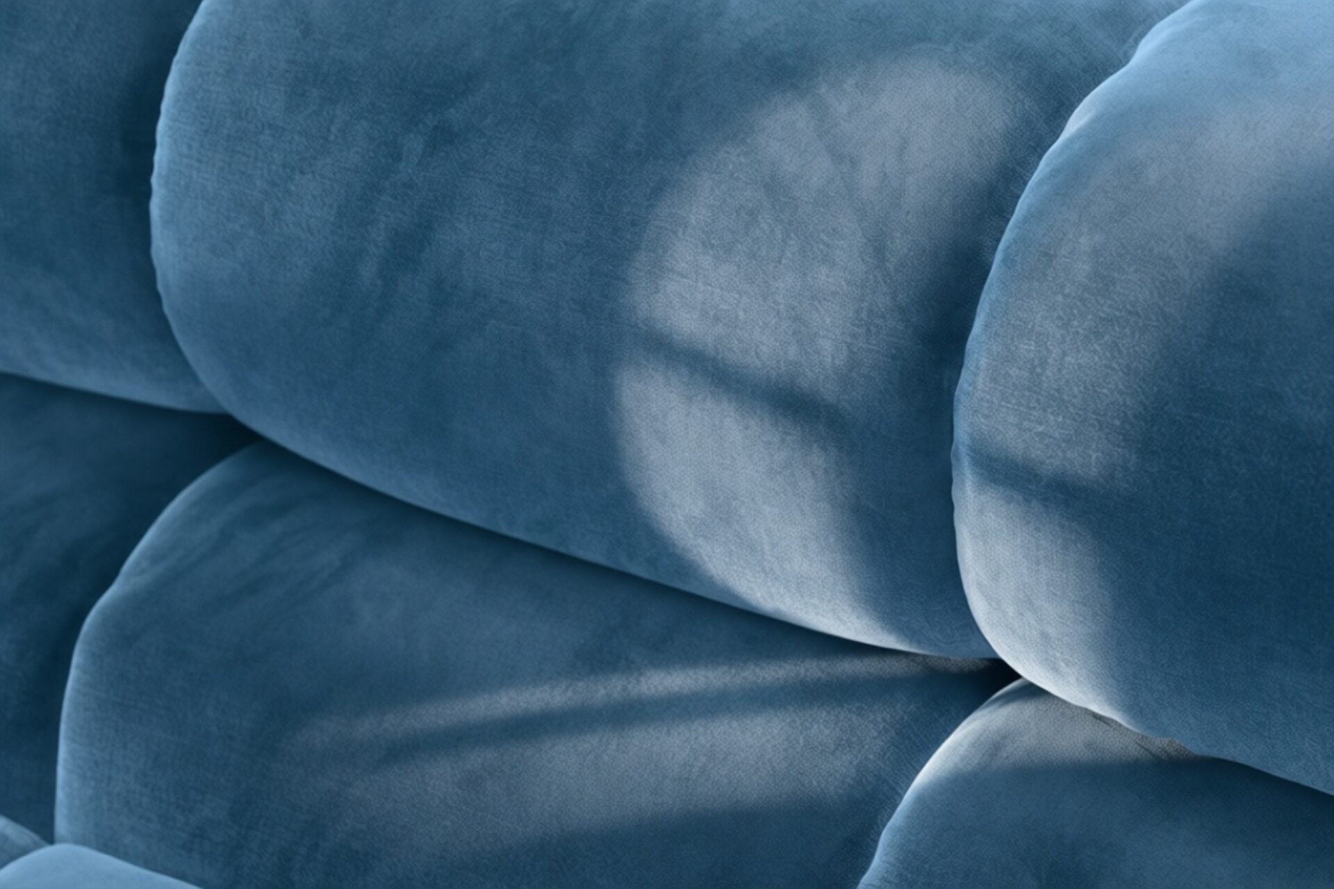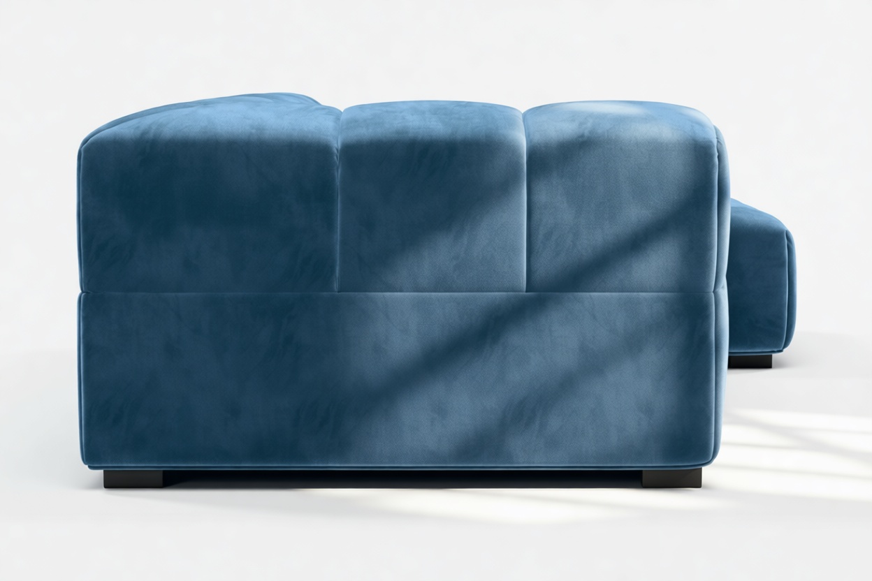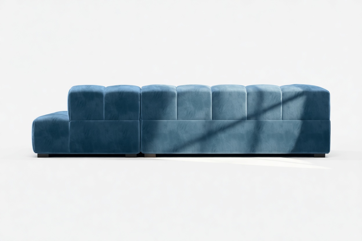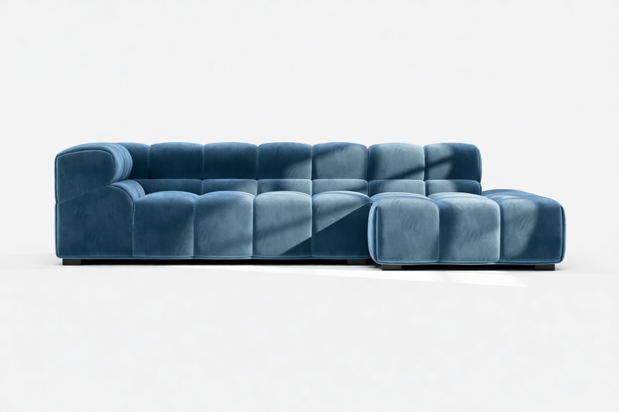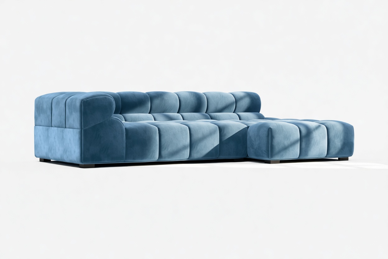 Discover a refreshing twist on the classic Chesterfield style with the Tufty Sectional in Aegean Blue Velvet, embodying the relaxed charm of the 70s. This contemporary masterpiece boasts a modular design for adaptability, blending chic casual elegance with ultimate comfort. Its subtle curves and bench-style foundation make it a versatile and captivating addition to any modern or vintage space.