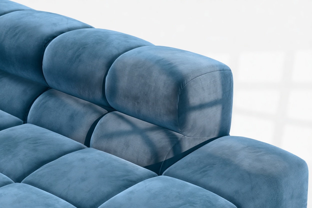Experience a fresh take on the traditional Chesterfield capitonné with the relaxed vibes of the 70s era showcased in the Tufty sectional. This contemporary masterpiece offers a versatile design with a captivating and playful aesthetic. Embracing a simplistic modular approach for utmost adaptability, the Tufty exudes a modern appeal that effortlessly fits in various settings, from cozy city lofts to spacious entertainment areas.