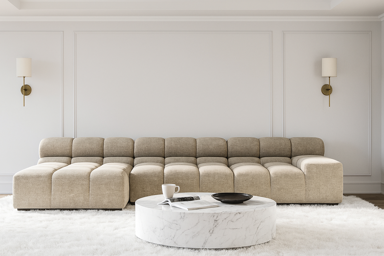 Experience a fresh take on the traditional Chesterfield capitonné with the relaxed vibes of the 70s era showcased in the Tufty sectional. This contemporary masterpiece offers a versatile design with a captivating and playful aesthetic. Embracing a simplistic modular approach for utmost adaptability, the Tufty exudes a modern appeal that effortlessly fits in various settings, from cozy city lofts to spacious entertainment areas.