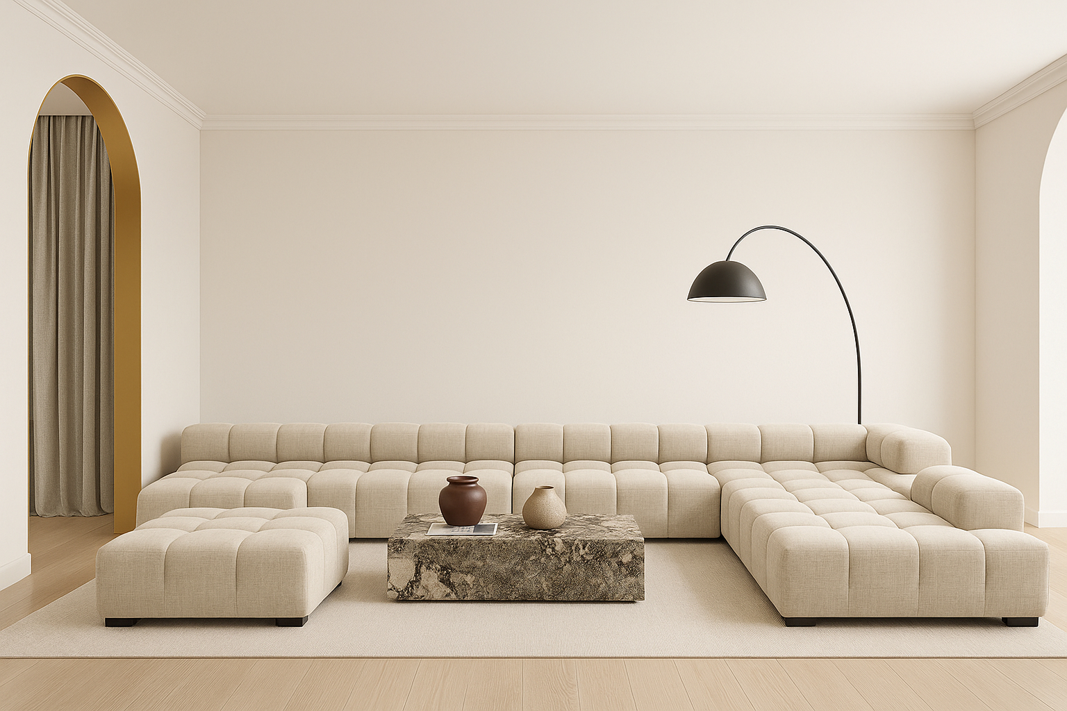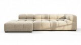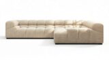 Introducing the Tufty Sectional, a modern twist on the classic Chesterfield design infused with 70s charm, now available in Beige Gray Chenille. This contemporary masterpiece offers a versatile and playful aesthetic, with a modular layout for adaptability. Embrace its chic outline and indulgent lounging experience, perfect for any setting from city lofts to spacious entertainment areas, making it a must-have for modern and vintage interiors alike.