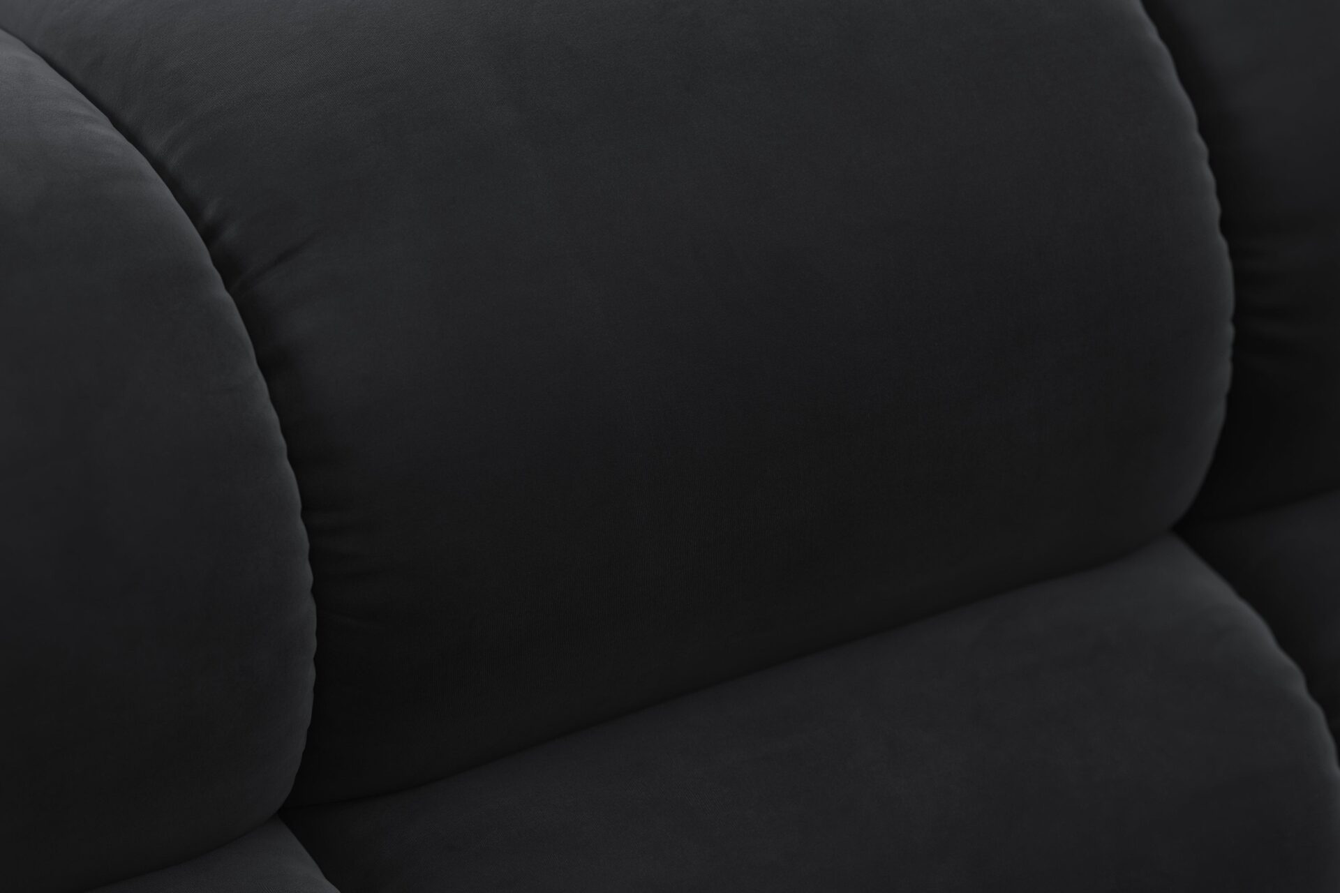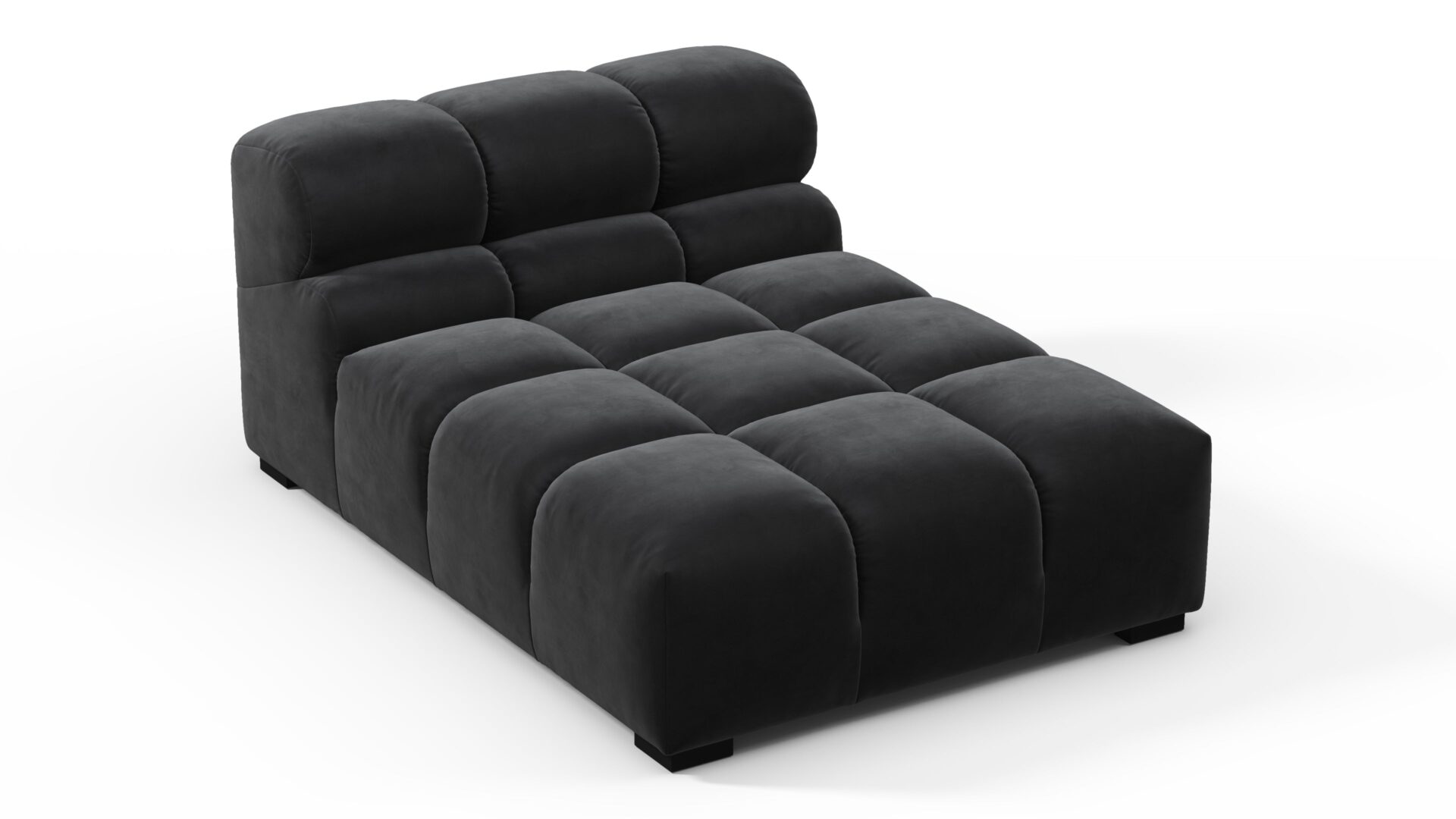 Experience a modern reinterpretation of the classic Chesterfield design with the Tufty sectional exuding 70s flair. Its chic black velvet upholstery adds a touch of elegance to any space, whether it's a cozy city loft or a spacious entertainment area. The Tufty's modular design effortlessly blends casual elegance with ultimate comfort, featuring subtle curves and ample dimensions perfect for reclining and cozying up with style.