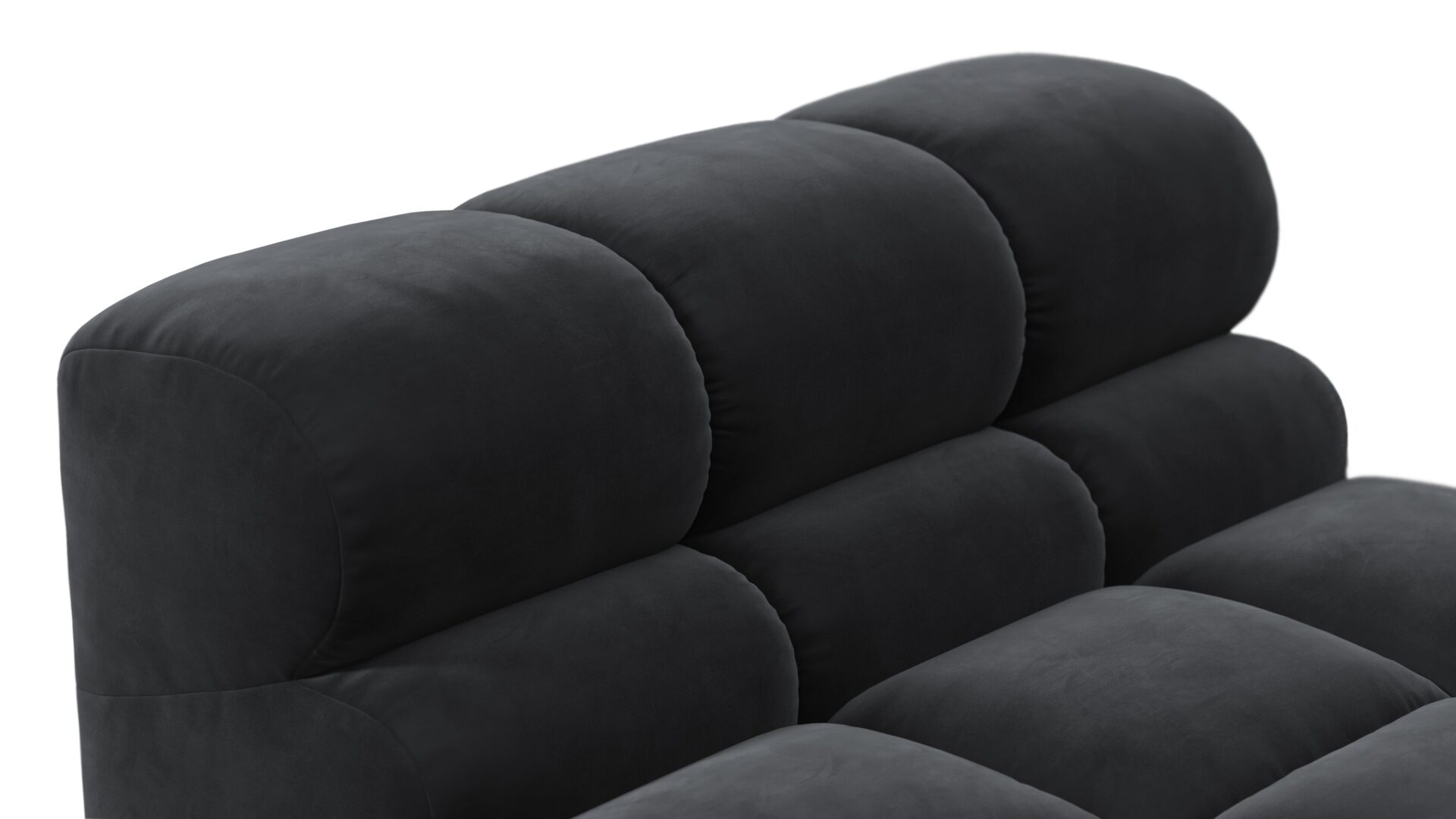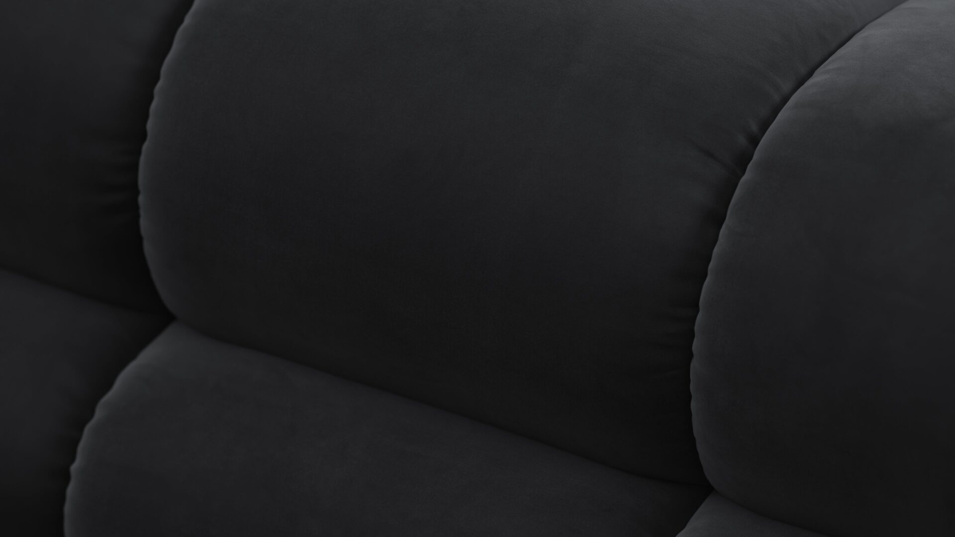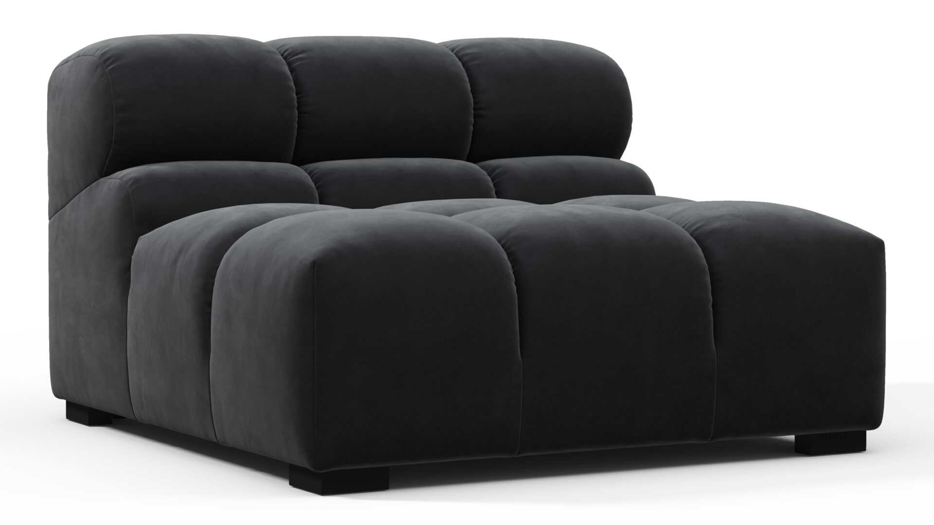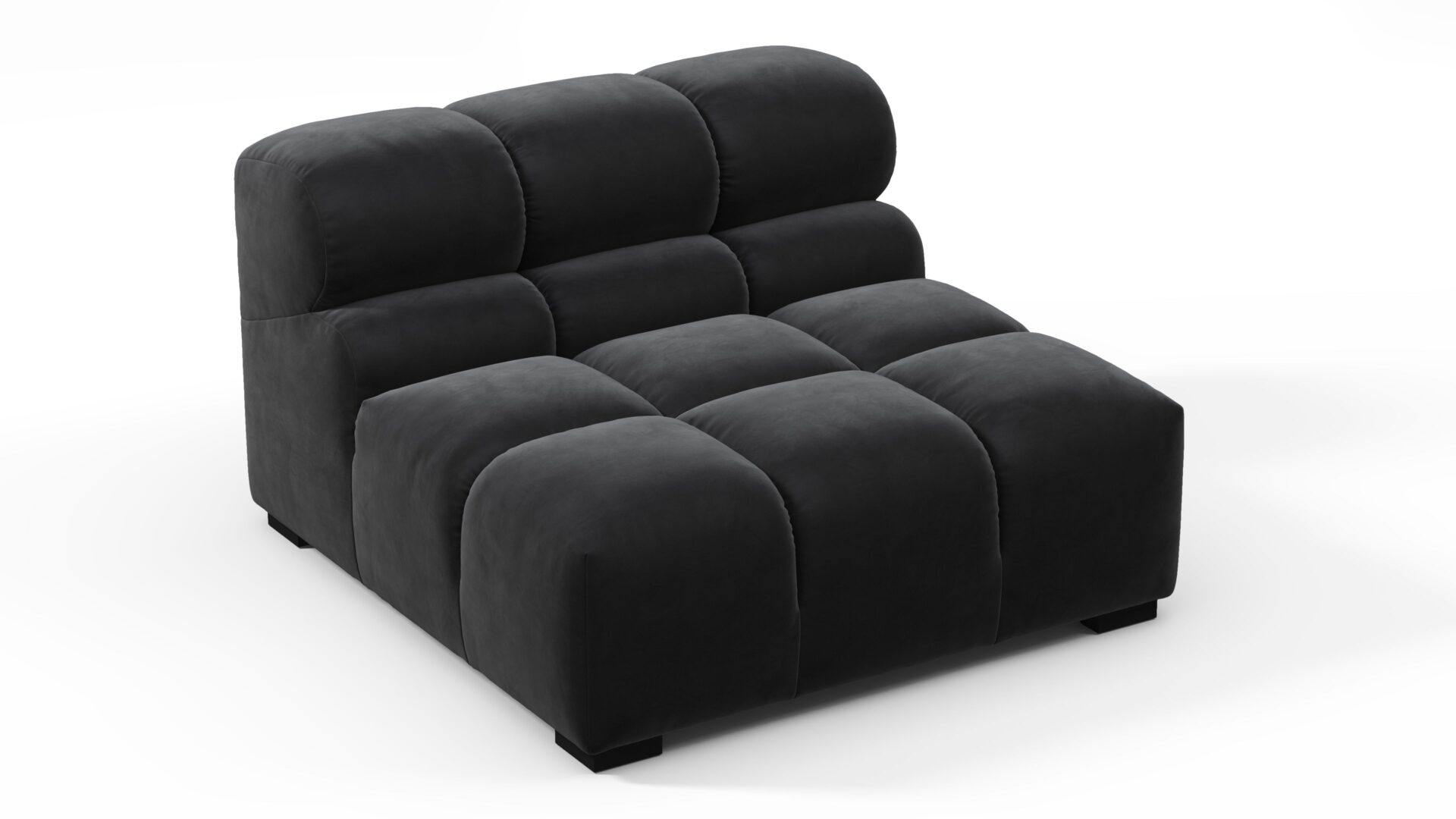 Elevate your space with the Tufty sectional - a modern twist on the classic Chesterfield style, infused with 70s retro charm. The sleek Black Velvet material highlights its chic outline and subtle curves, making it a versatile addition to any contemporary or vintage setting. Get ready to sink into ultimate comfort and effortlessly stylish vibes with this captivating, modular masterpiece.