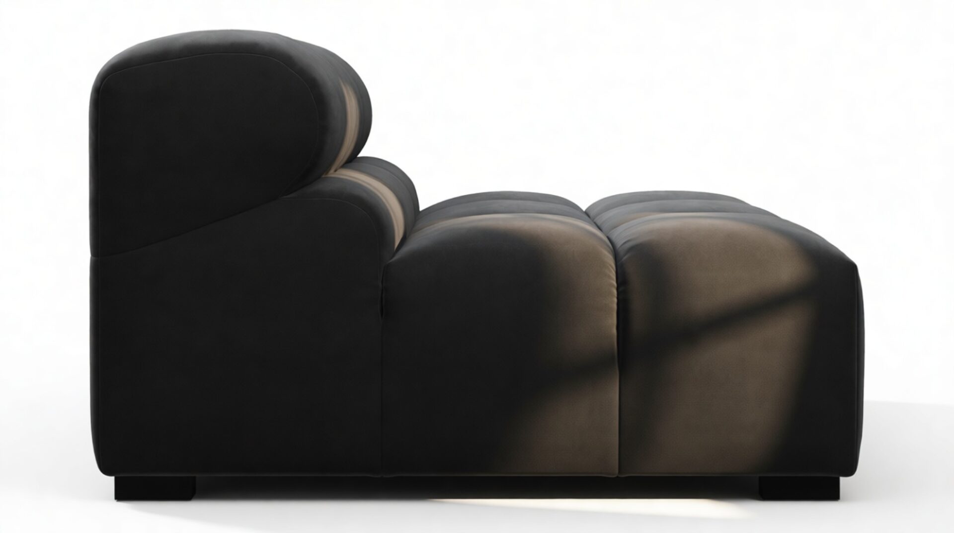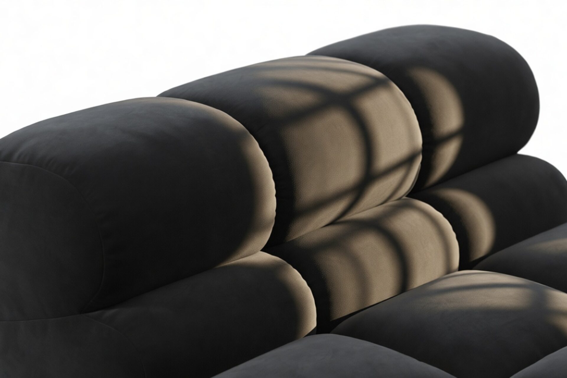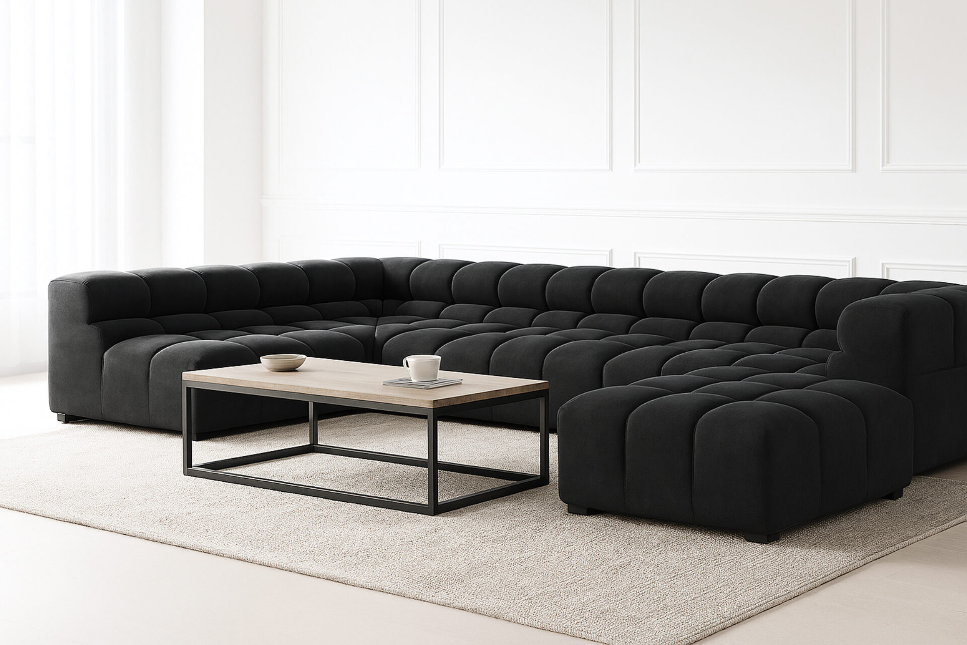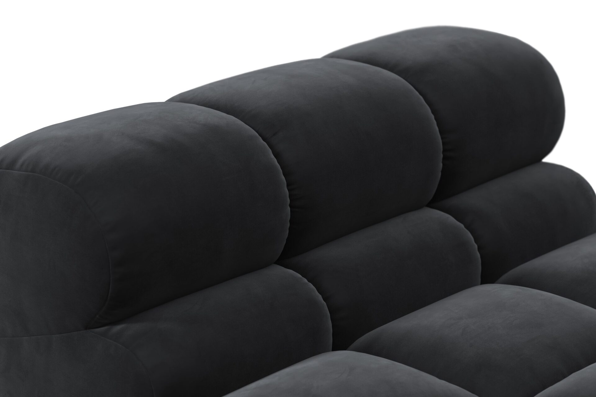 Elevate your space with the Tufty sectional - a modern twist on the classic Chesterfield style, infused with 70s retro charm. The sleek Black Velvet material highlights its chic outline and subtle curves, making it a versatile addition to any contemporary or vintage setting. Get ready to sink into ultimate comfort and effortlessly stylish vibes with this captivating, modular masterpiece.