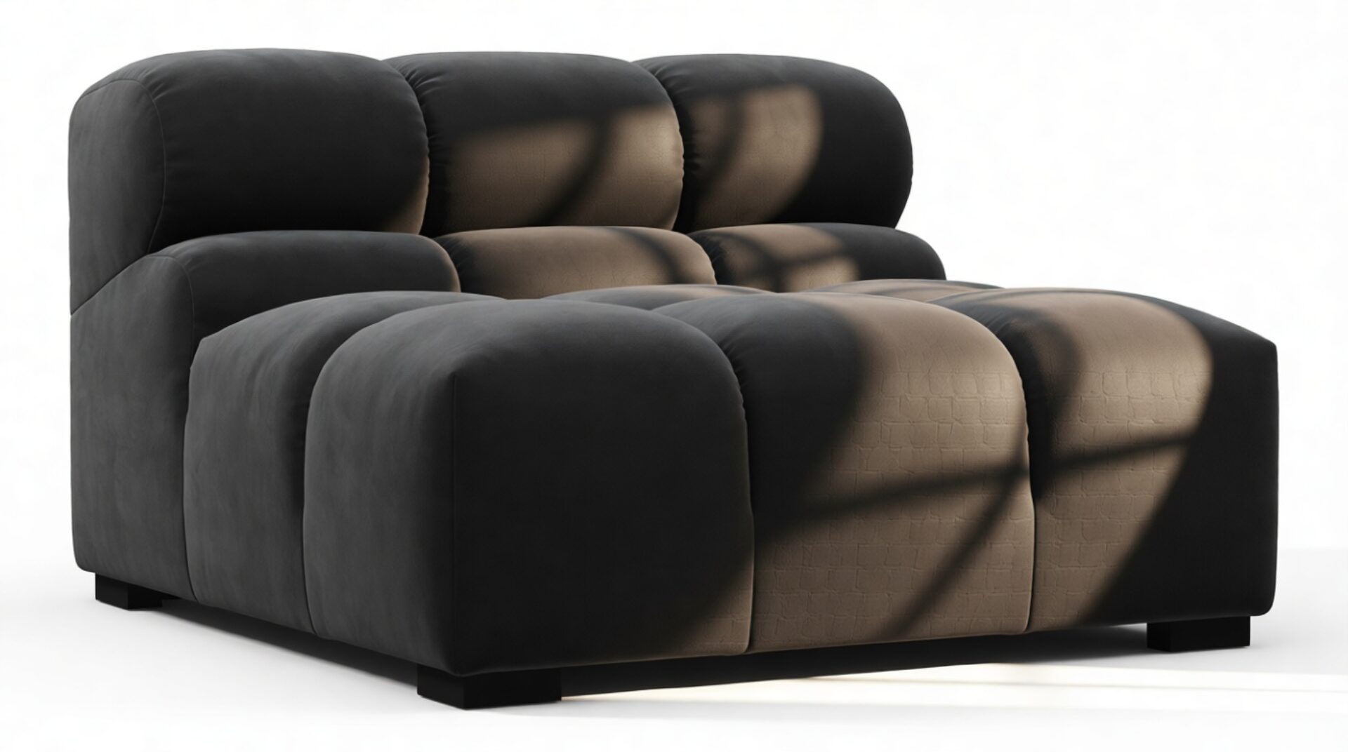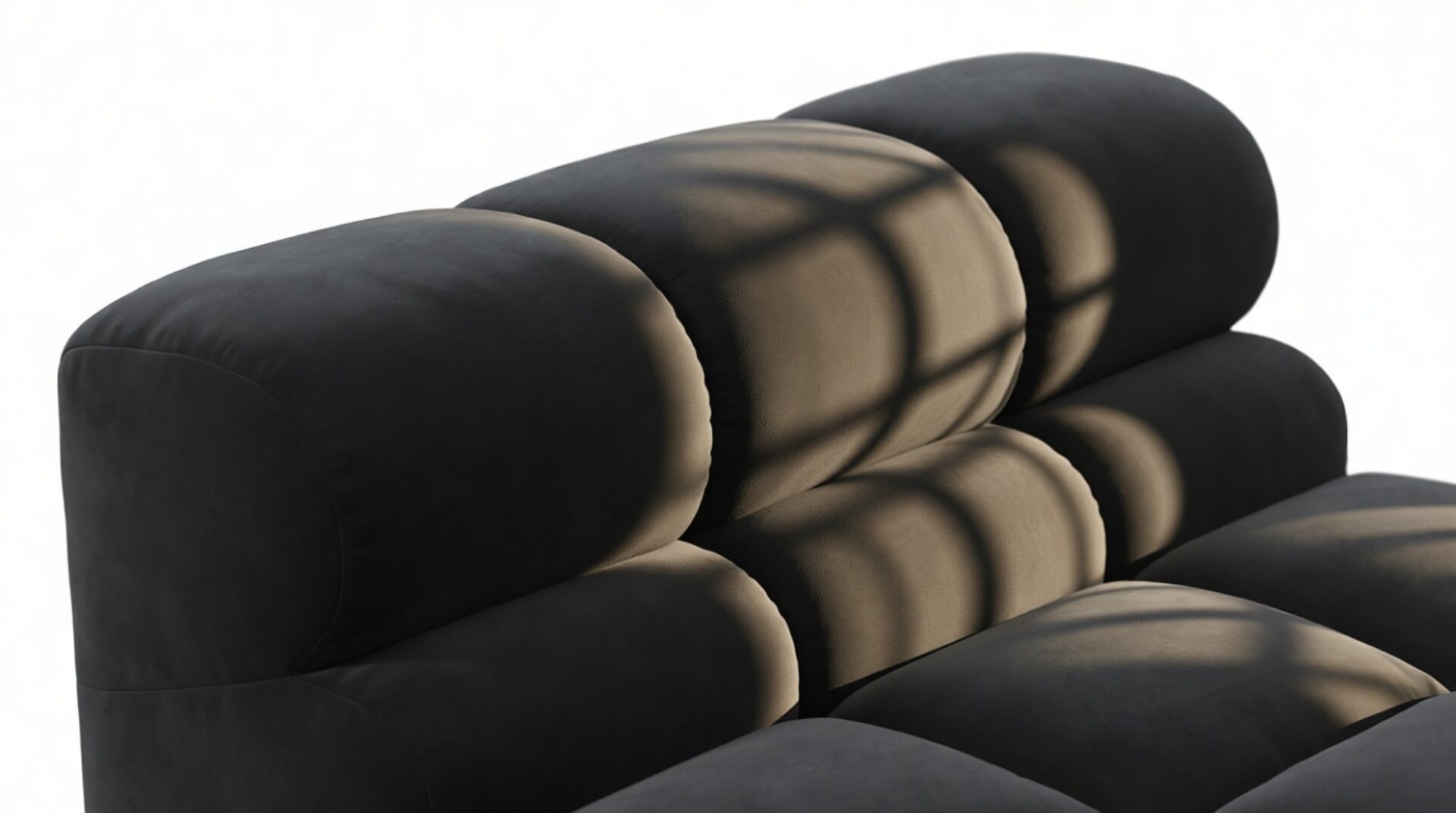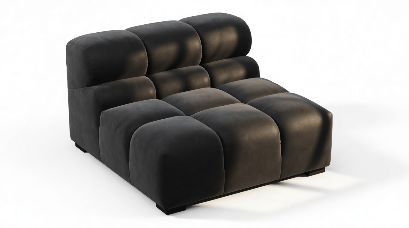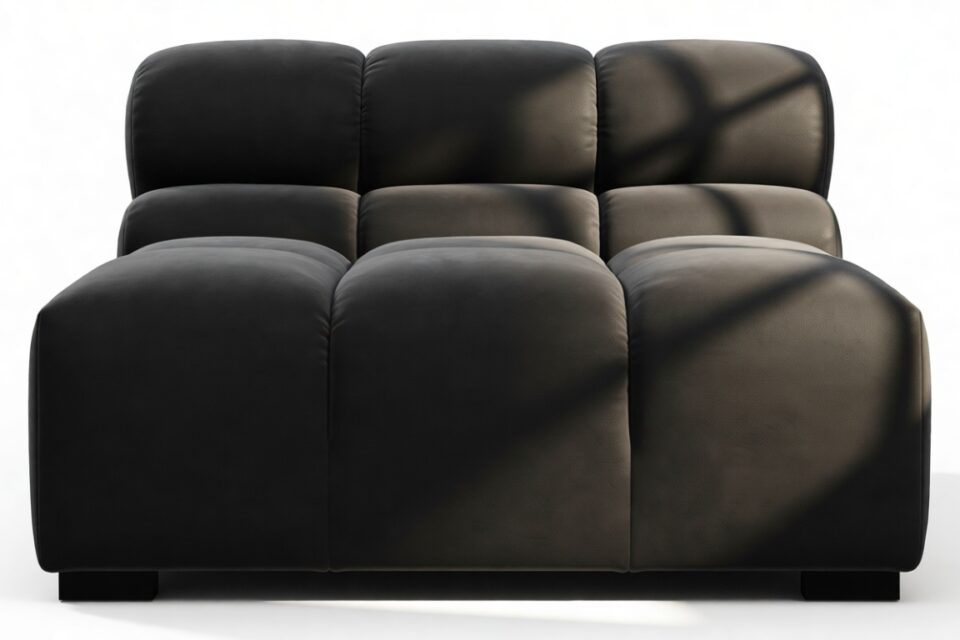 Elevate your space with the Tufty sectional - a modern twist on the classic Chesterfield style, infused with 70s retro charm. The sleek Black Velvet material highlights its chic outline and subtle curves, making it a versatile addition to any contemporary or vintage setting. Get ready to sink into ultimate comfort and effortlessly stylish vibes with this captivating, modular masterpiece.