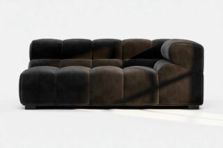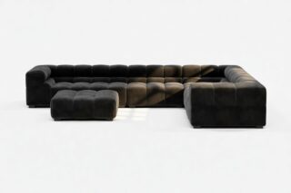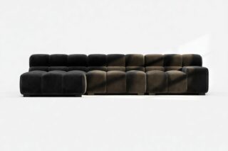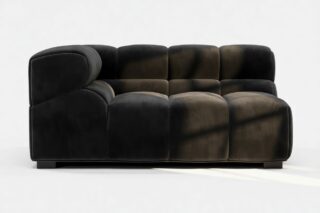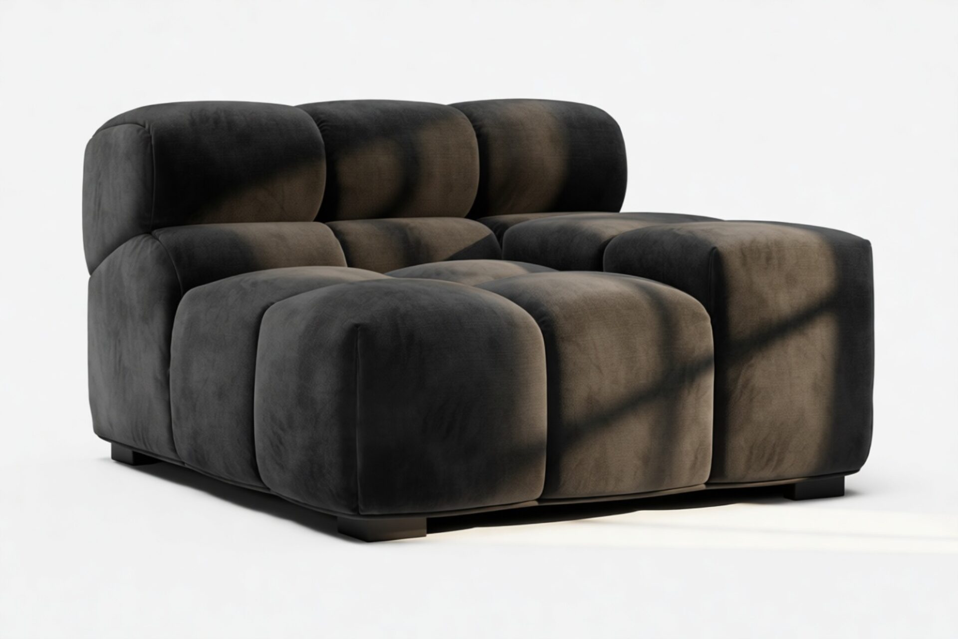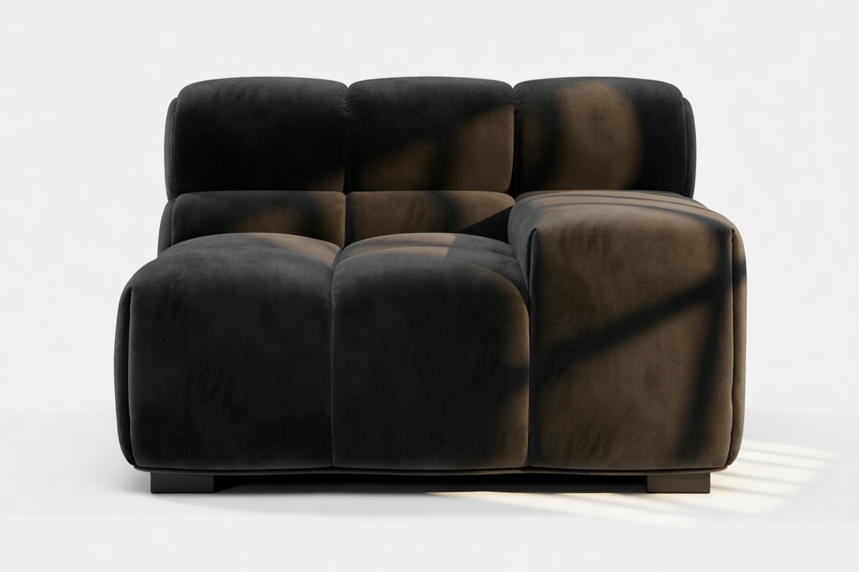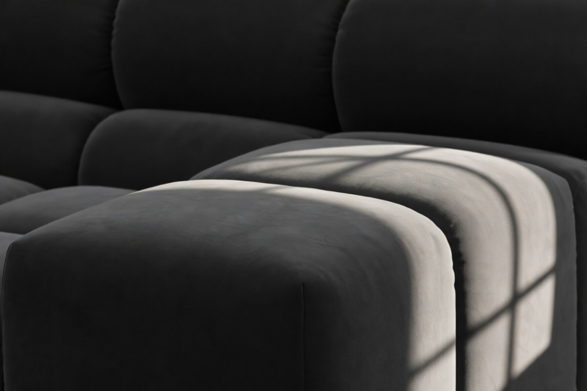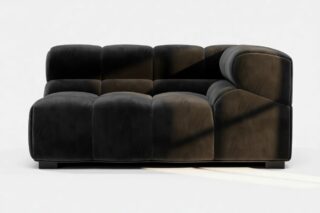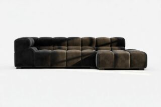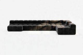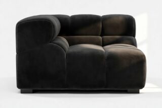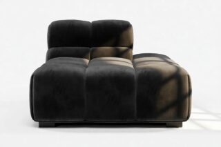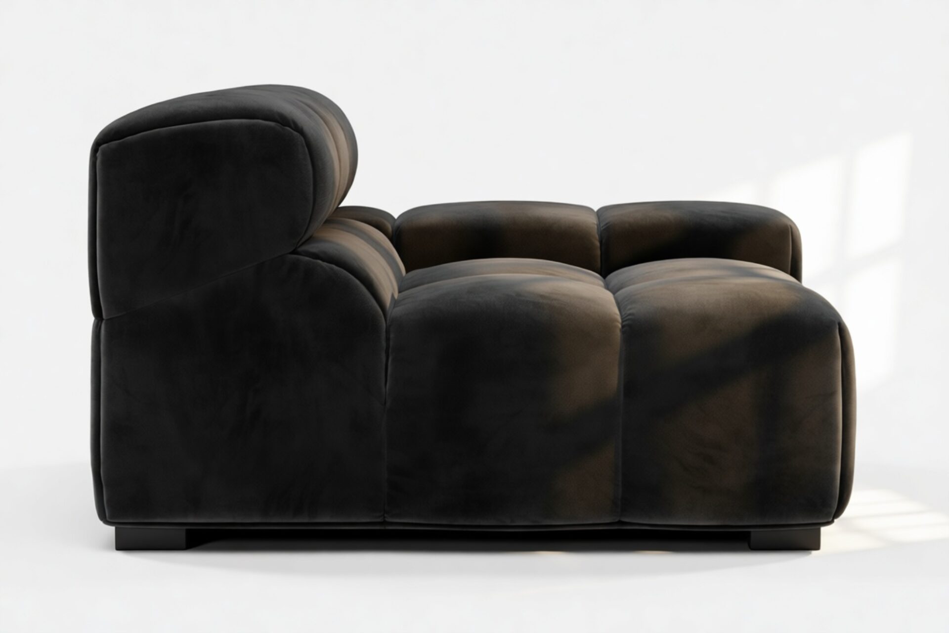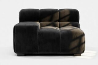 Introducing the Tufty sectional, a modern twist on the classic Chesterfield capitonné design infused with 70s flair. This contemporary masterpiece in Black Velvet offers chic elegance and a playful aesthetic. With its versatile modular design, it seamlessly fits into any setting, from trendy city lofts to spacious entertainment areas, ensuring ultimate comfort and style.