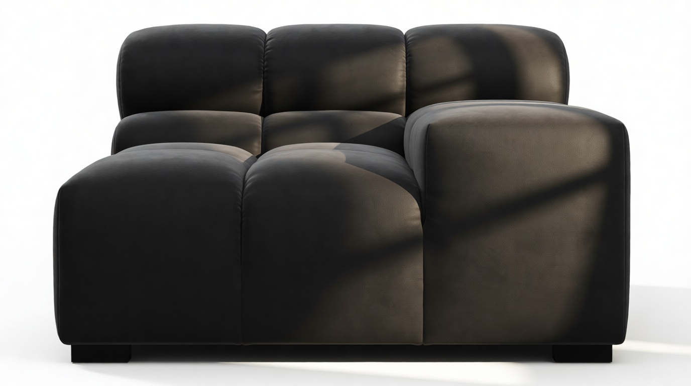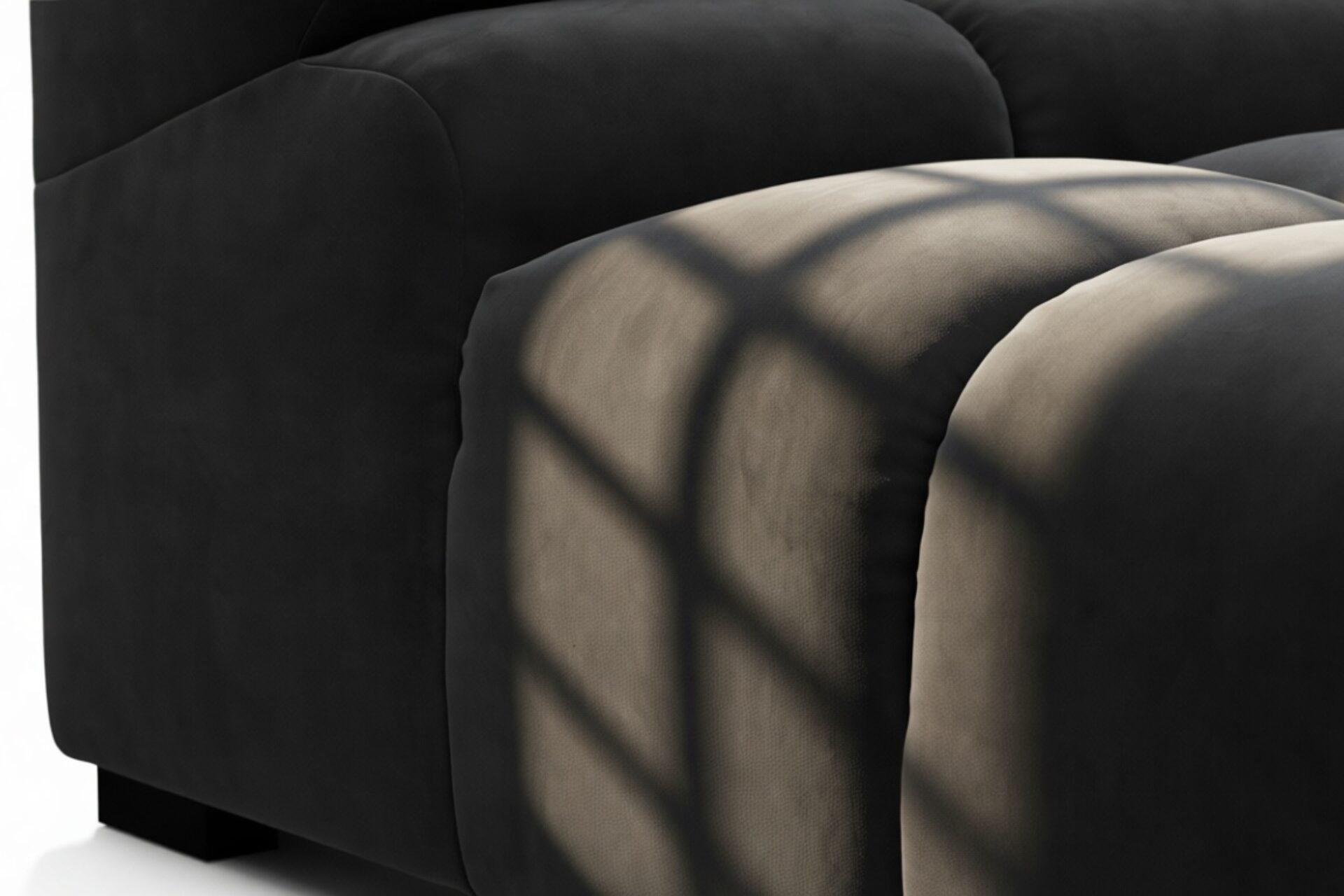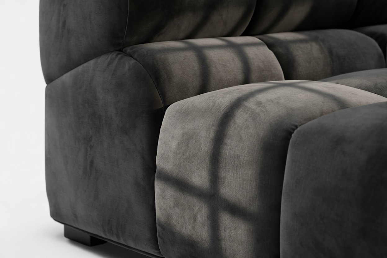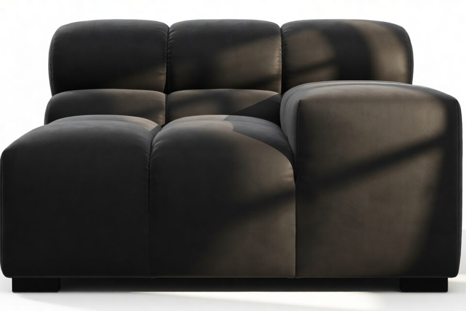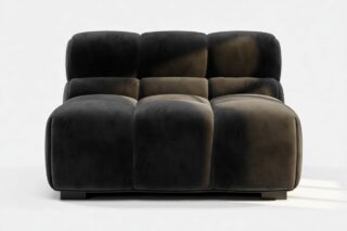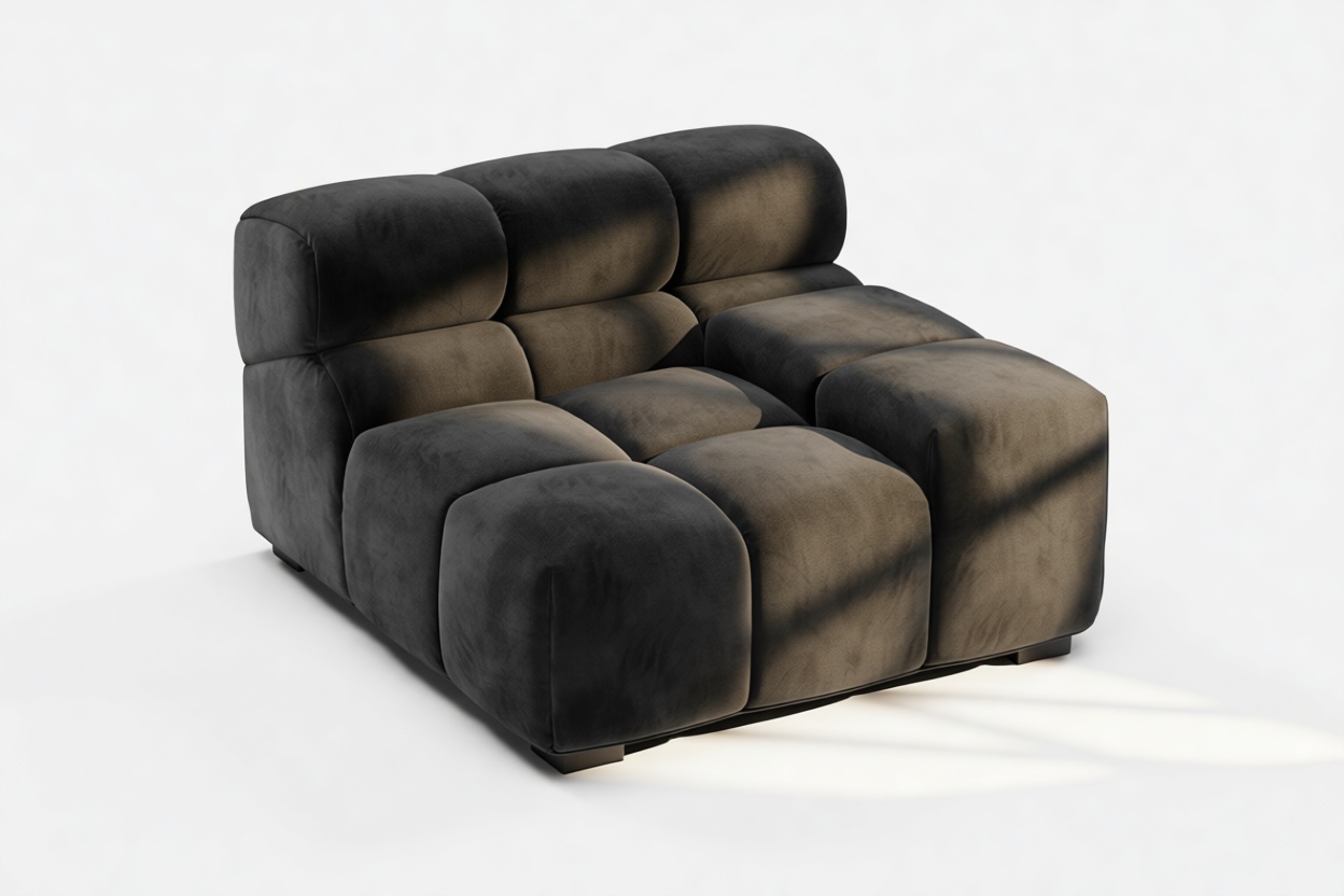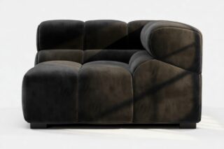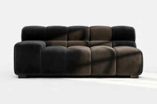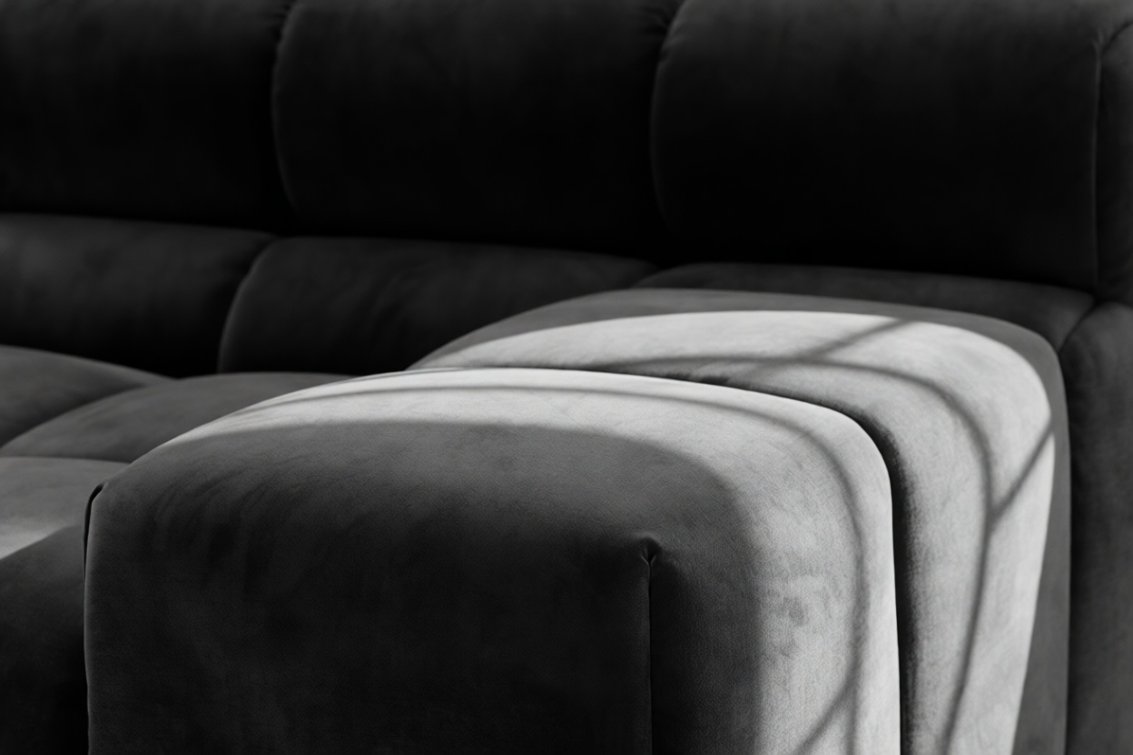 Introducing the Tufty sectional, a modern twist on the classic Chesterfield capitonné design infused with 70s flair. This contemporary masterpiece in Black Velvet offers chic elegance and a playful aesthetic. With its versatile modular design, it seamlessly fits into any setting, from trendy city lofts to spacious entertainment areas, ensuring ultimate comfort and style.