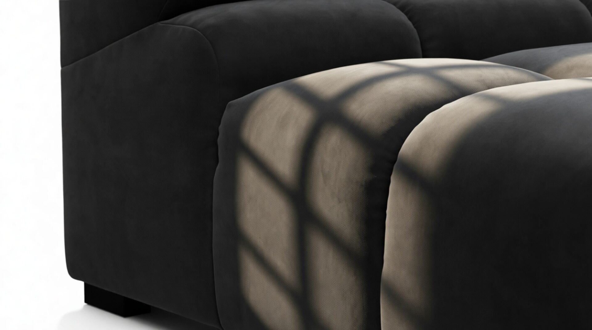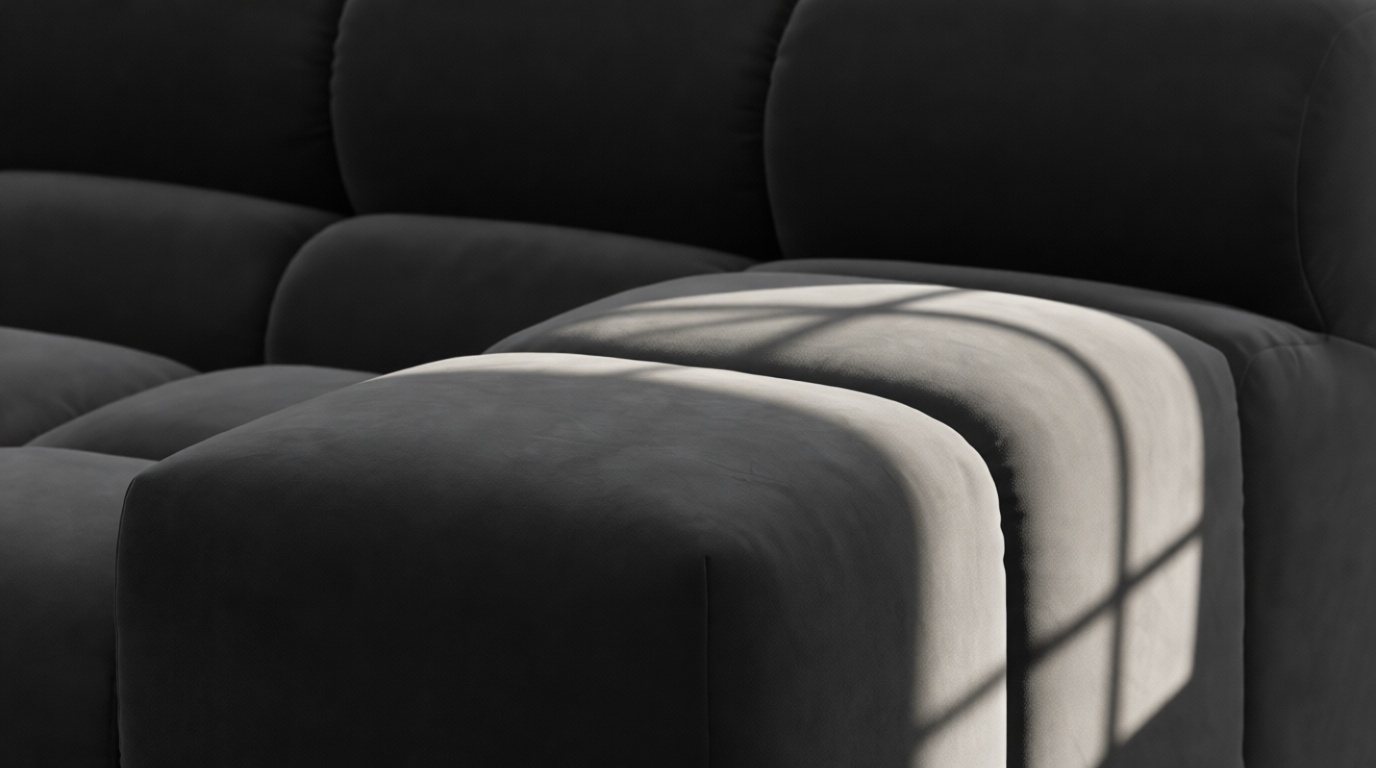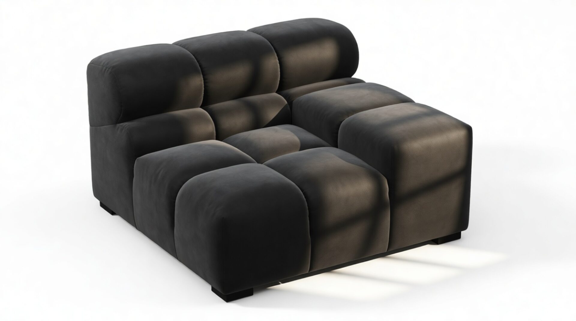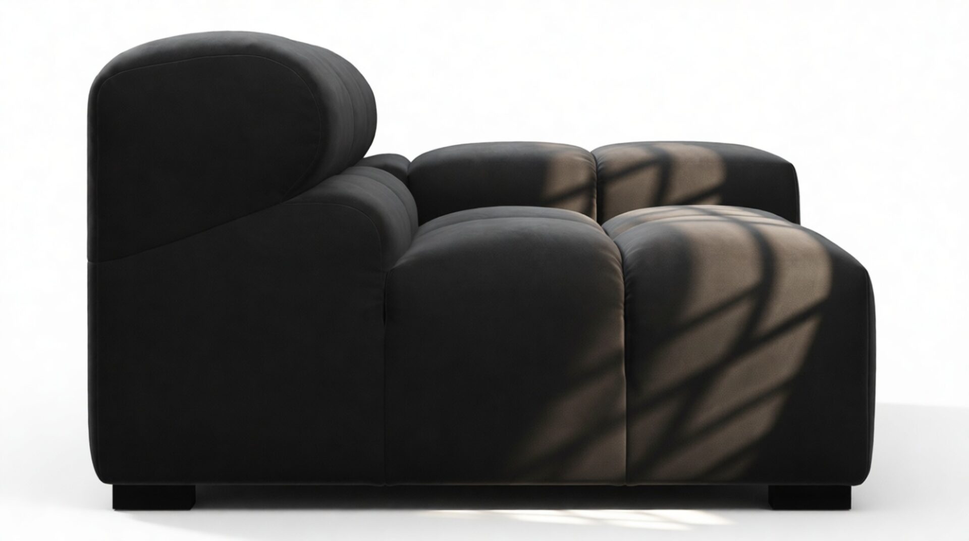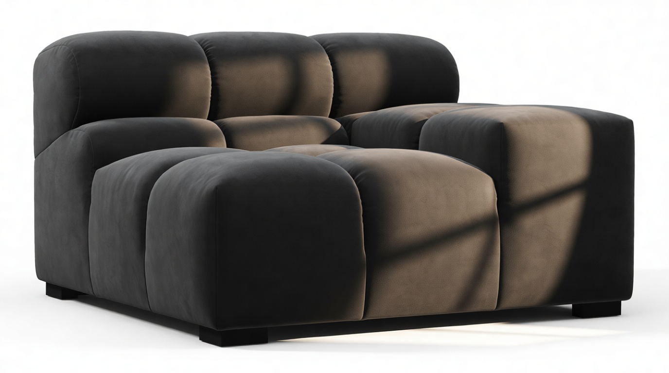 Introducing the Tufty sectional, a modern twist on the classic Chesterfield capitonné design infused with 70s flair. This contemporary masterpiece in Black Velvet offers chic elegance and a playful aesthetic. With its versatile modular design, it seamlessly fits into any setting, from trendy city lofts to spacious entertainment areas, ensuring ultimate comfort and style.