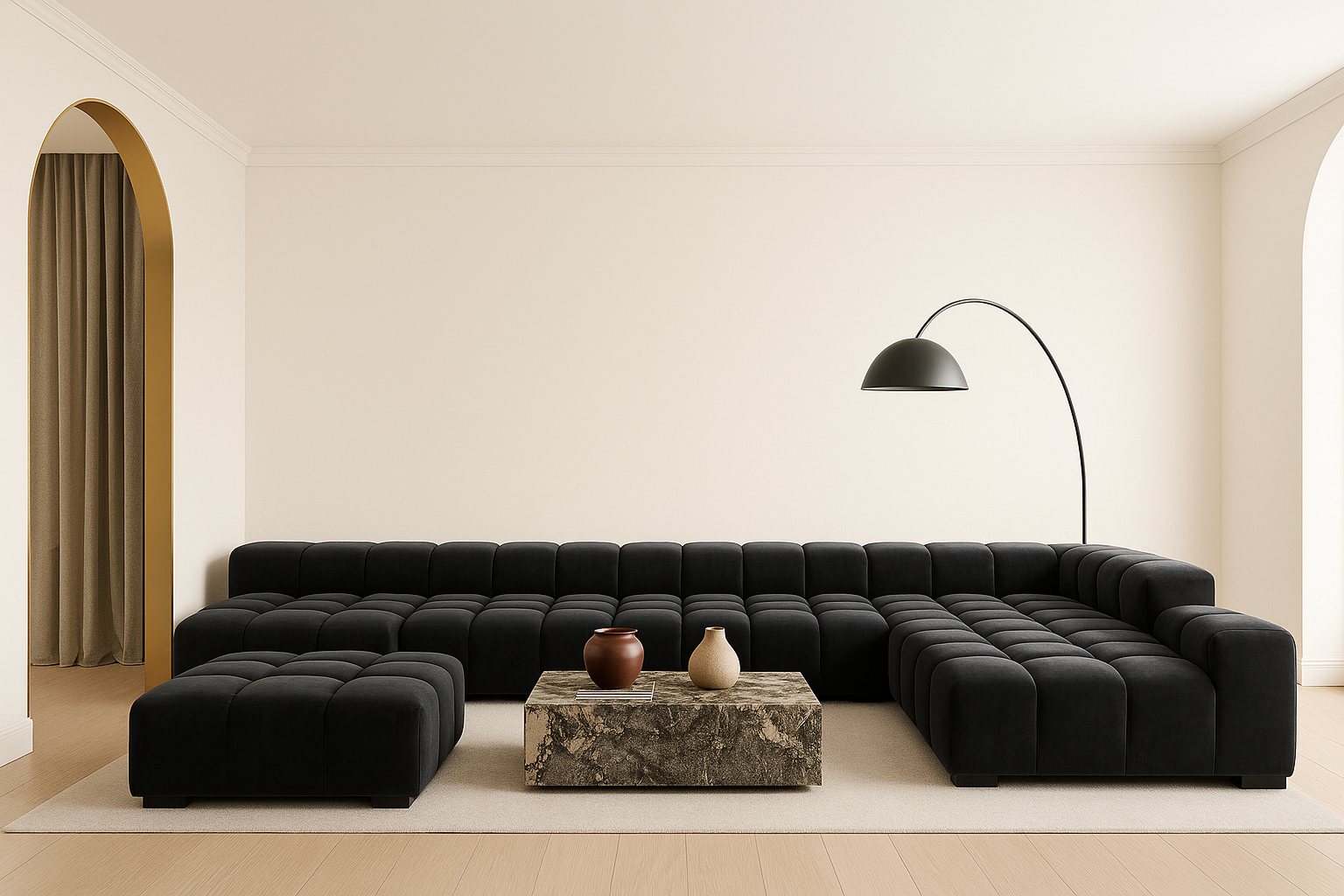 70s Vibes Black Velvet Sectional