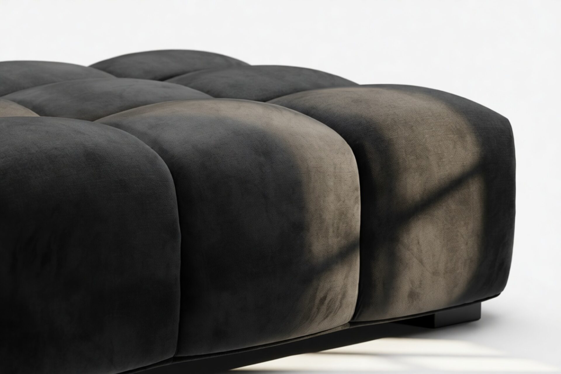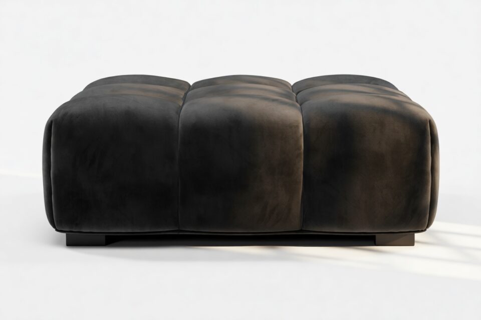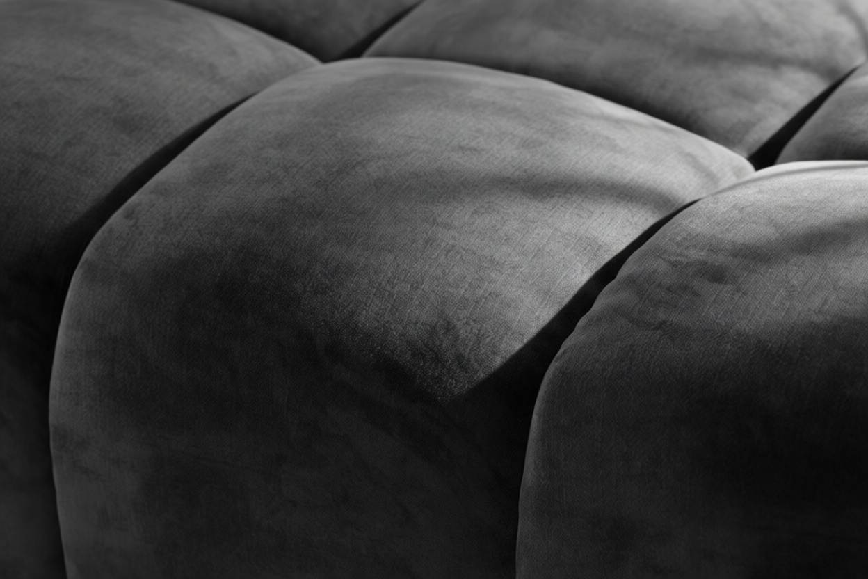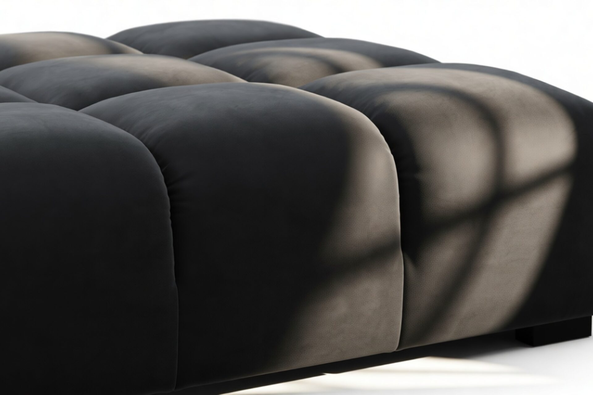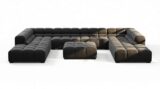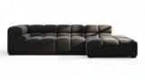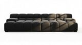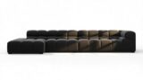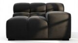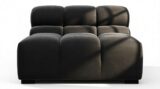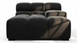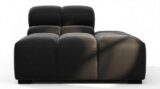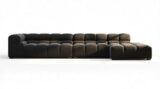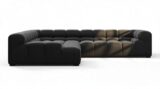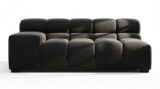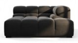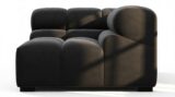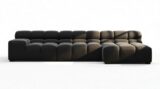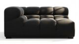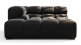 Introducing the Tufty sectional, a fresh take on the classic Chesterfield style with a 70s vibe. This contemporary masterpiece in Black Velvet combines subtle curves and shapes for casual elegance. Versatile and modular, it effortlessly fits various settings, providing ultimate comfort with its ample dimensions and bench-style foundation. A chic and adaptable piece that captivates attention in modern or vintage interiors.