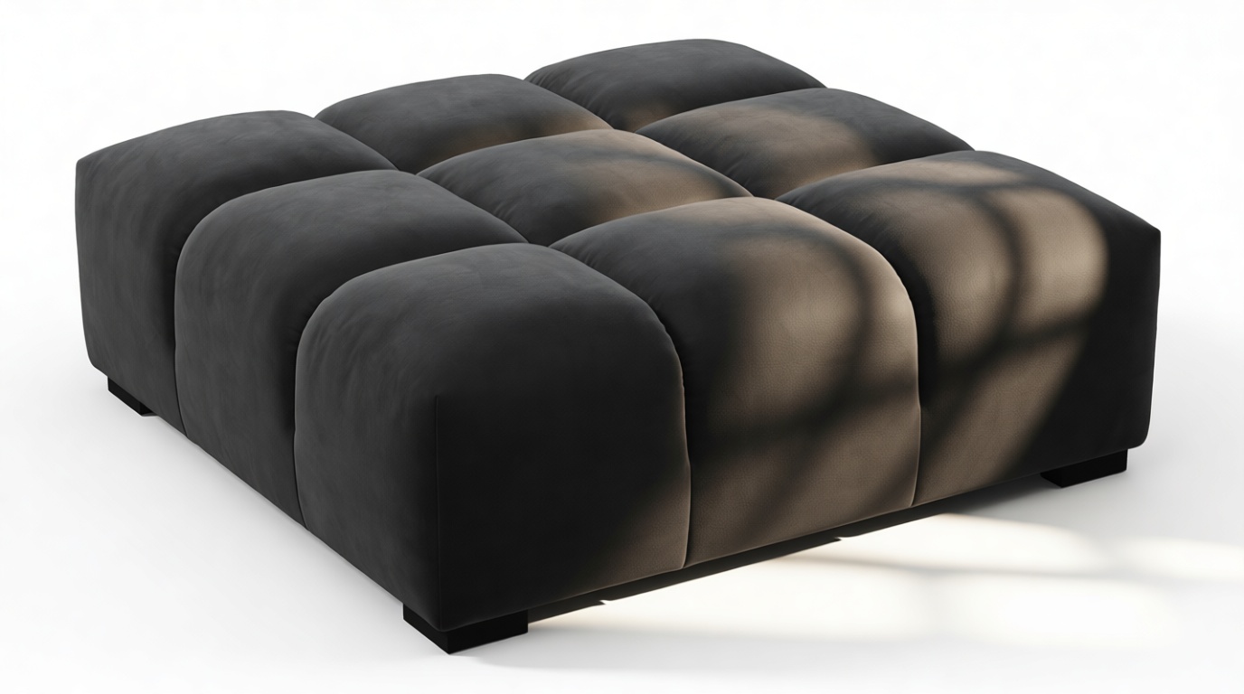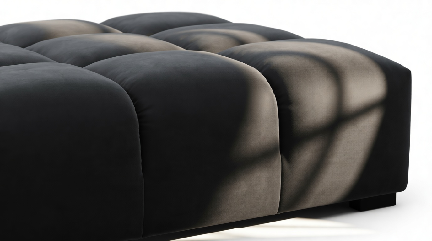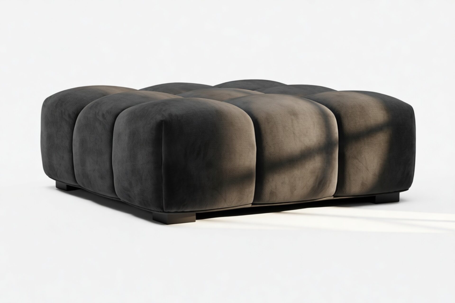Introducing the Tufty sectional, a fresh take on the classic Chesterfield style with a 70s vibe. This contemporary masterpiece in Black Velvet combines subtle curves and shapes for casual elegance. Versatile and modular, it effortlessly fits various settings, providing ultimate comfort with its ample dimensions and bench-style foundation. A chic and adaptable piece that captivates attention in modern or vintage interiors.