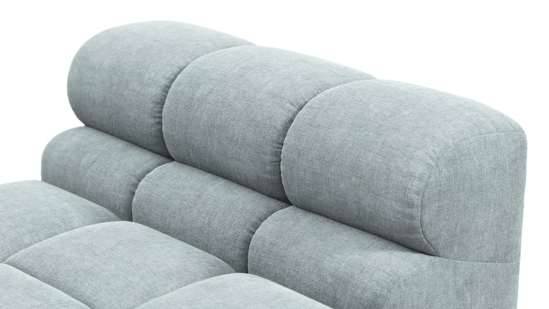 Indulge in the 70s-inspired flair of the Tufty sectional, a fresh twist on the classic Chesterfield capitonné. This contemporary masterpiece, available in Cerulean Chenille, combines versatility with a playful aesthetic. The modular design ensures seamless integration in any space, while the relaxed vibe invites you to lounge in style and comfort.