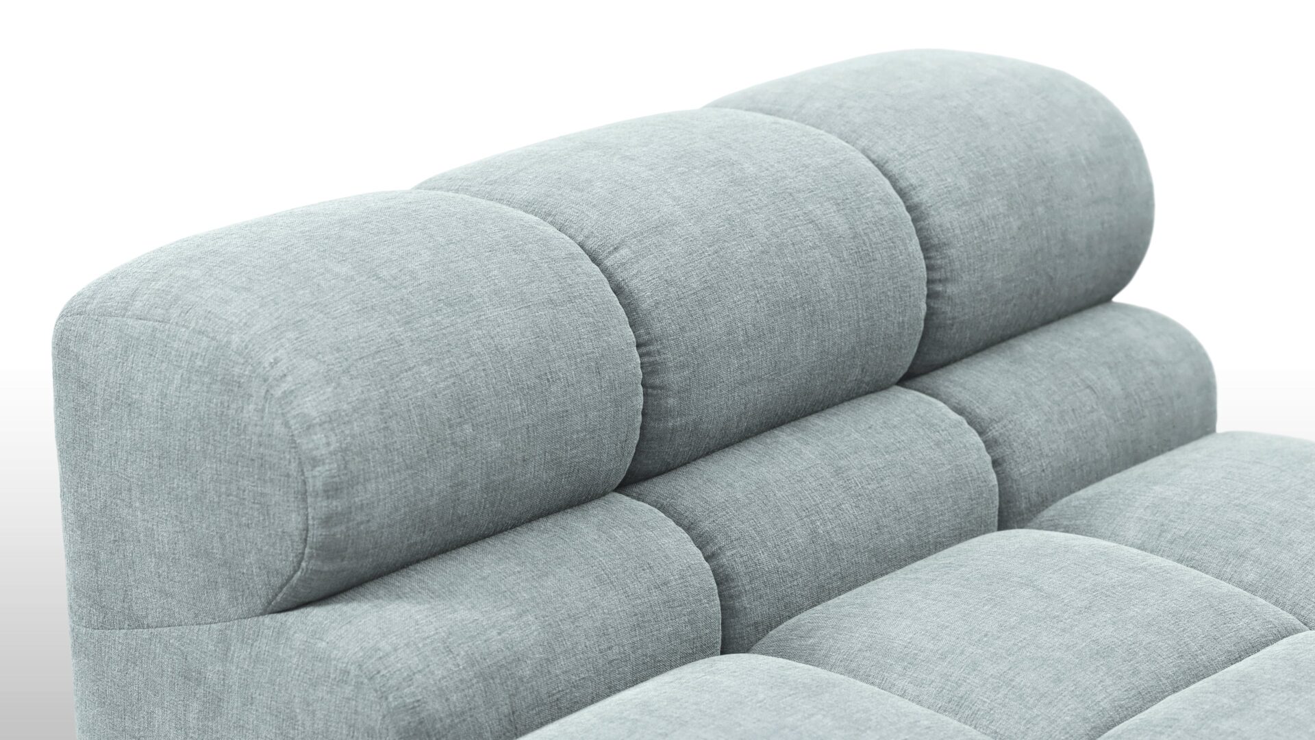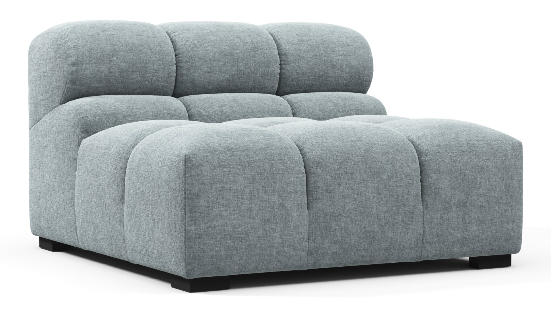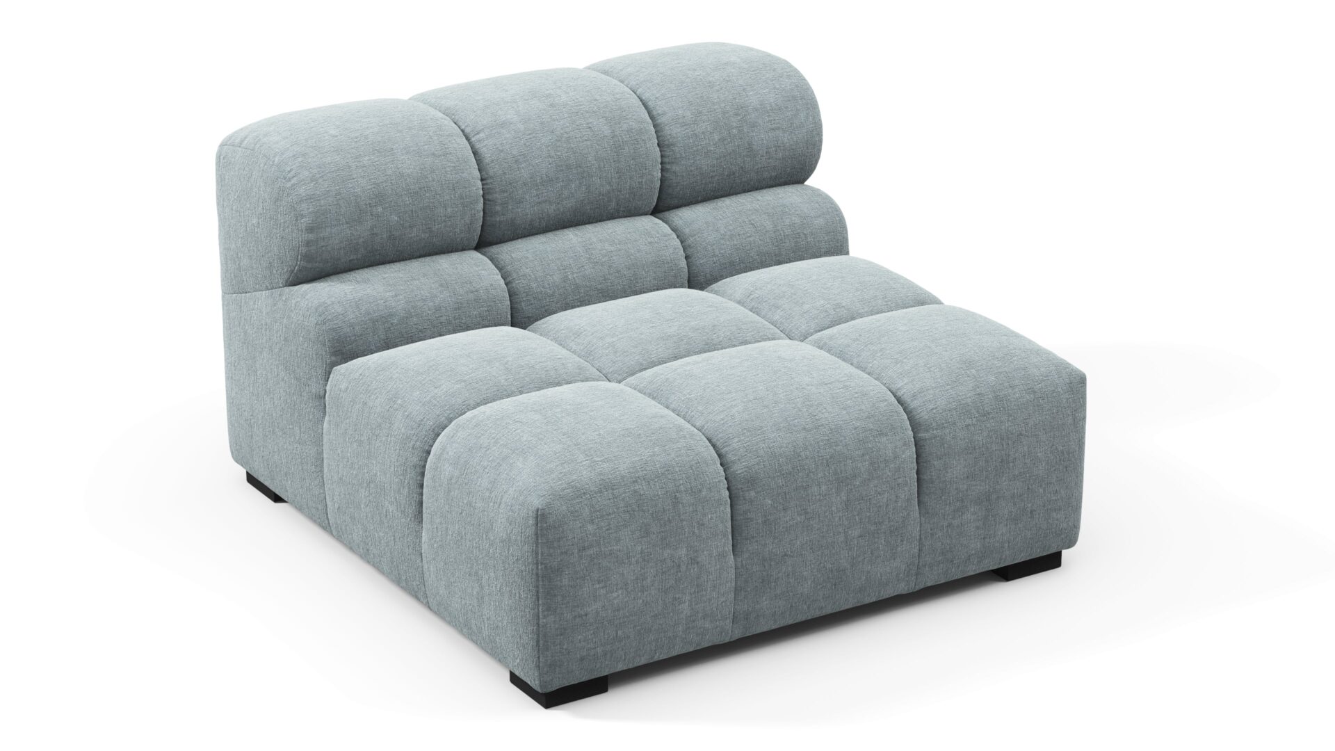 Discover a modern spin on the classic Chesterfield style seen in the Tufty sectional. Infused with the laid-back charm of the 70s, this masterpiece offers a chic and versatile design. The Cerulean Chenille material brings a fresh touch, creating a sophisticated yet playful aesthetic that seamlessly fits into any space. Indulge in ultimate comfort with the Cloud Sectional, designed for luxurious lounging and loved worldwide. The Tufty's modular design, with invisible junctions and spacious dimensions, invites you to relax and unwind in style. Embrace its casual elegance with subtle curves and shapes, making it a standout piece in modern or vintage decor.