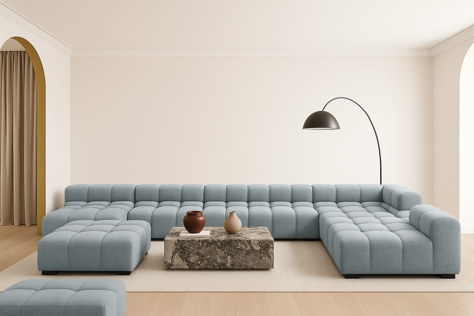 Cerulean Chenille Tufty Sectional: Modern & Versatile