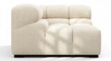 Experience a trendy twist on the classic Chesterfield style with the Tufty sectional, inspired by the carefree vibes of the 70s. This contemporary gem boasts a modular design in Eggshell Boucle, exuding a chic and playful aesthetic that seamlessly complements any setting. With its subtle curves and generous dimensions, Tufty invites you to unwind and cozy up in style, making it a versatile must-have for both modern and vintage interiors.