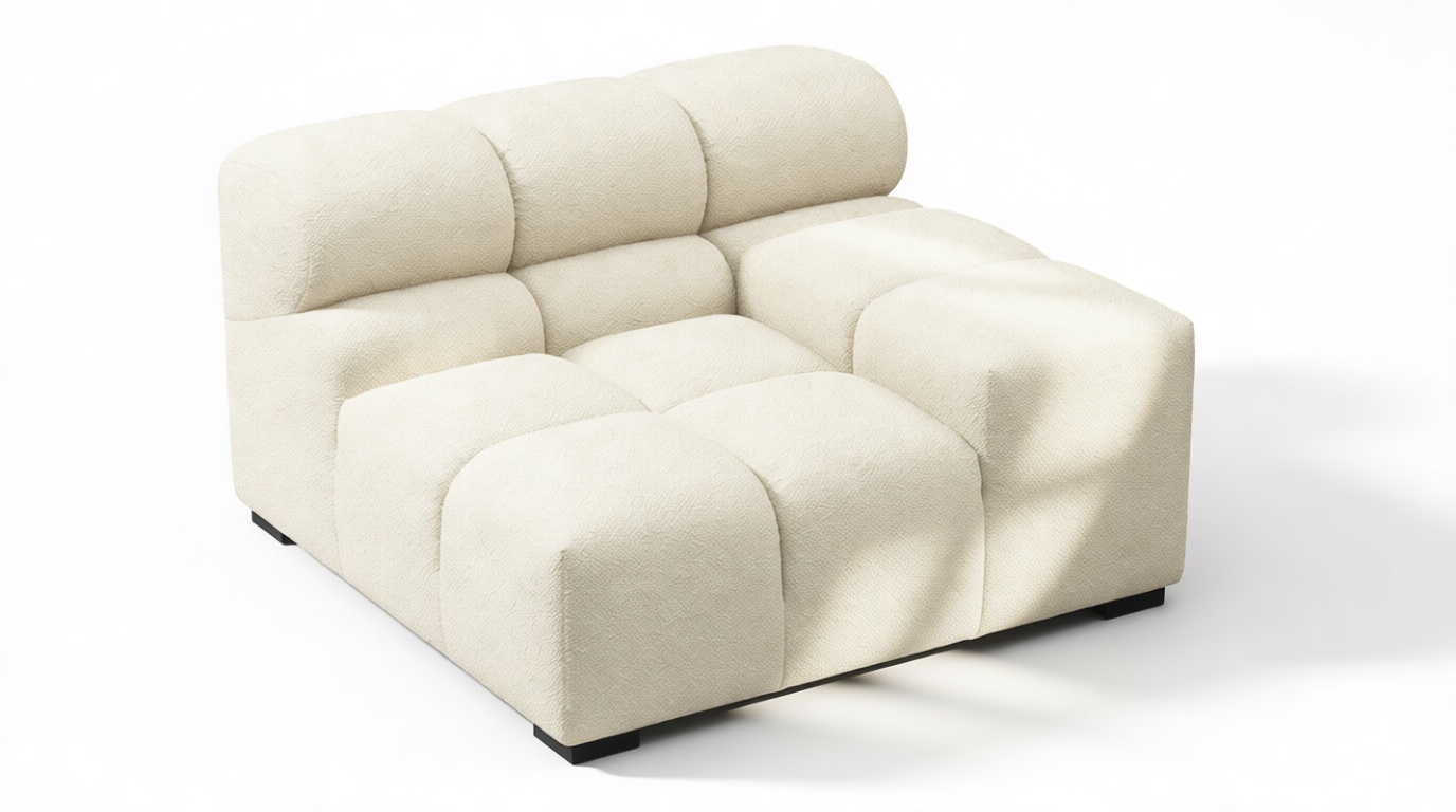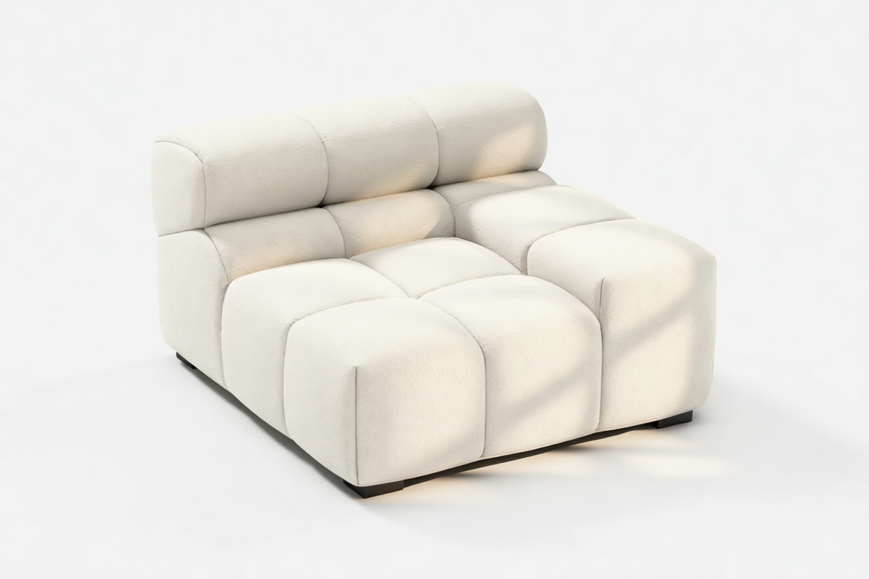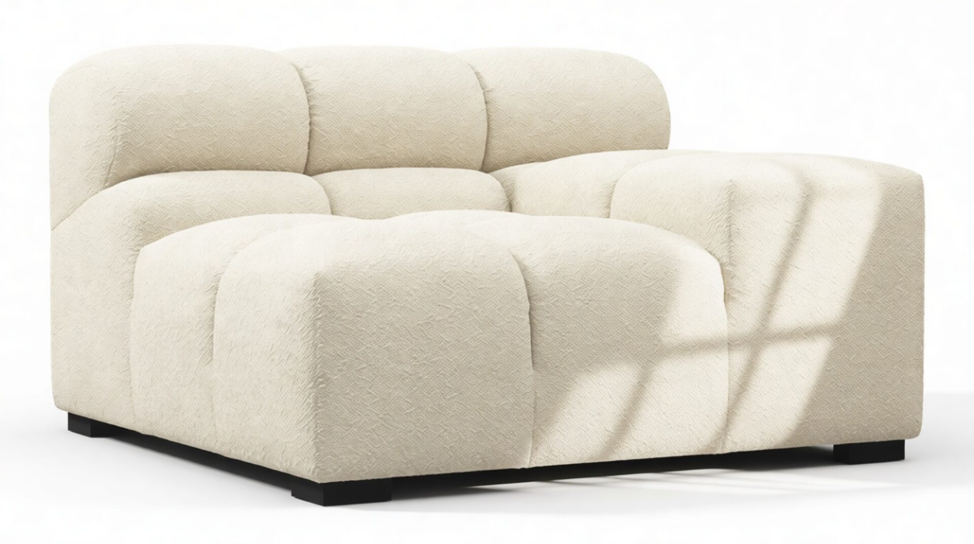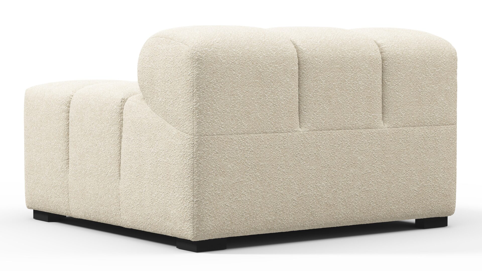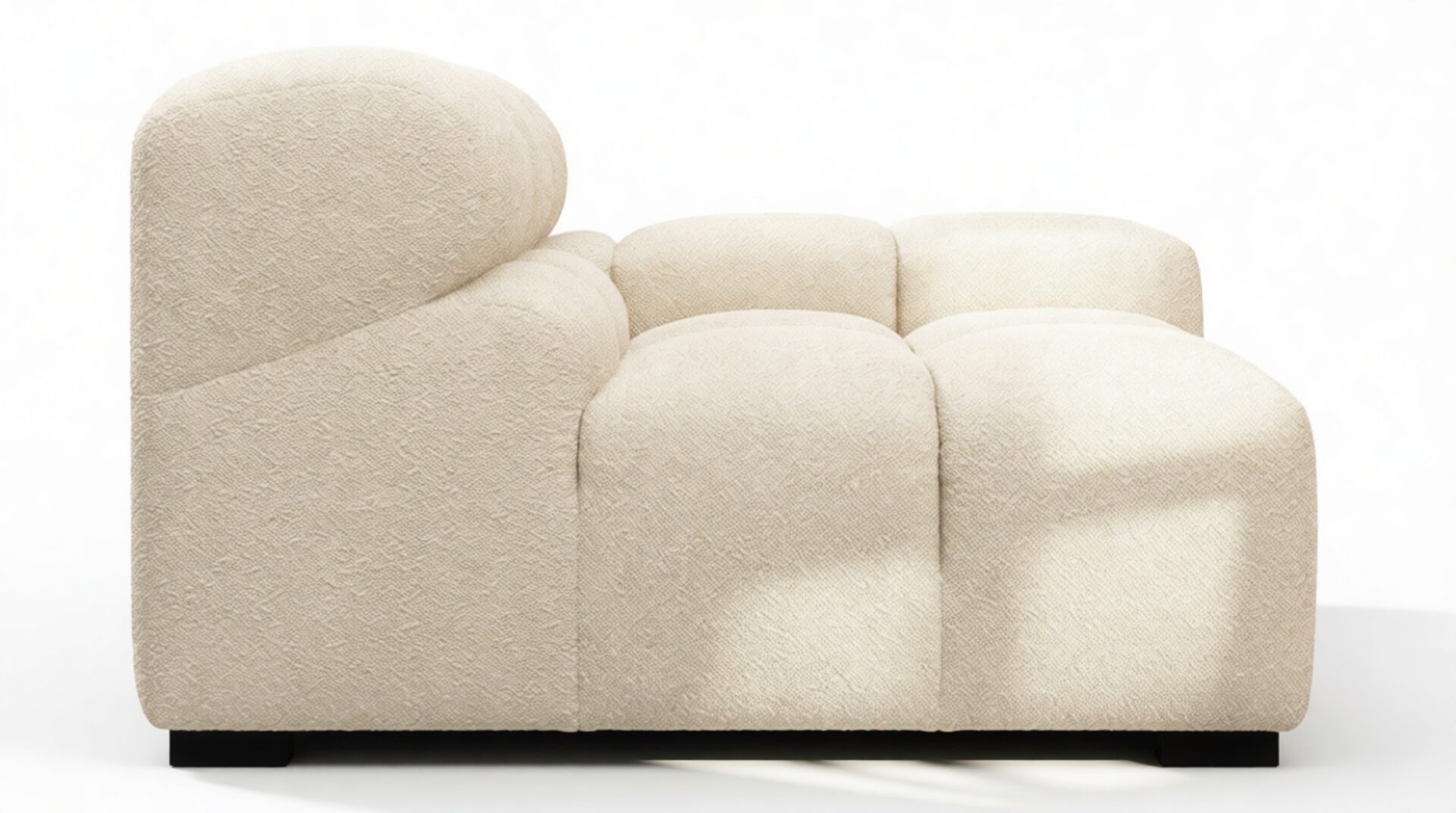 Introducing a modern twist on the classic Chesterfield style, the Tufty sectional exudes relaxed 70s vibes with its Eggshell Boucle material. This versatile piece embraces a simplistic modular design, effortlessly fitting into any space from city lofts to entertainment areas. With subtle curves and ample dimensions, it offers ultimate comfort while capturing attention with its casual yet elegant appeal, making it a chic addition to both modern and vintage interiors.