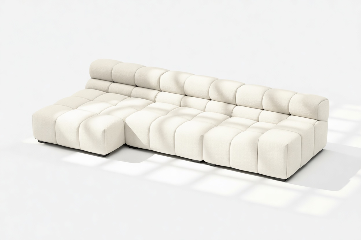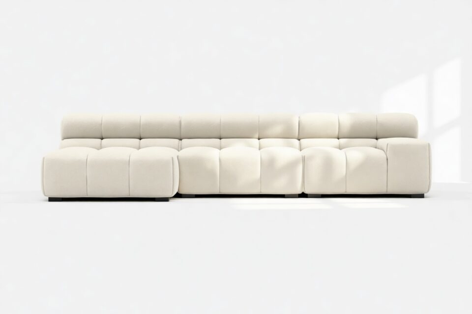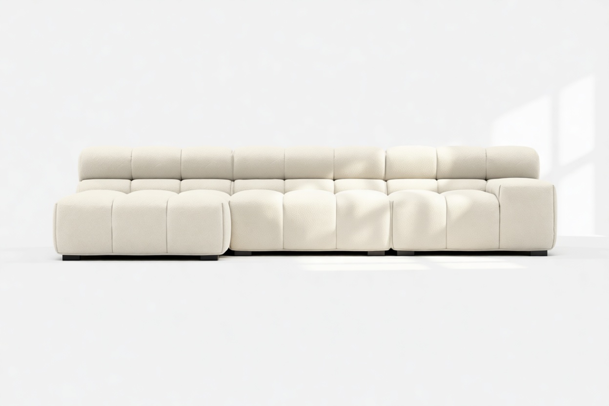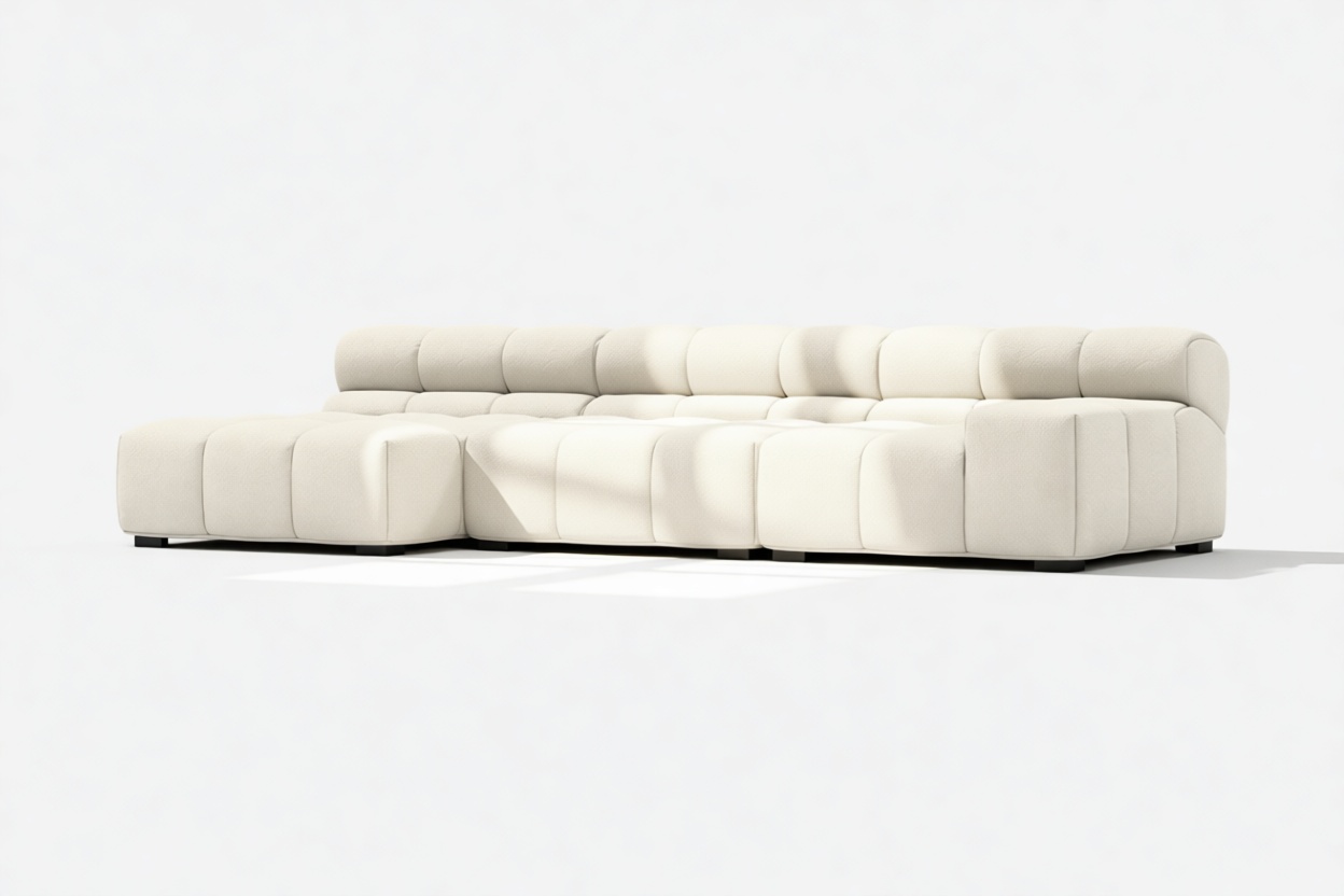 Eggshell Boucle Tufty Sectional: Modern Chic