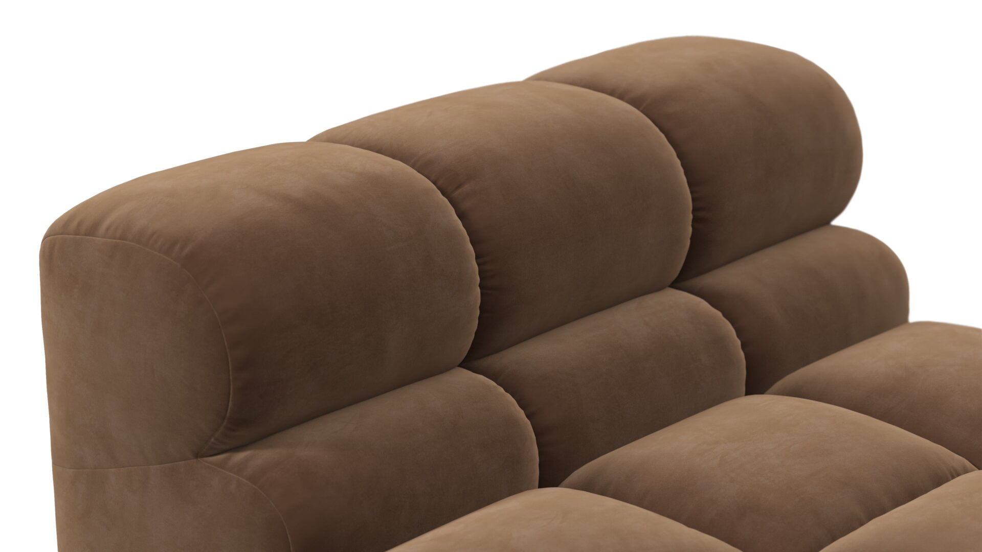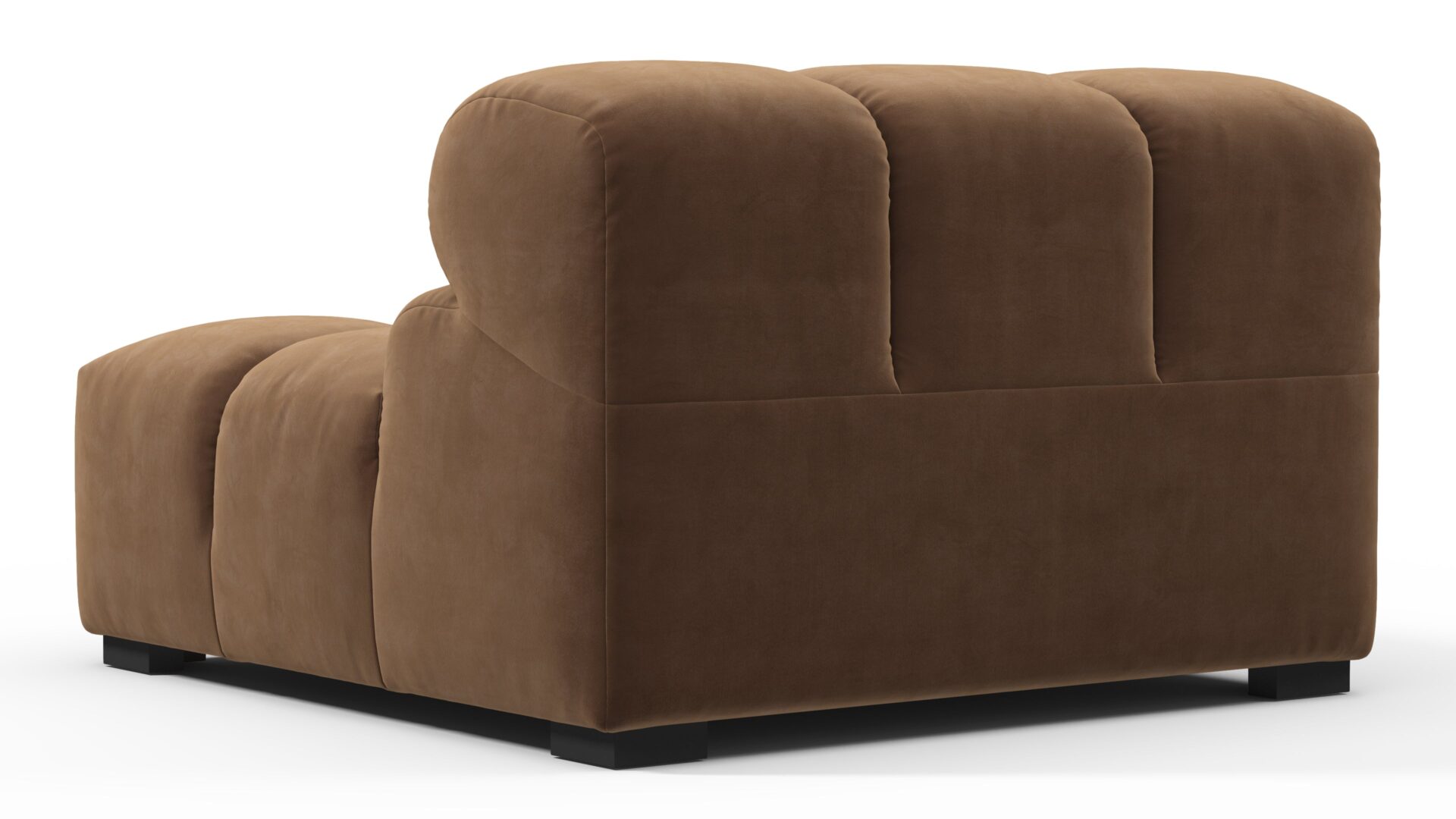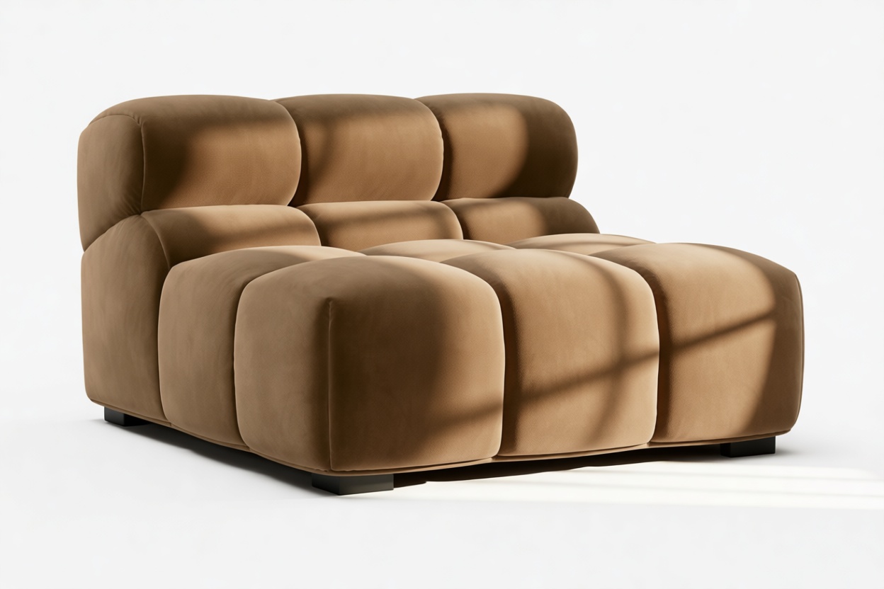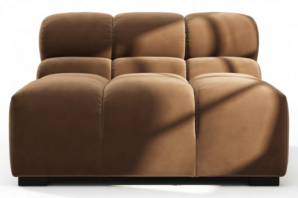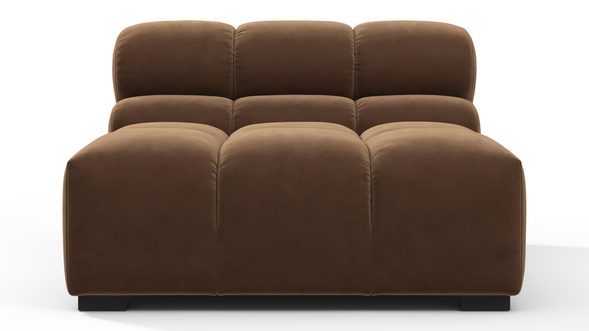 Introducing the Tufty sectional, a modern twist on the classic Chesterfield capitonné infused with relaxed 70s vibes. Featuring a chic Mocha Velvet material, this versatile masterpiece boasts a modular design for easy adaptation to any space. With subtle curves and ample dimensions, it exudes casual elegance and ultimate comfort, perfect for modern or vintage interiors.
