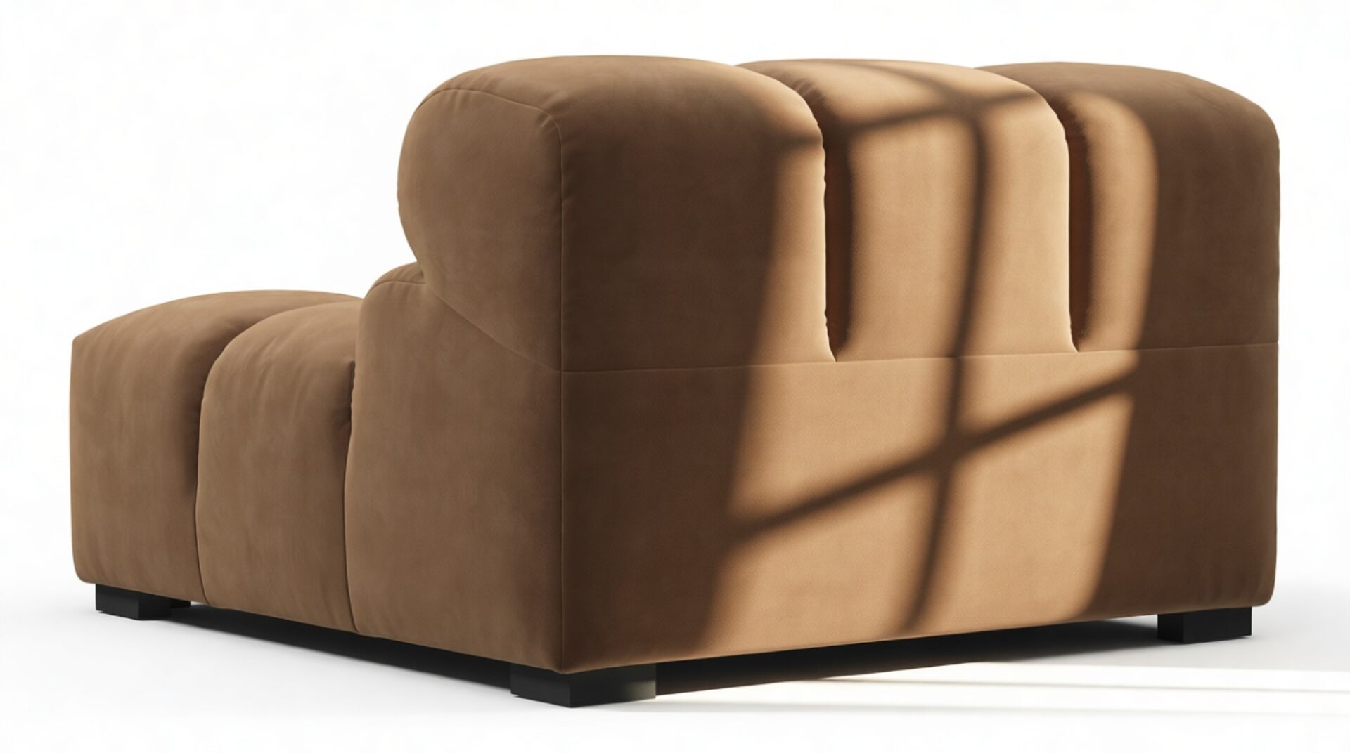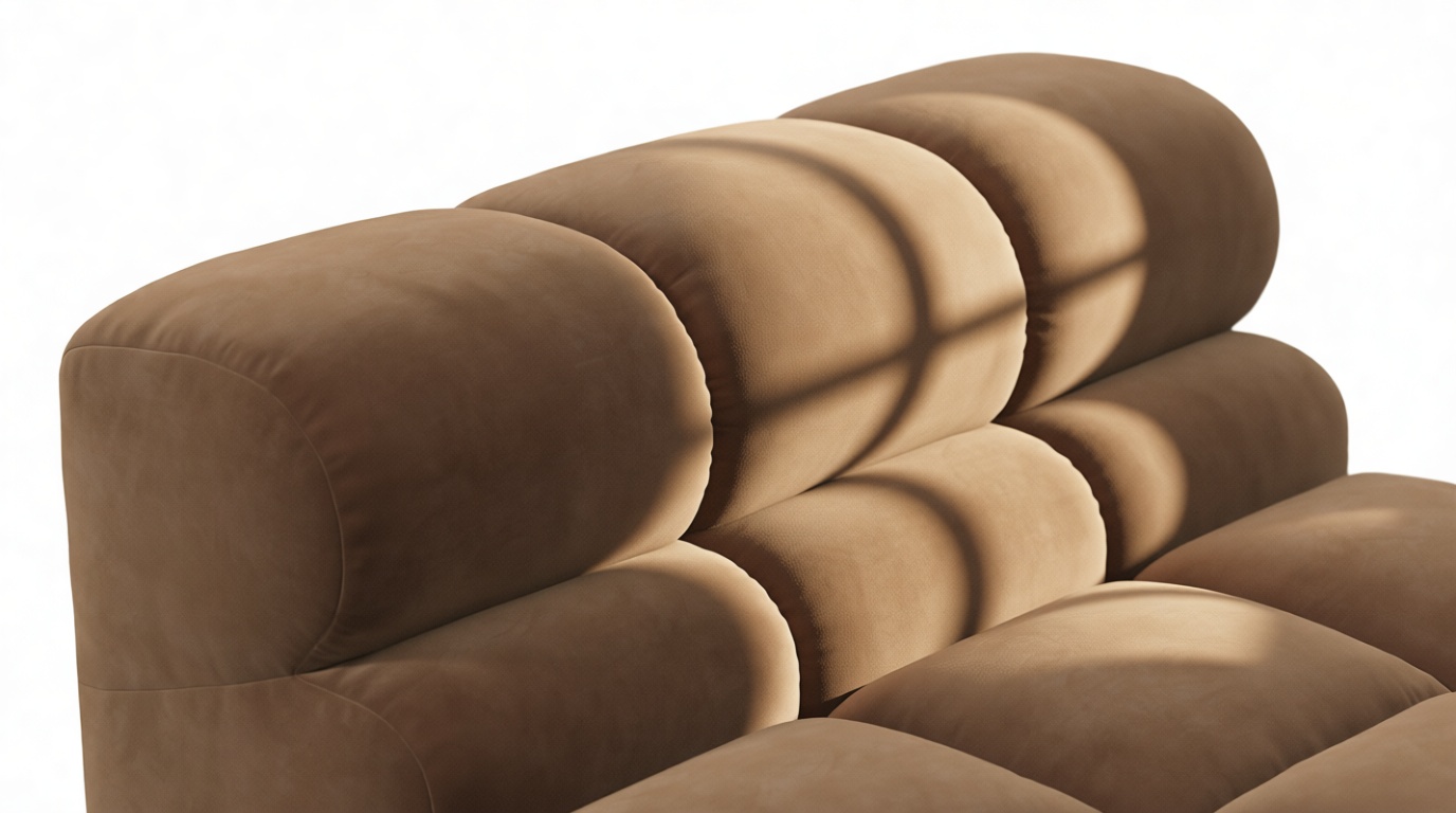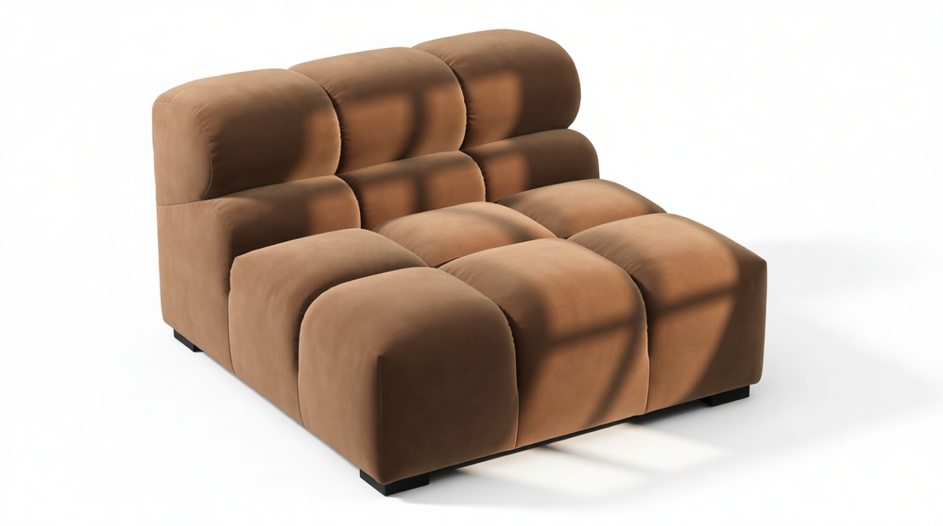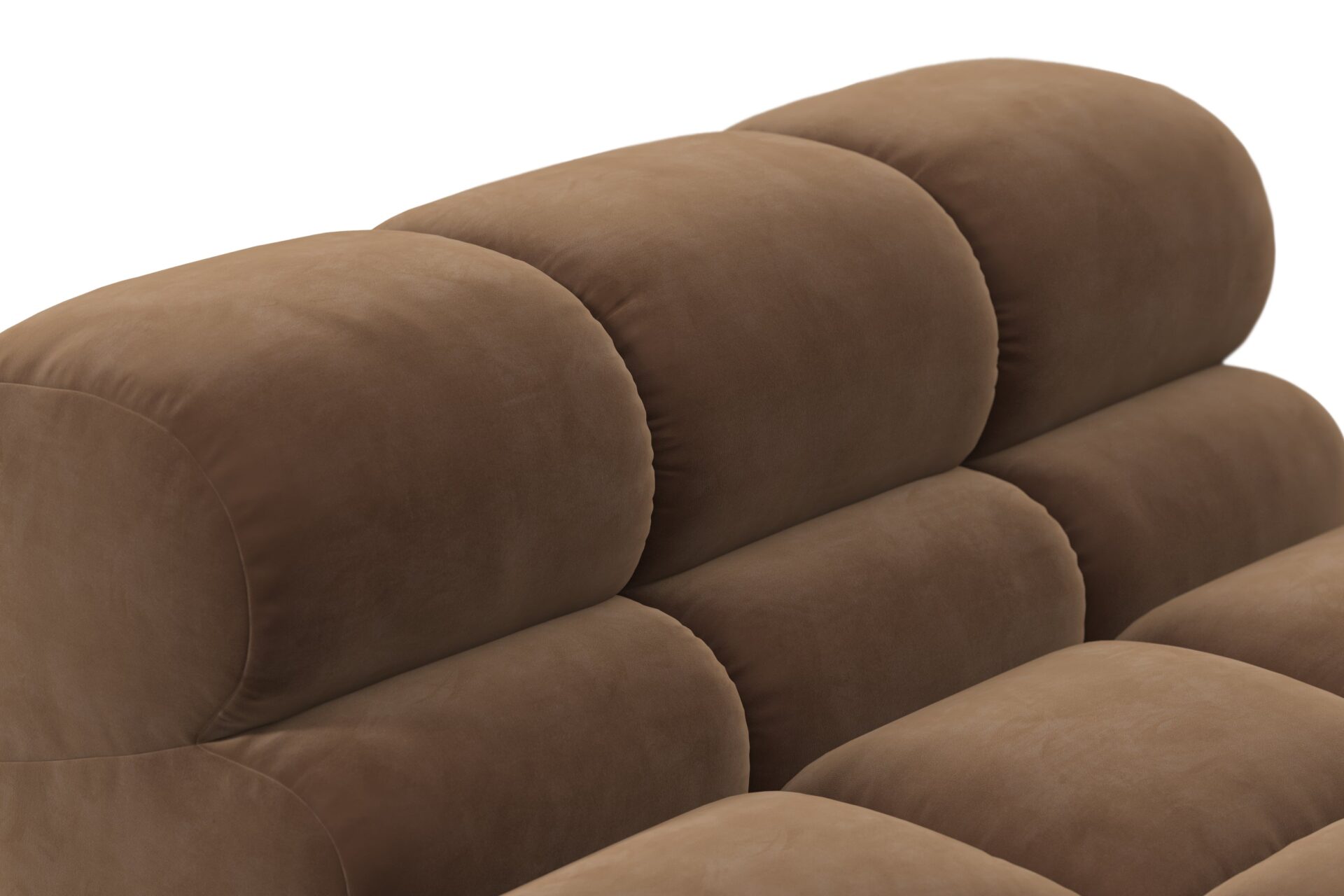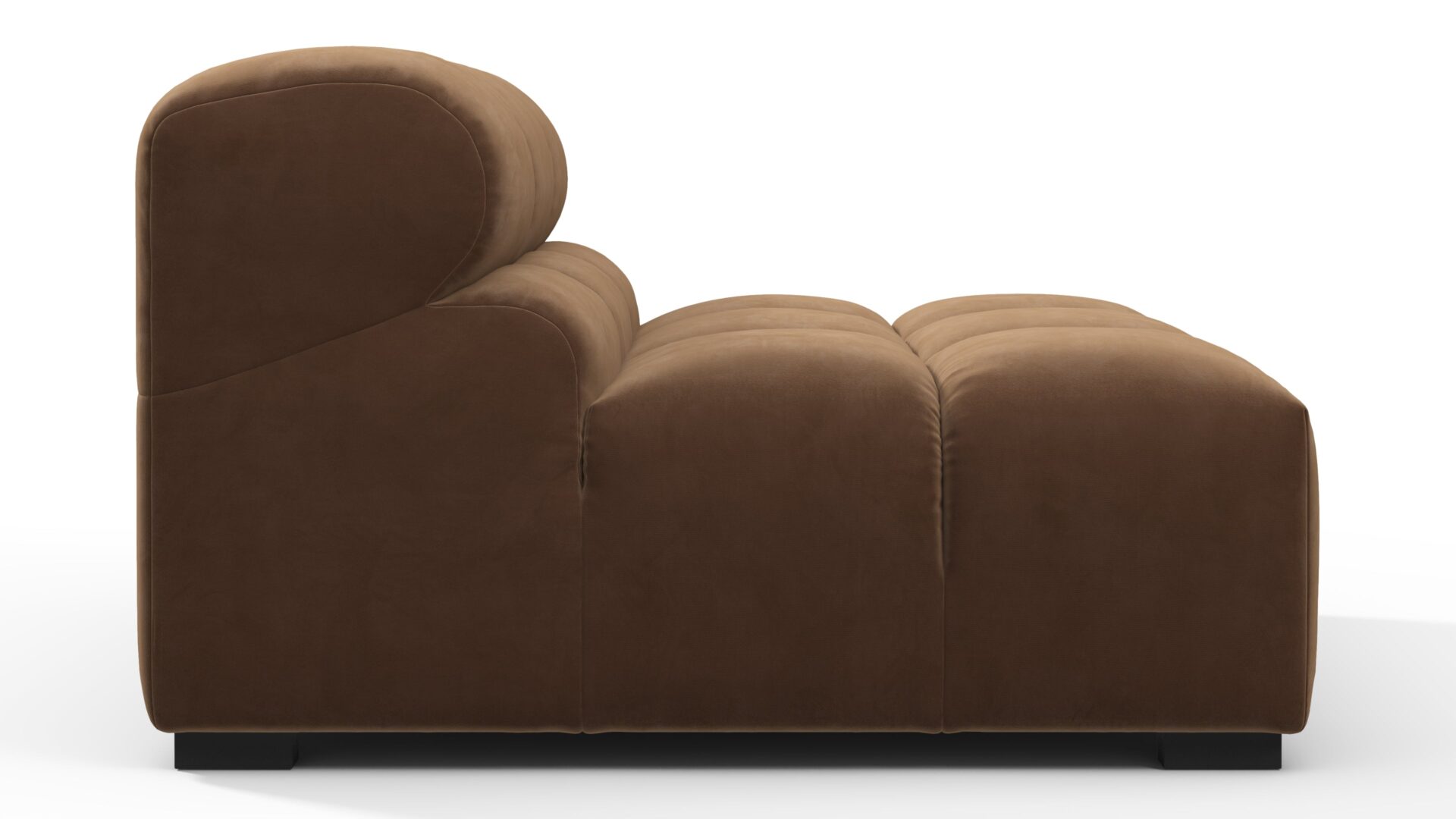 Introducing the Tufty sectional, a modern twist on the classic Chesterfield capitonné infused with relaxed 70s vibes. Featuring a chic Mocha Velvet material, this versatile masterpiece boasts a modular design for easy adaptation to any space. With subtle curves and ample dimensions, it exudes casual elegance and ultimate comfort, perfect for modern or vintage interiors.