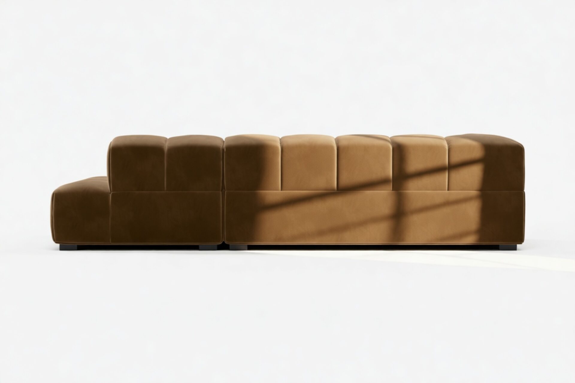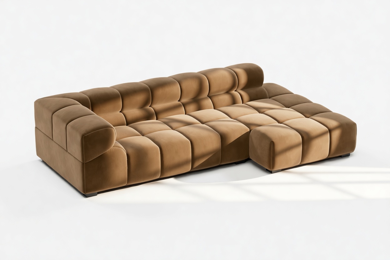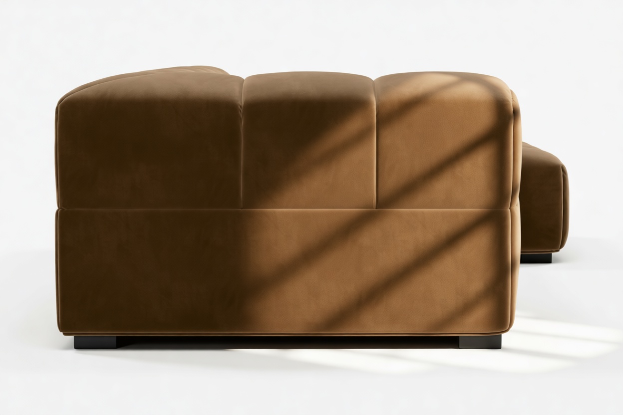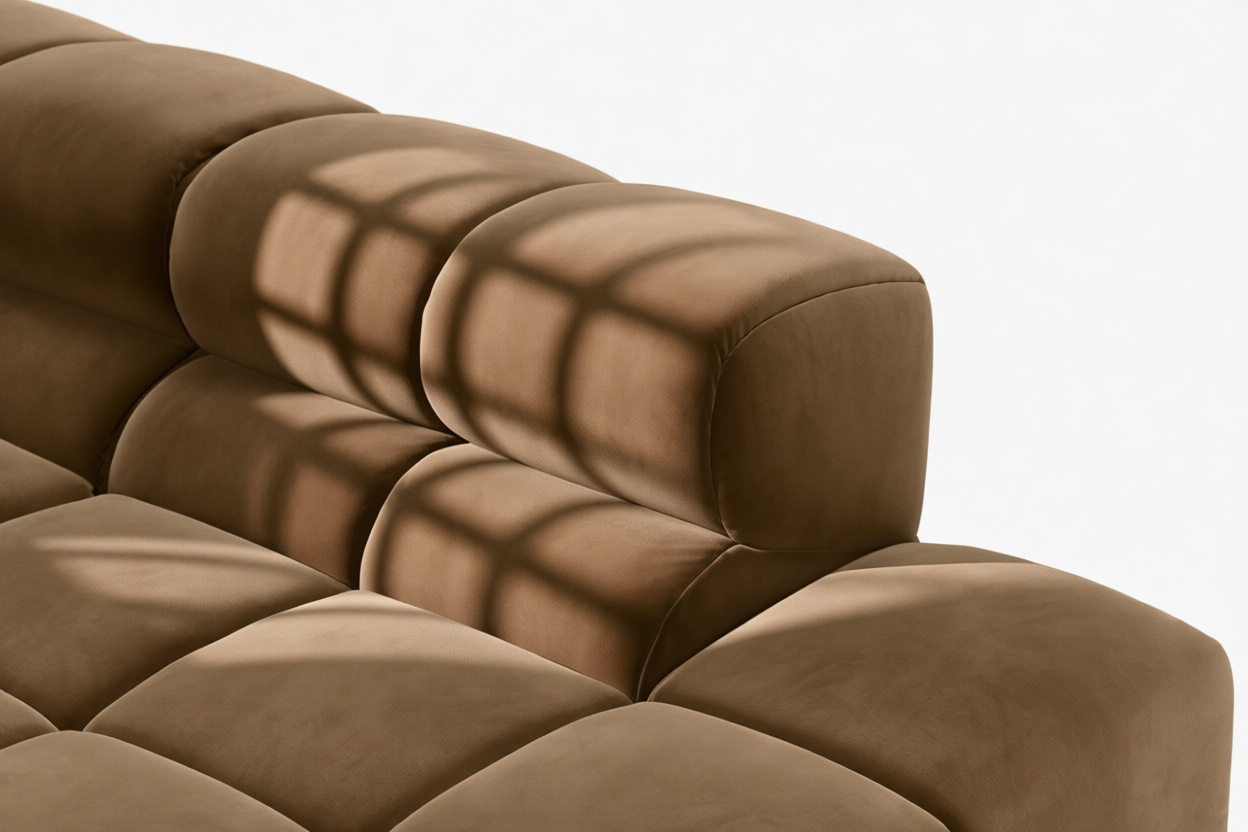 Step back in time to the relaxed vibes of the 70s with our Tufty sectional, a fresh twist on the classic Chesterfield capitonné. Upholstered in luxurious Mocha Velvet, this versatile contemporary masterpiece combines a chic outline with ultimate comfort. Subtle curves and modular design effortlessly blend into any space, from cozy lofts to spacious areas, exuding a modern appeal that captures attention and adds warmth to your décor.