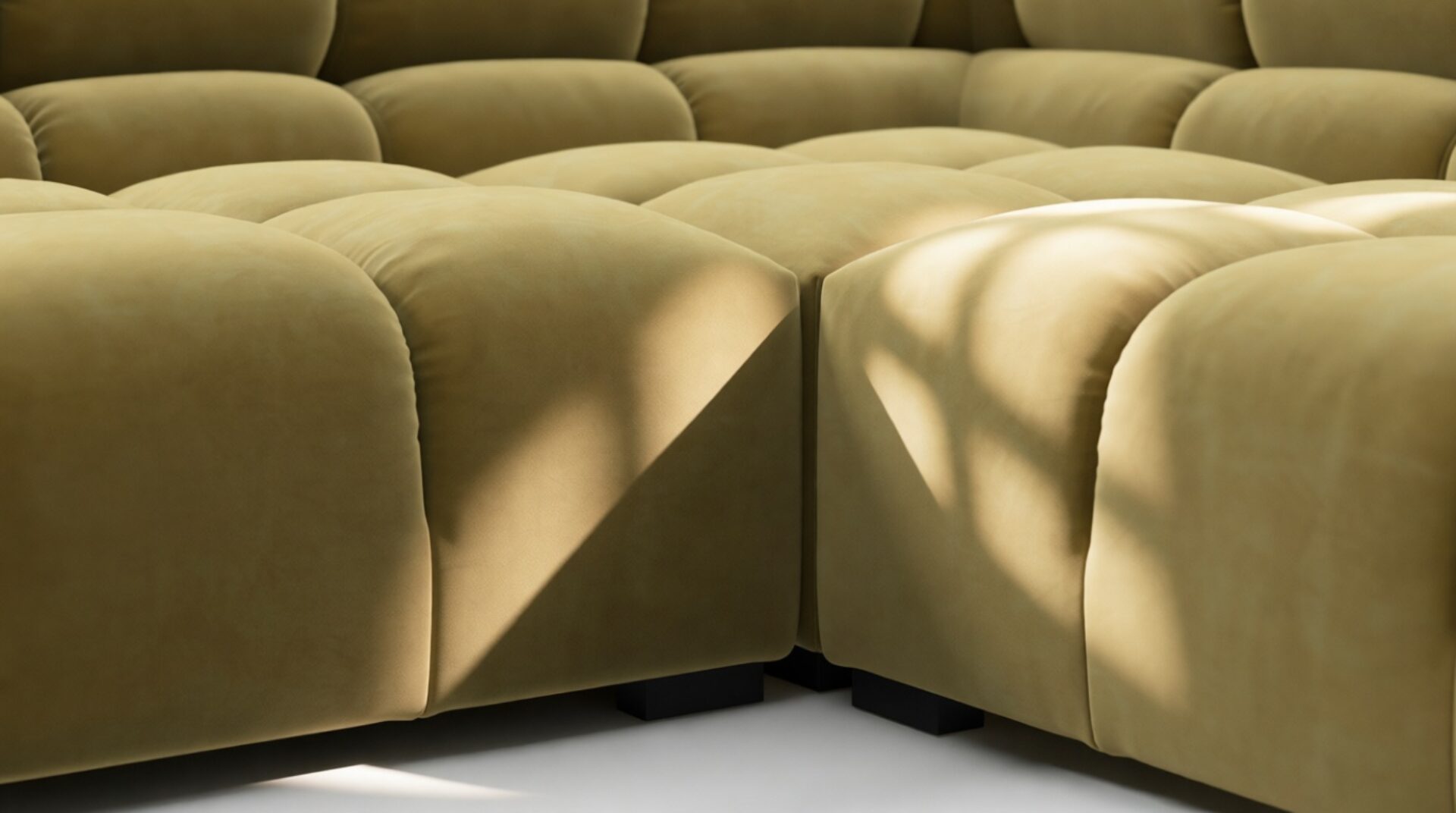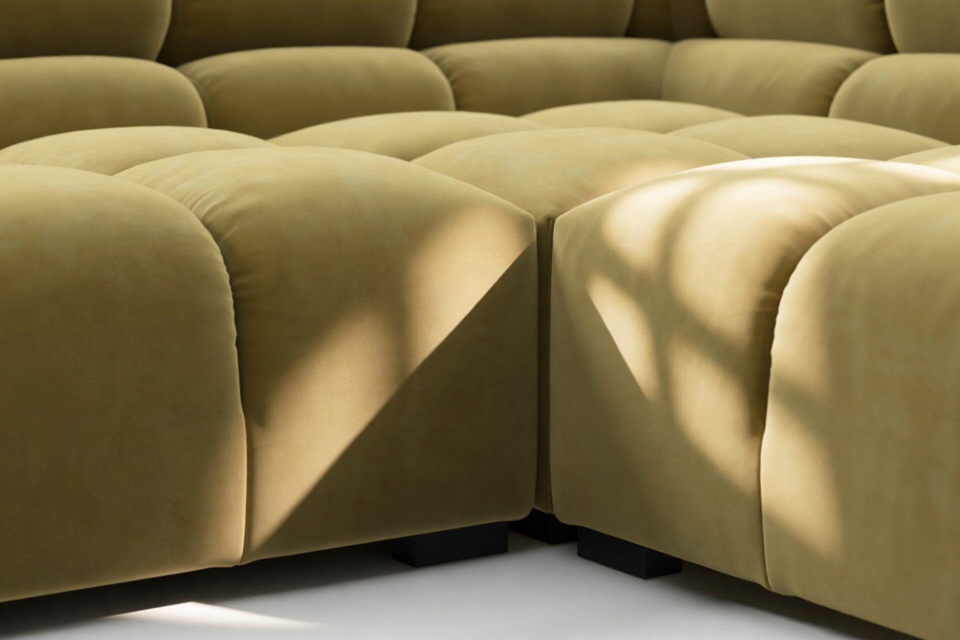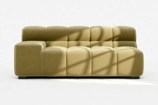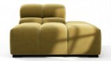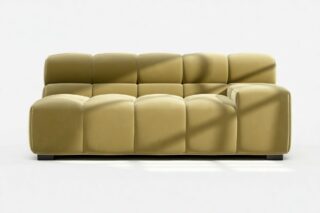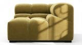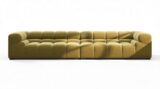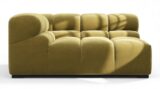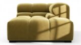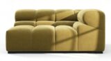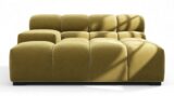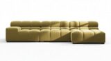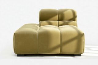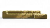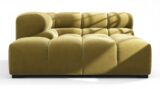 Immerse yourself in a new interpretation of the classic Chesterfield style with the Tufty sectional, highlighting retro 70s vibes in Olive Gold Velvet. This contemporary marvel boasts modular flexibility and a playful aesthetic, blending casual elegance with ample comfort. With its chic outline and versatile design, Tufty seamlessly complements any modern or vintage setting, providing a cozy retreat for lounging and relaxation.