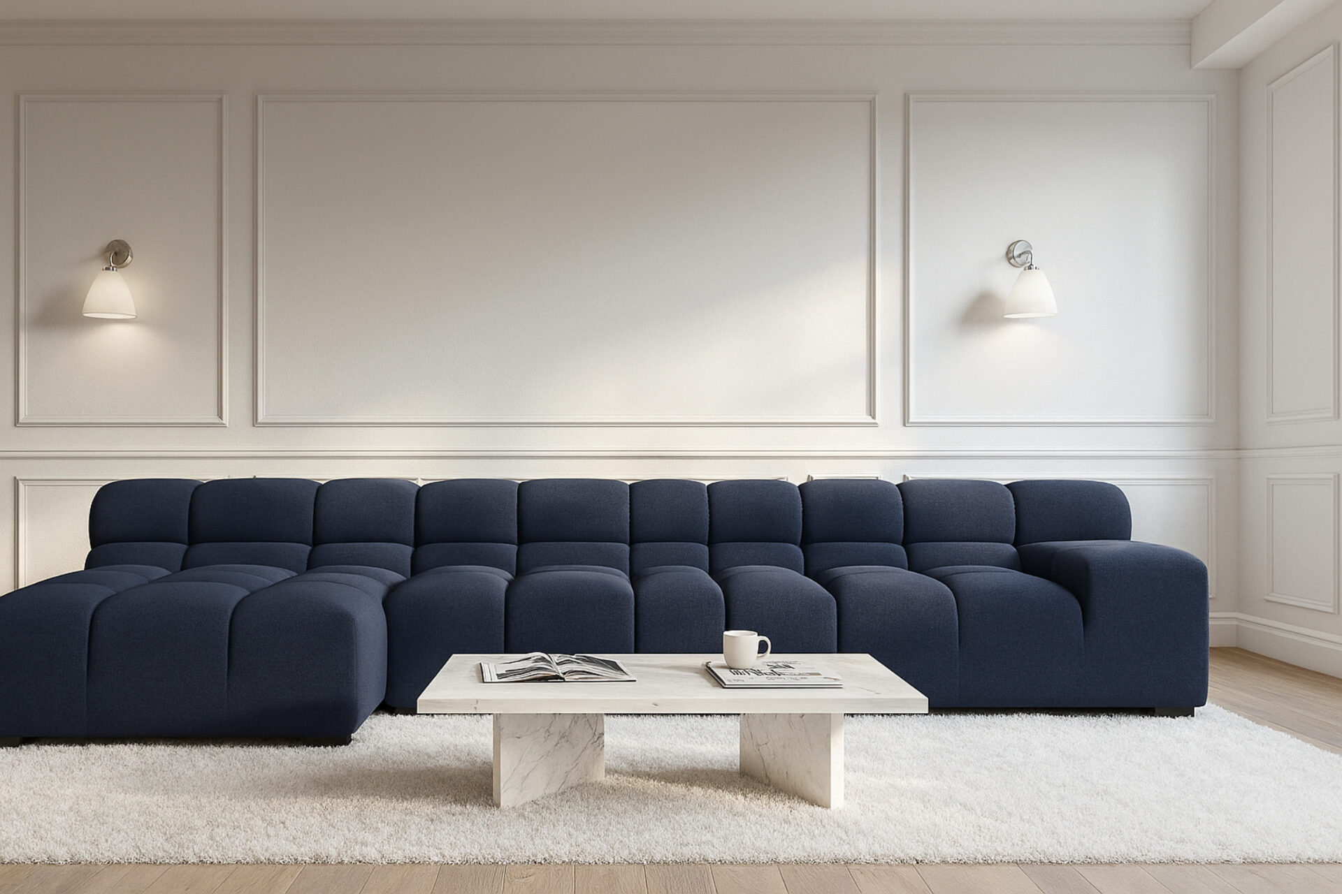 Experience a chic reinterpretation of the timeless Chesterfield aesthetic with a 70s twist in our Tufty sectional. Crafted to exude casual elegance, this masterful modular furniture piece in Royal Blue Wool boasts a striking yet playful appearance, designed for modern versatility. Its subtle curves and shapes ensure it seamlessly fits into any space, inviting you to indulge in ultimate comfort with an updated retro charm.