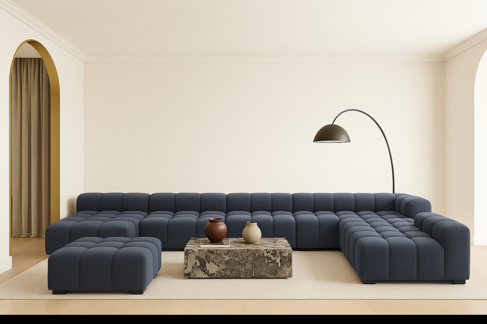 Reimagine the timeless Chesterfield capitonné aesthetic with a laid-back 70s twist with the Tufty sectional. This modern masterpiece combines a striking yet playful appearance with contemporary appeal. Designed around a simplistic modular concept for maximum versatility, the Tufty is a democratic piece that seamlessly adapts to various spaces, from small city lofts to grand entertaining areas.