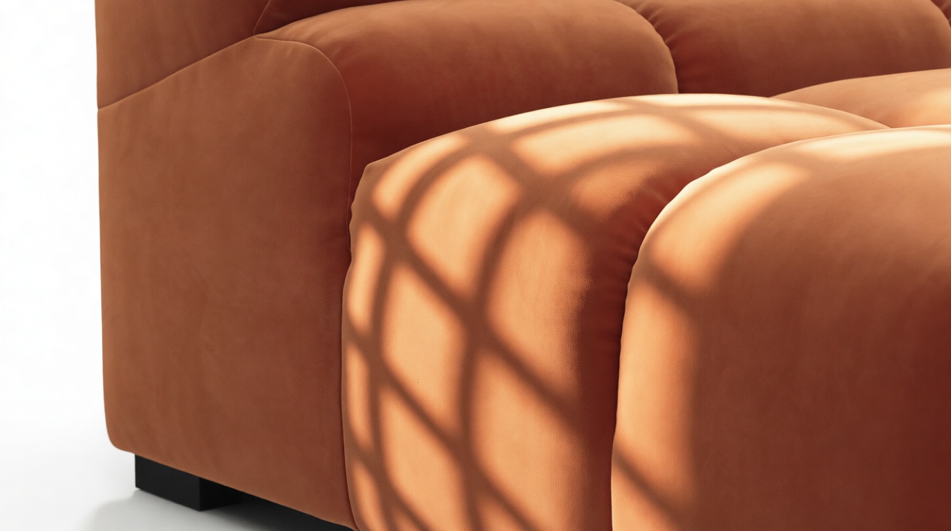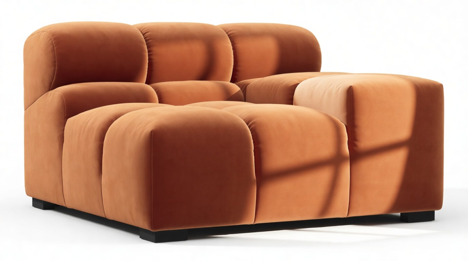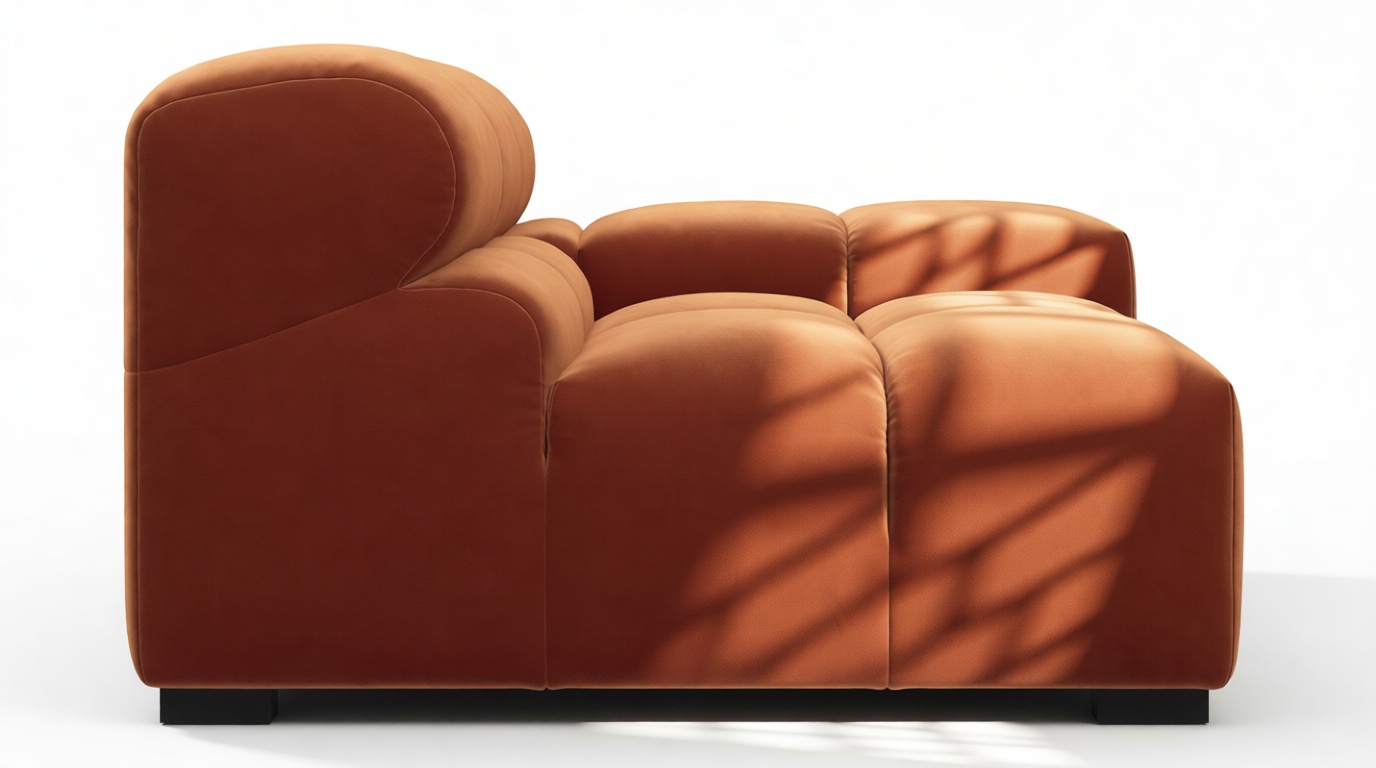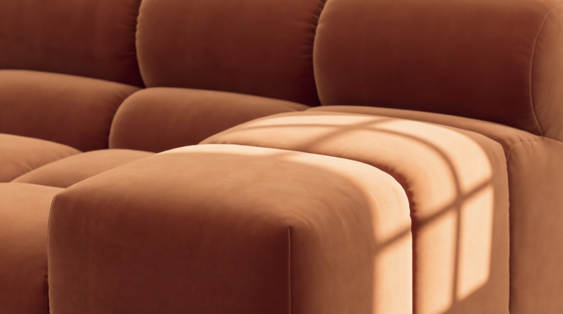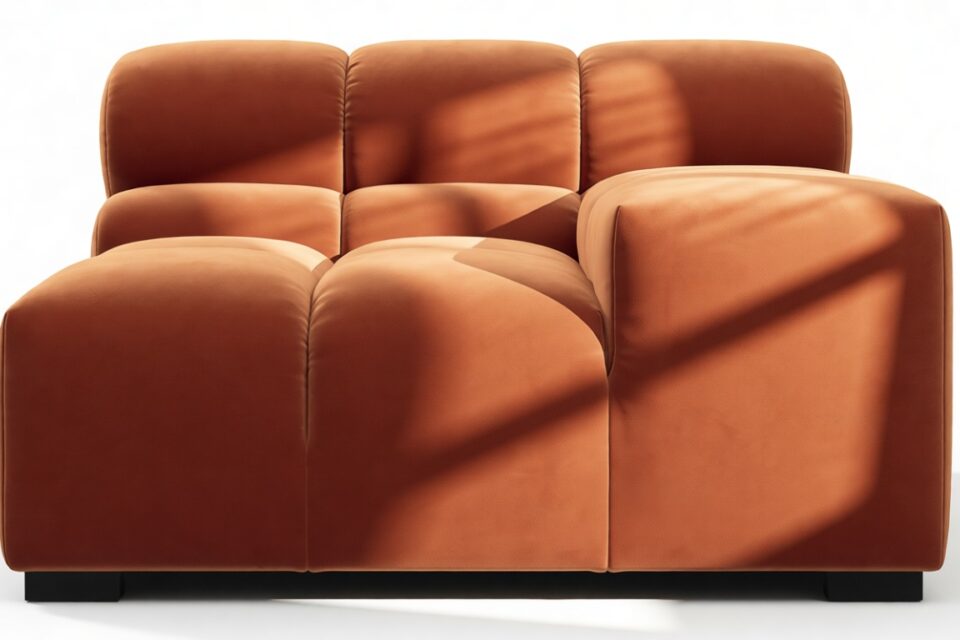 Introducing the fresh and stylish Tufty sectional, a modern interpretation of a classic Chesterfield capitonné with a 70s vibe. Featuring a chic Spice Velvet option, this versatile piece boasts subtle curves and a playful aesthetic, perfect for both modern city lofts and spacious entertainment areas. Enjoy ultimate comfort with its relaxed and laid-back design, providing ample space to unwind and relax.