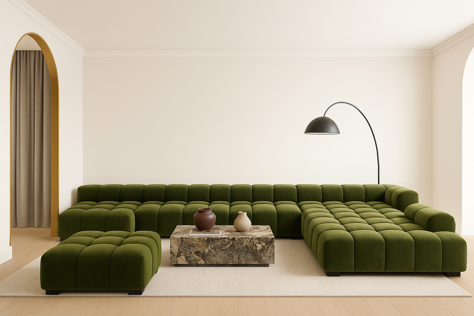 70s-Inspired Tufty Sectional in Thyme Luxe
