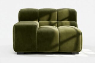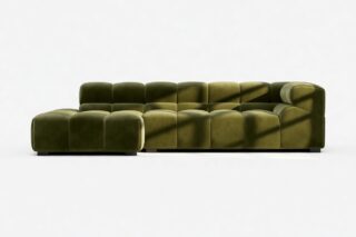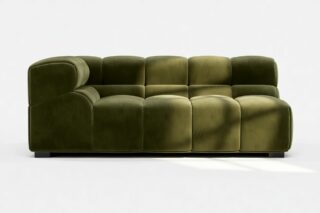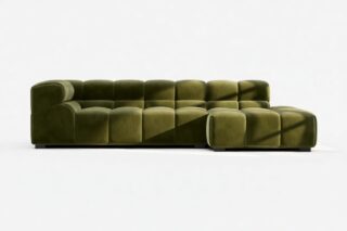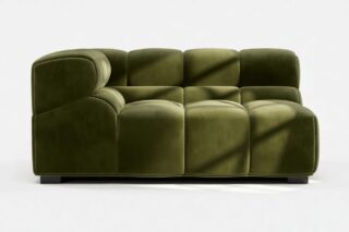 Indulge in a modern twist on the classic Chesterfield design with the Tufty sectional, showcasing 70s-inspired Thyme Luxe Velvet. This versatile masterpiece boasts a playful aesthetic and modular structure for seamless adaptability. Its subtle curves and timeless appeal make it a chic addition to any space, offering ultimate comfort and style for both contemporary and vintage settings.