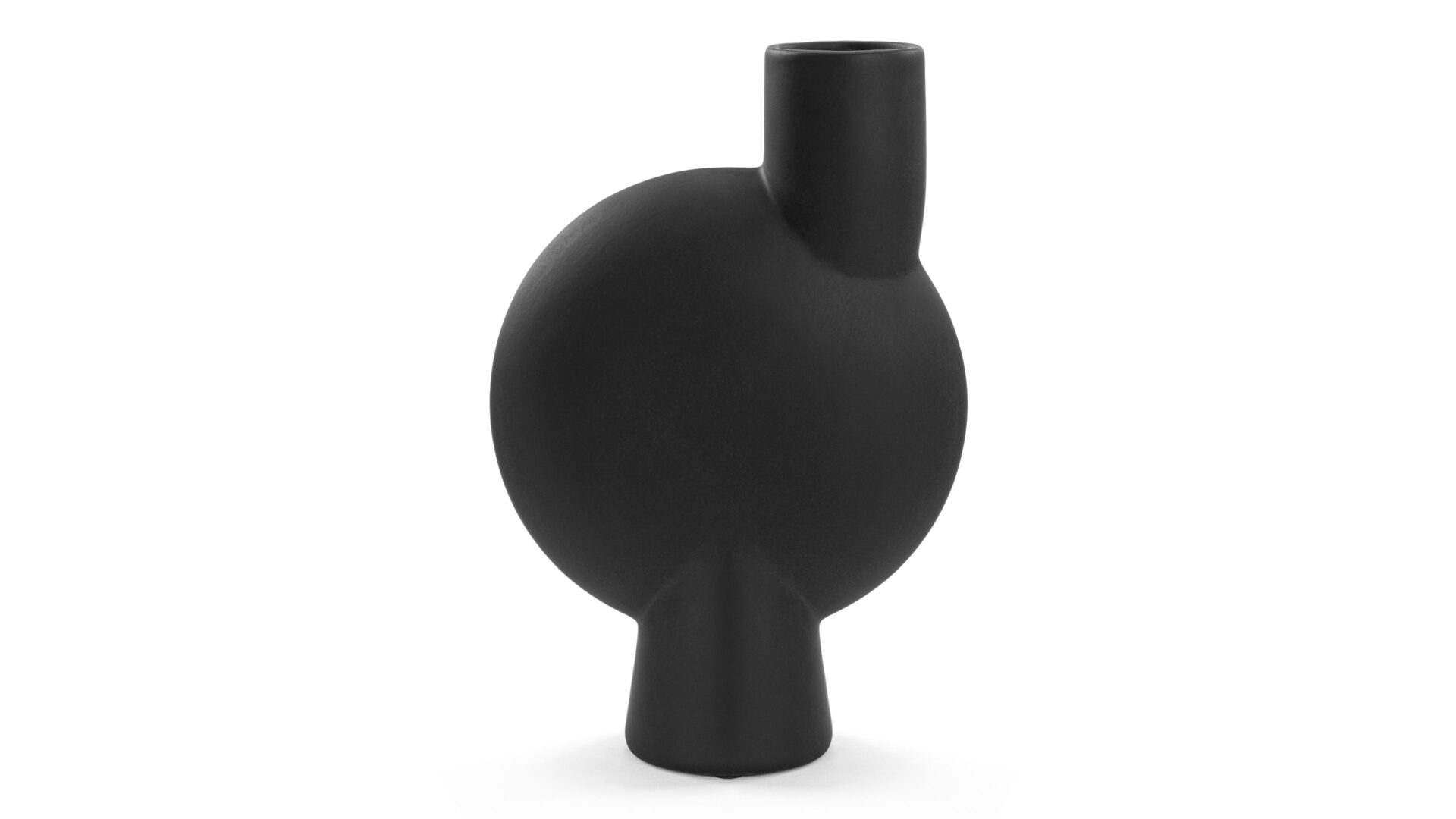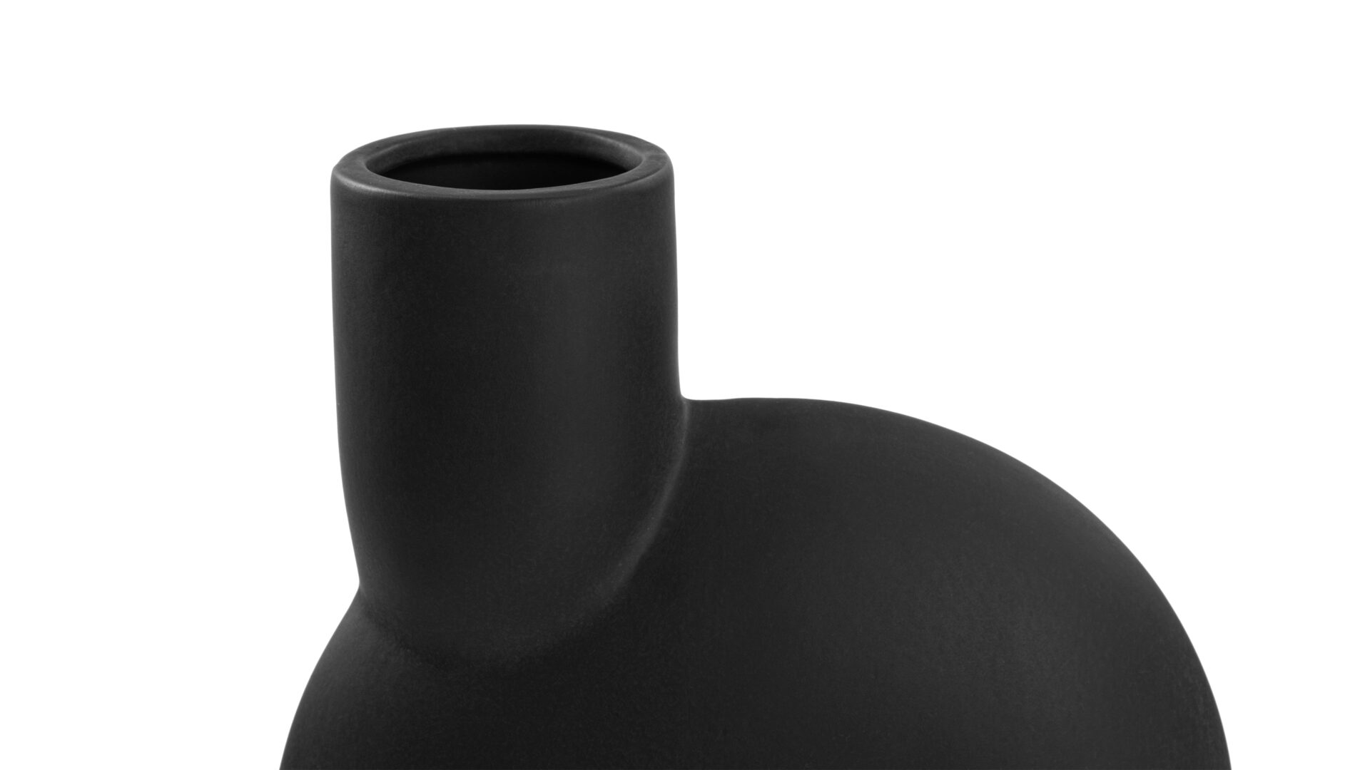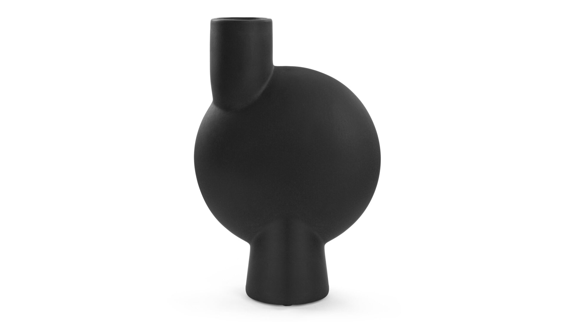 Discover the Tyr Vase, a ceramic creation showcasing a charming and whimsical design with a gentle, organic outline. Its delightful essence and broad, circular form harken back to the design aesthetics of the 1960s, while the subdued color palette lends a distinctively Scandinavian touch. This vase is a striking focal point on its own, and can also be customized with dried blooms and other decorative accents. To craft an eye-catching presentation, combine the medium-sized Tyr Vase with our range of ceramic vases in different dimensions. This results in a lively and visually captivating composition that elevates the coherence of any environment.
