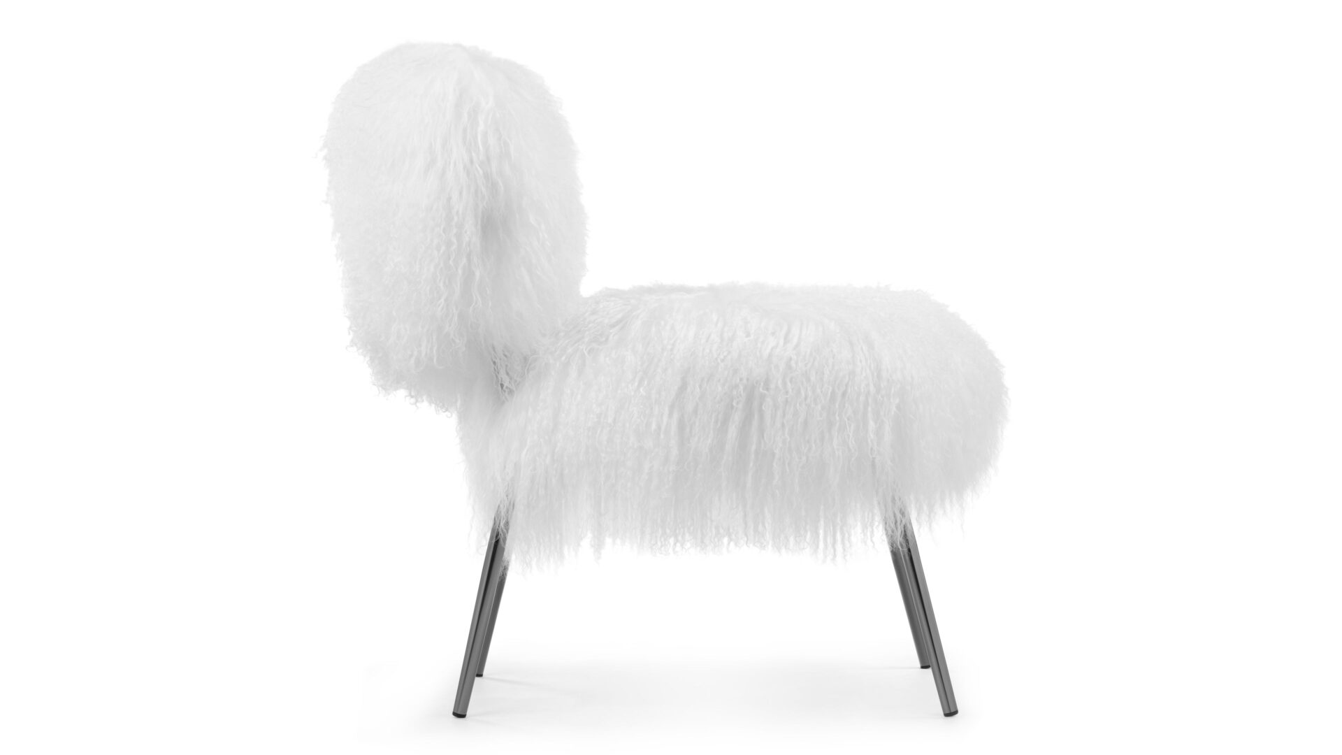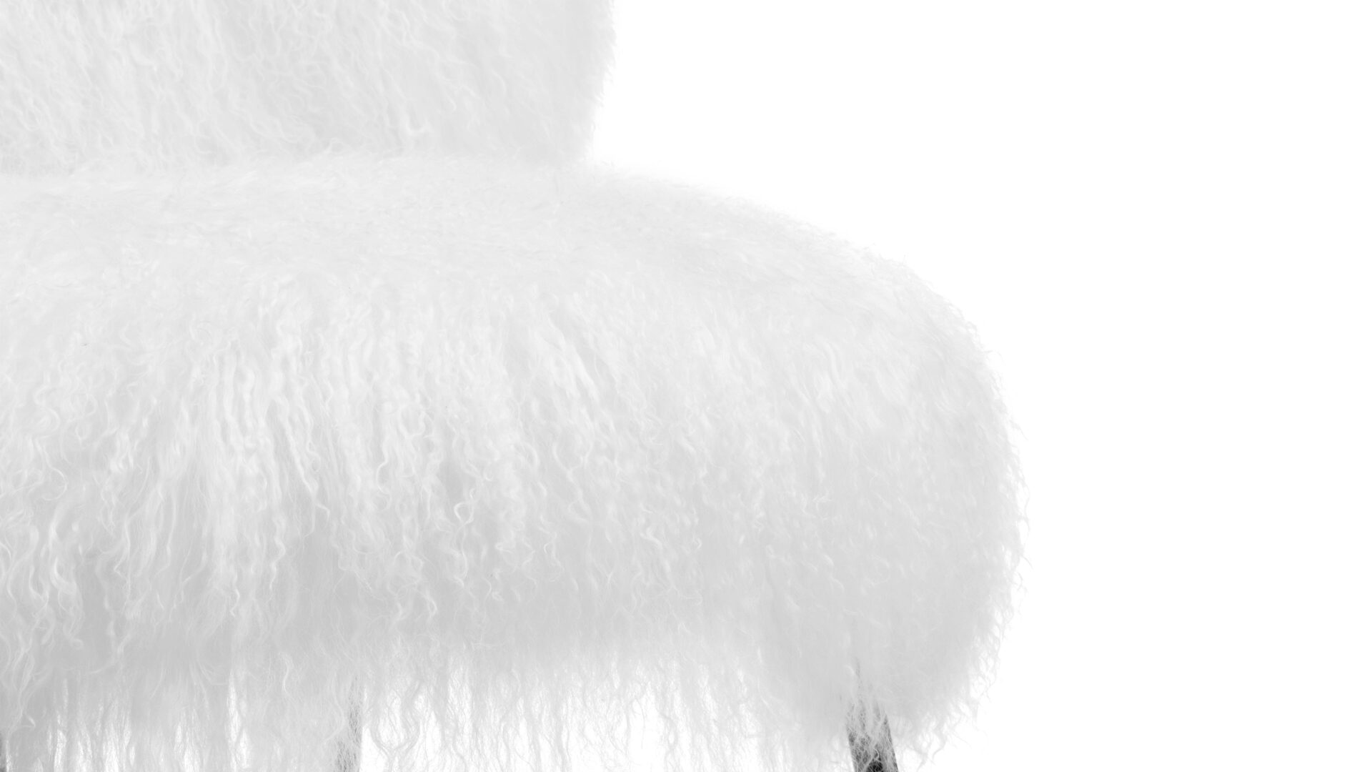 Elevate your space with the Umi Lounge Chair, a contemporary marvel blending sophistication with an exotic touch. Featuring exquisite white Mongolian wool upholstery, it exudes charm and vitality, inviting you to indulge in luxury and repose. This chair seamlessly merges modern design with sumptuous comfort, creating a serene atmosphere that adds a bold focal point to your décor or a cozy corner to unwind.