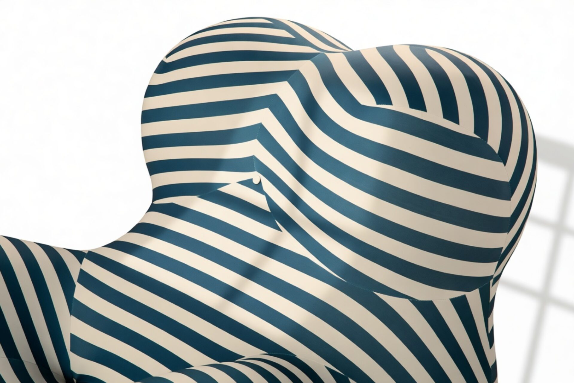 Experience the modern aesthetic of the Mamma Chair, a daring and innovative piece acclaimed for its unconventional design resembling a curvaceous female figure. Blurring the lines between art and function, this chair makes a bold statement in contemporary homes. Meanwhile, the Up Chair draws inspiration from the elegant female silhouette with luxurious cushioning and contoured lines, paying homage to the female form in a whimsical manner. Crafted with Italian flair from the 1960s, this chair seamlessly integrates iconic design with contemporary style, doubling as a work of art that captivates attention. Each Up lounge chair in our collection is meticulously hand-finished with top-notch quality, ensuring a snug and eye-catching seating experience. Update your space with the Teal Stripe Jersey variation for a touch of modern sophistication.