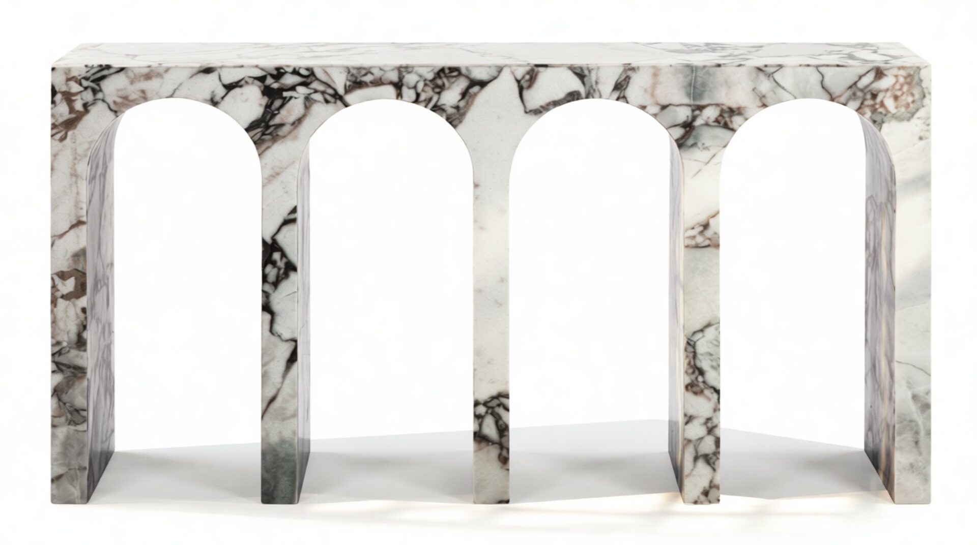 Elevate your decor with the timeless charm of the Venezia Console Table, a stunning fusion of classic architecture and modern elegance. Crafted from exquisite Modellato marble, its opulent design boasts graceful arches reminiscent of ancient Roman grandeur. Perfect for showcasing treasured items on its sleek surface, this piece exudes sophistication and enduring beauty.