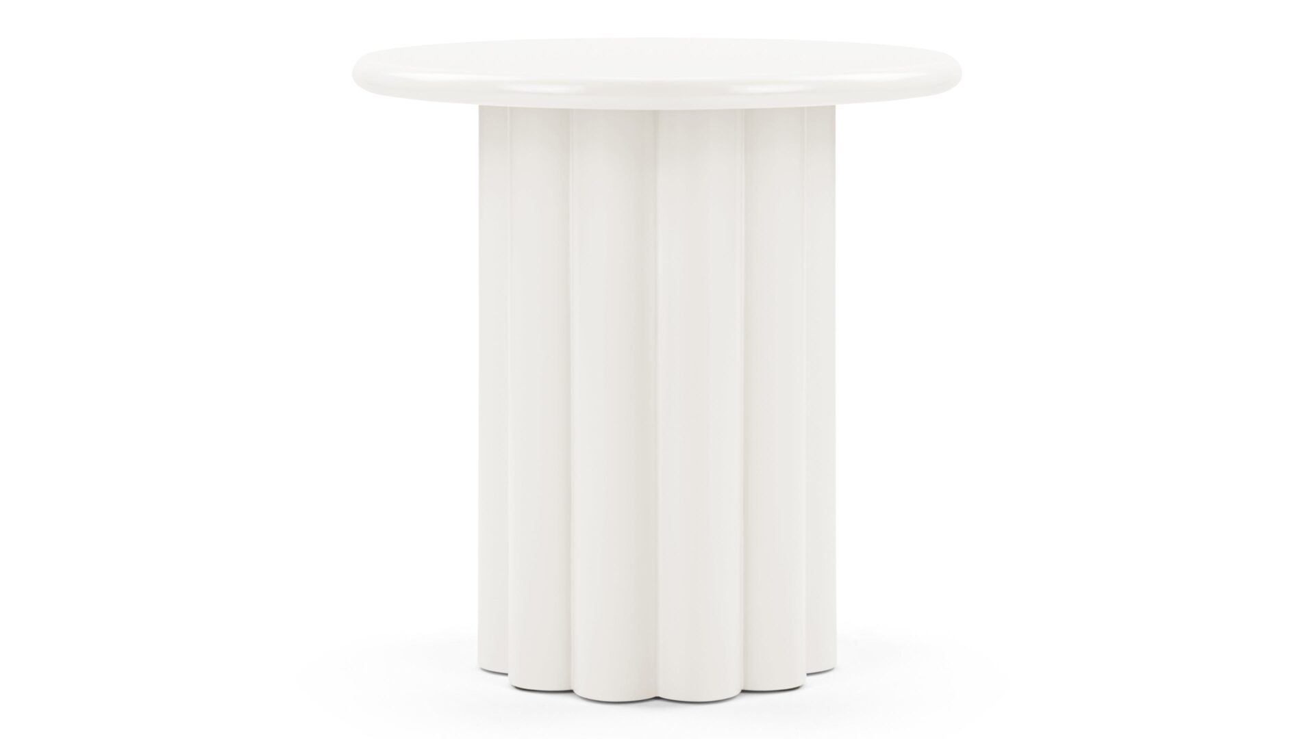 Elevate your living space with the Vesta Side Table, a perfect blend of playfulness and minimalistic design. Crafted with a sturdy yet refined column base featuring a reeded exterior reminiscent of the 1920s and Art Deco style, this table offers both style and functionality. Its muted tones provide a contemporary twist to its classic shape, effortlessly complementing your existing decor while still making a bold statement.